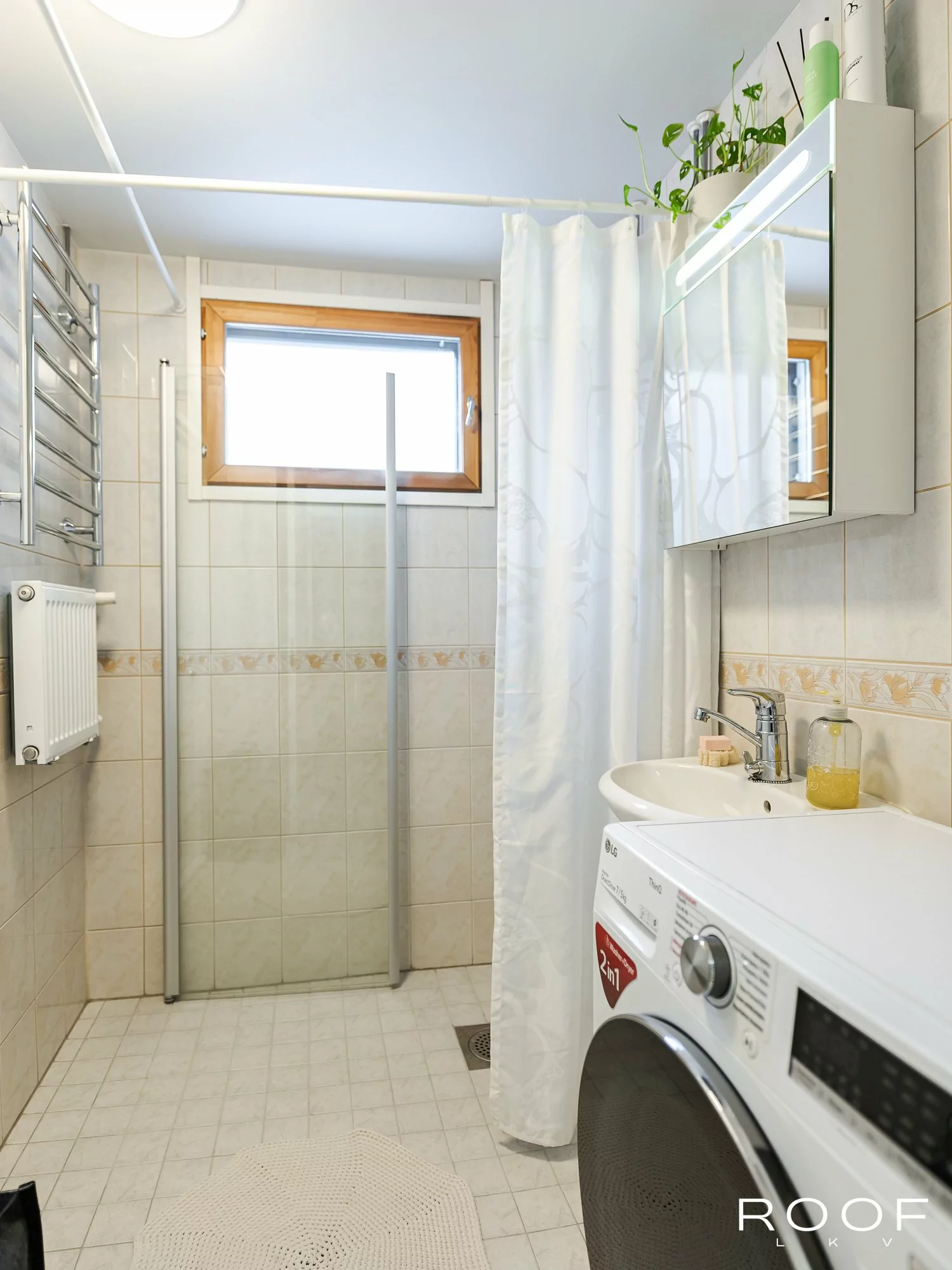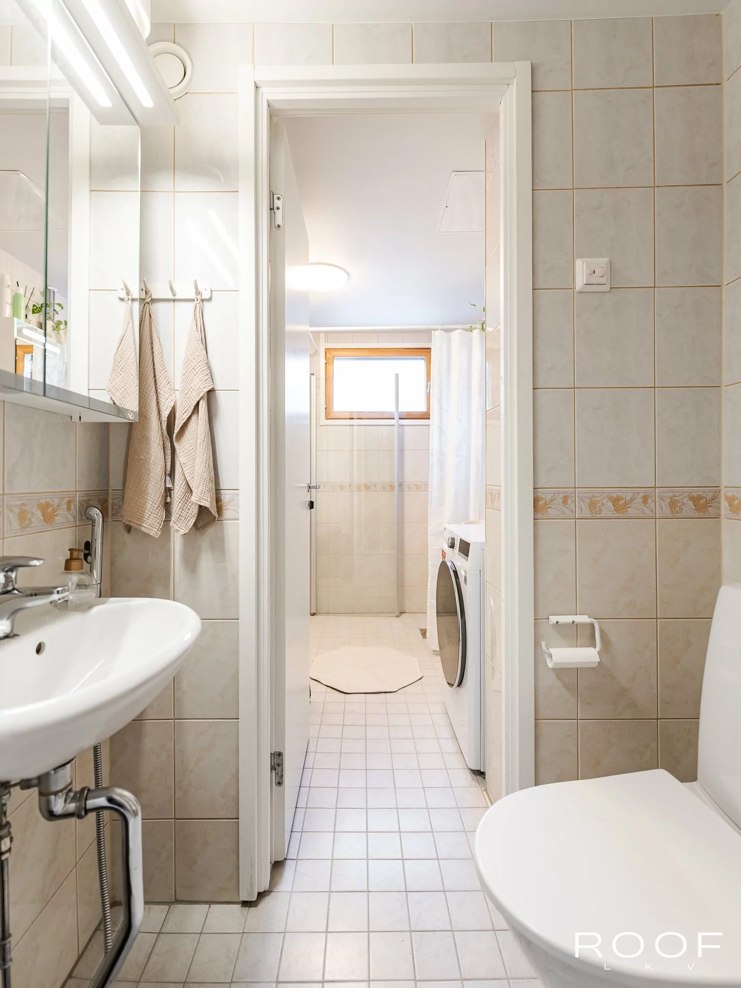 Kylpyhuone on saanut pintaansa laatoituksen vuonna 2013 LVIS-saneerauksen yhteydessä. Wc sijaitsee kylpyhuoneen yhteydessä mutta kuitenkin kivasti omana erillisenä tilanaan.