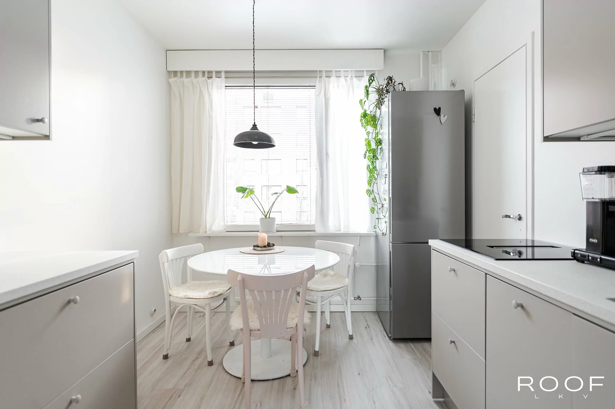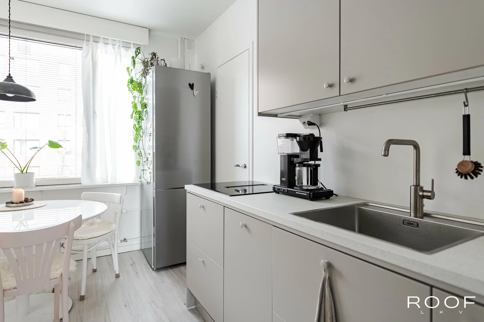 Tyylikäs ja harmoninen keittiö on remontoitu 2025. Samalla on päivitetty asunnon muitakin pintoja tähän päivään ja muuttamaan pääsee ilman remonttihuolia.