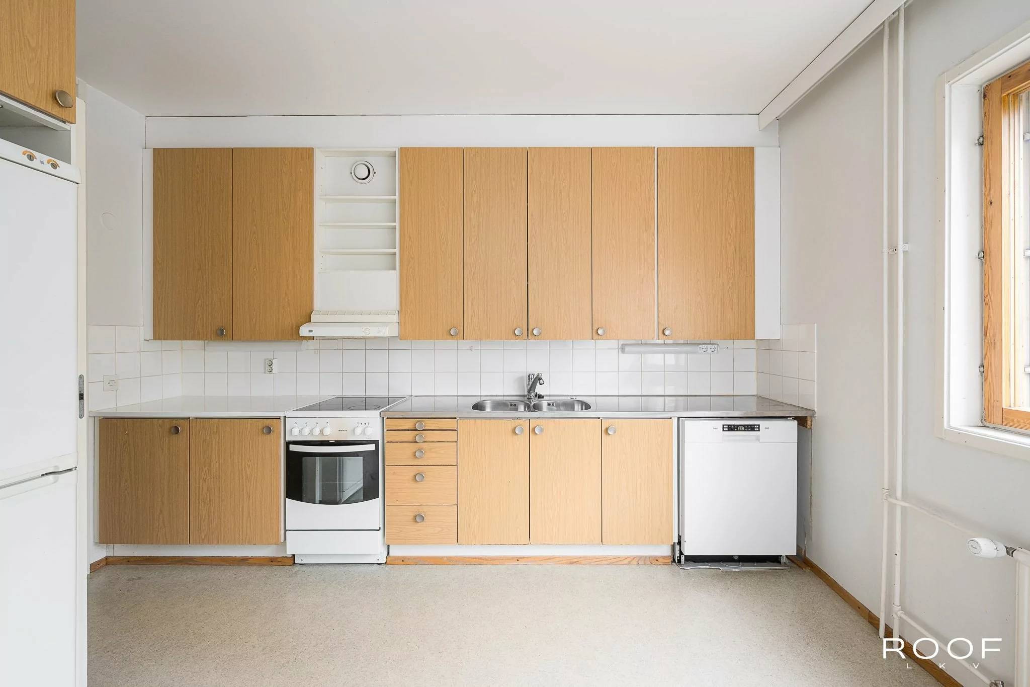 Asuntoon kuuluu tilava olohuone, jossa on parkettilattia sekä tilava keittiö, joka on varustettu tarvittavilla laitteilla. Taloyhtiössä on monipuoliset yhteiset tilat, kuten sauna, urheiluvälinevarasto ja pesutupa.