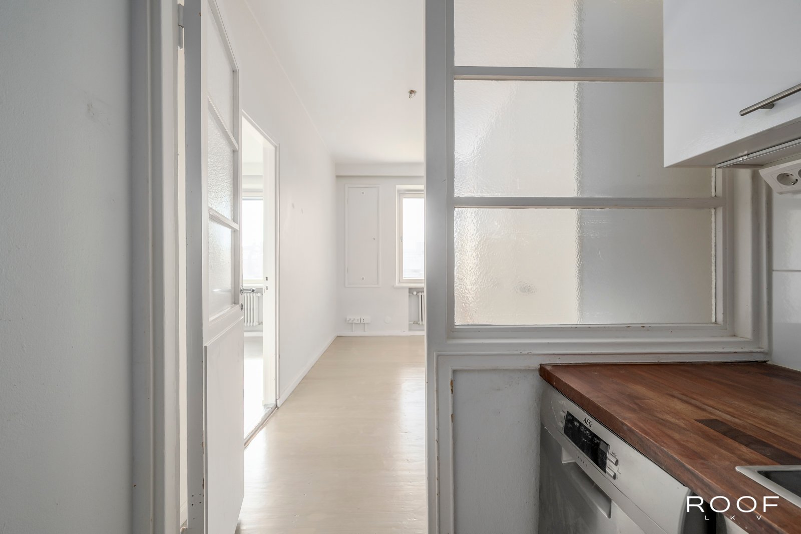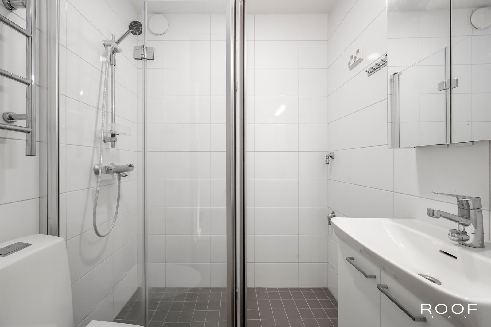 Isot ikkunat tuovat runsaasti valoa huoneistoon. Hyvin varustettu keittiö tuo lisää asumismukavuutta ja kylpyhuoneeseen on mahdollista liittää oma pyykinpesukone. Yhtiön erikoisuutena on osukkaiden käytössä oleva kattoterassi.