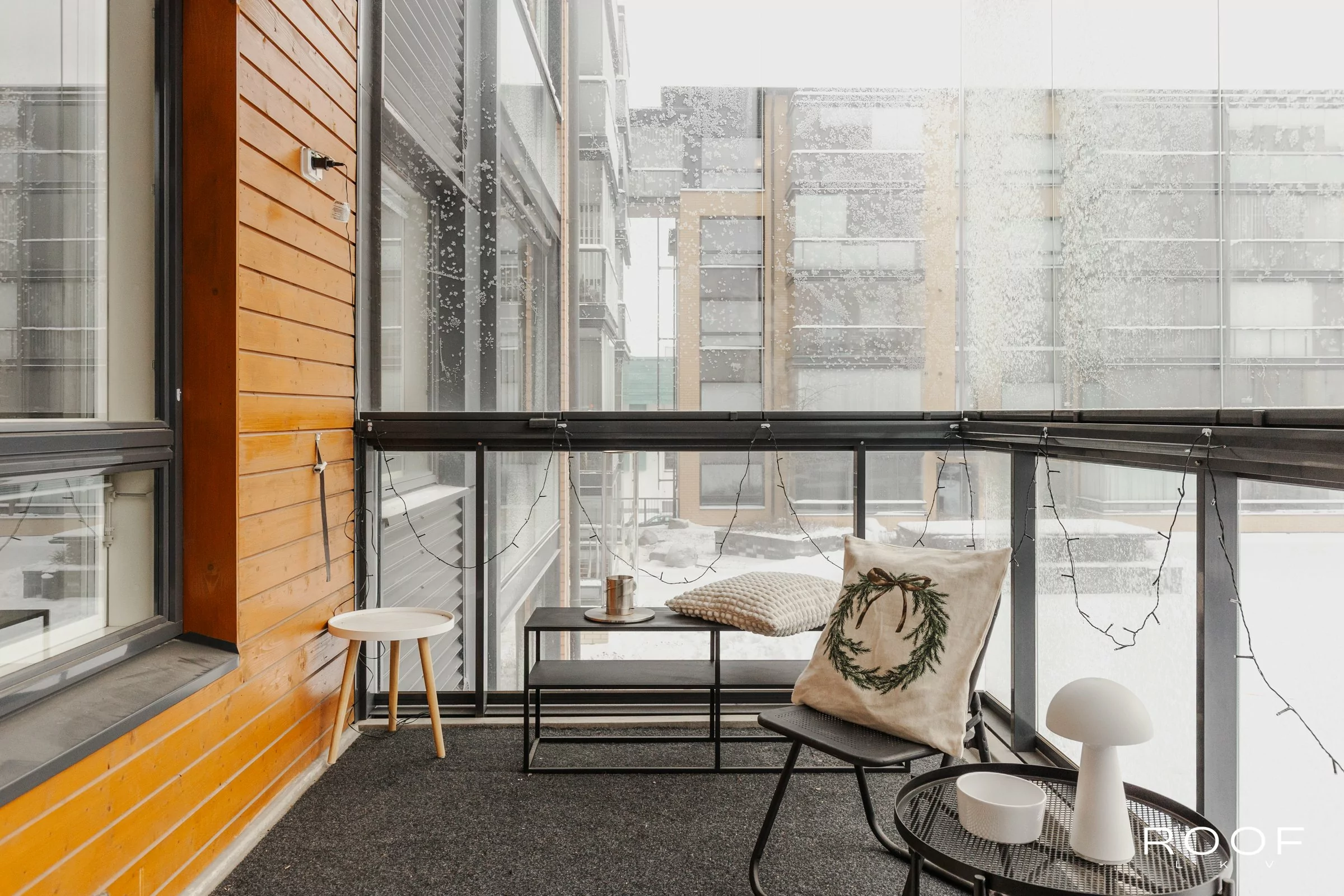 Tämä koti on tehokkaiden neliöiden tilaihme – tilaa tuntuu näissä huoneissa olevan neliöitään enemmän! Eläminen ja arki on sujuvaa, oma sauna tuo mukavuutta elämään ja keväällä asuminen levittäytyy todella isolle lasitetulle parvekkeelle. Ihana parveke onkin upea, viihtyisä paikka nauttia aamukahvit ja heittäyty...