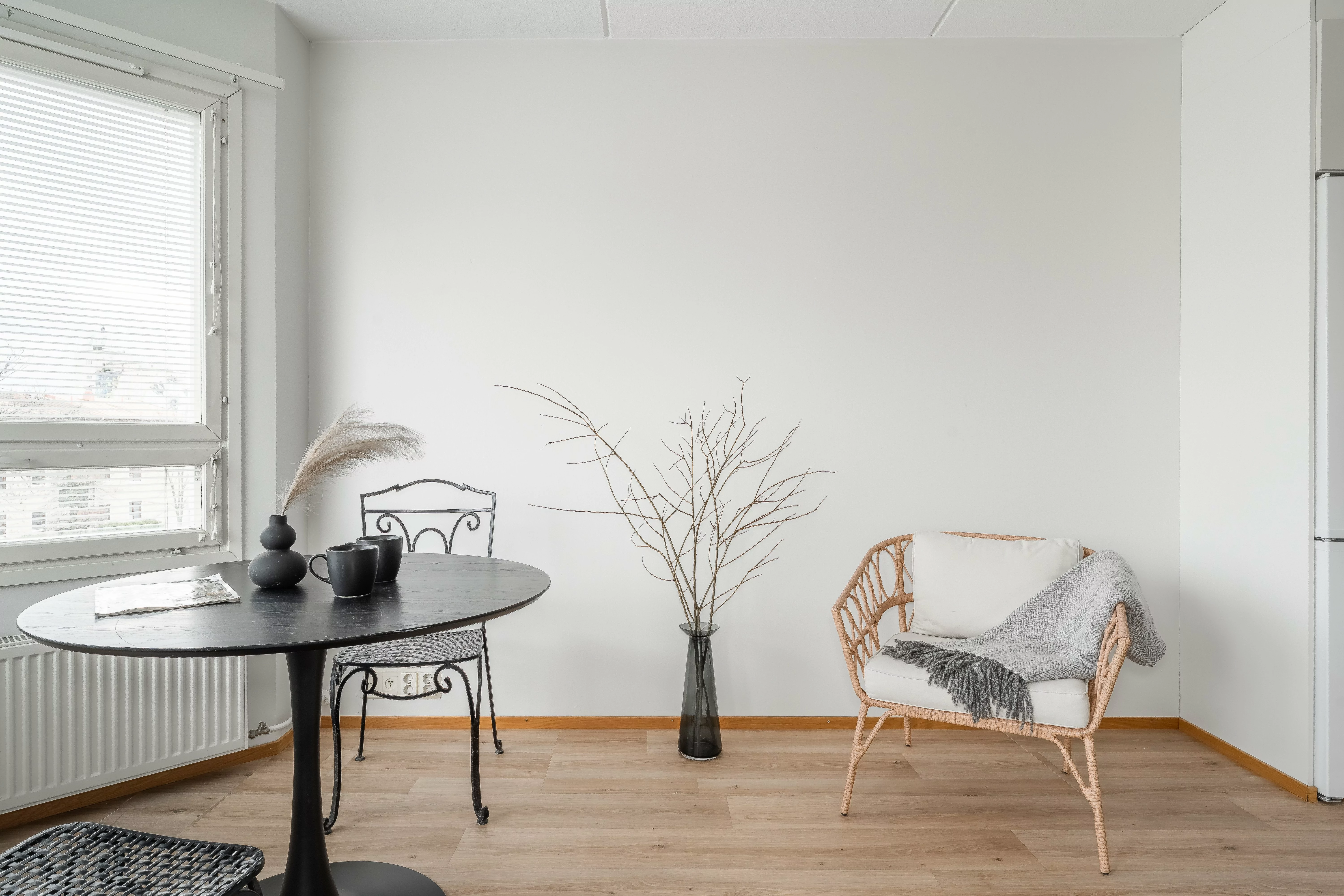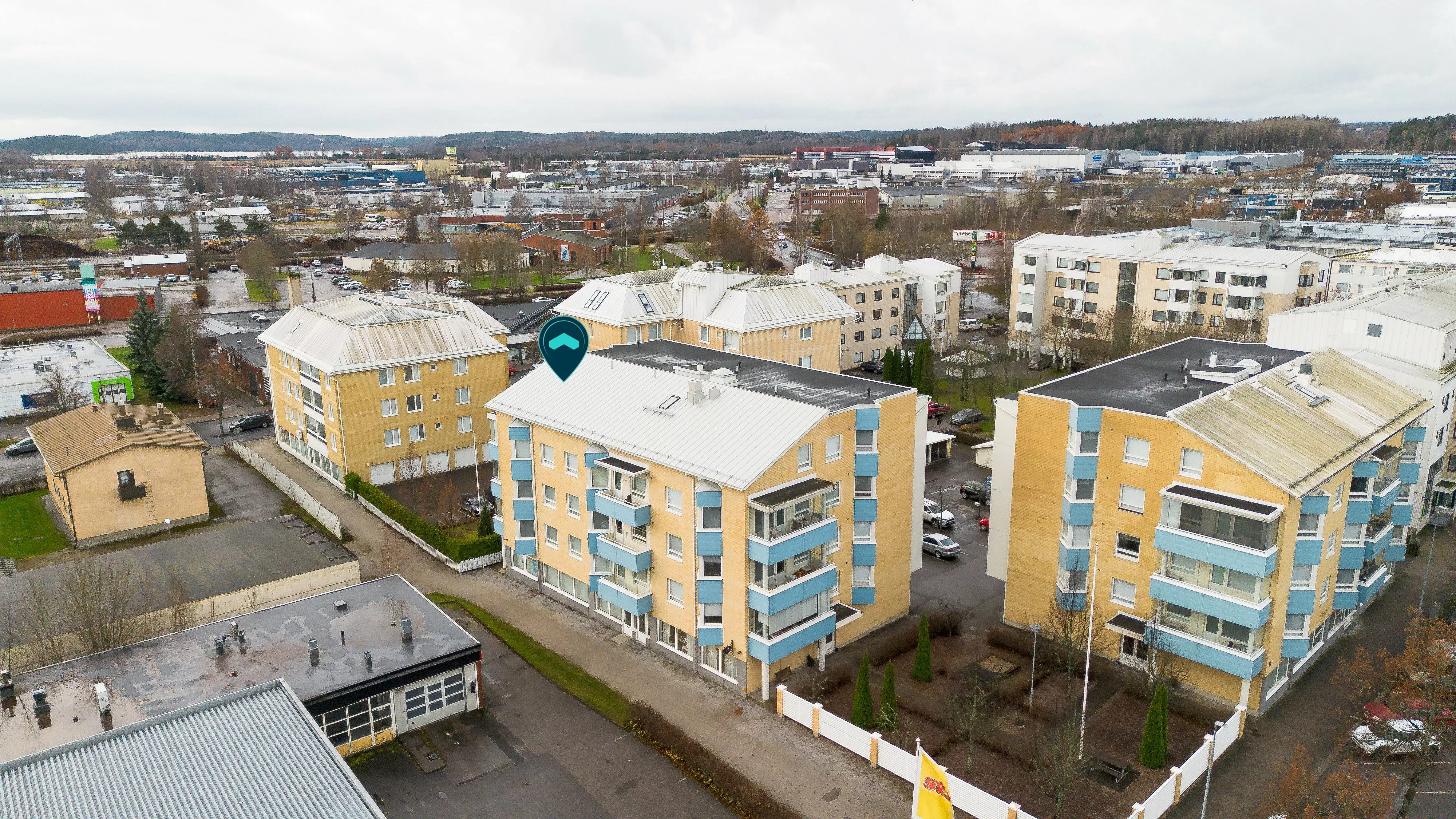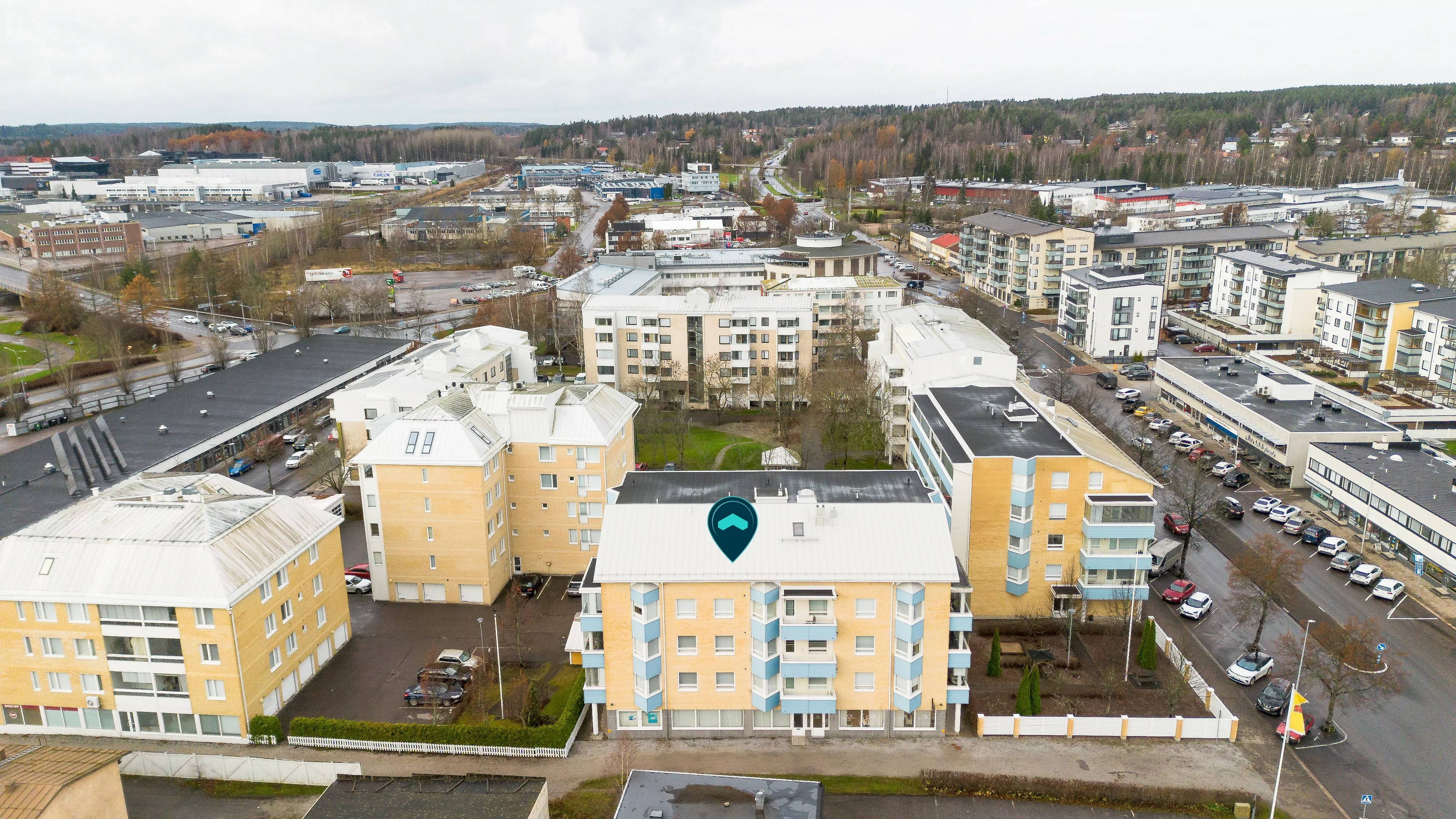 Keskustassa, pääkadun varrelta löytyy pieni koti hyvästä talosta ja taloyhtiöstä. Tässä on kaikki helpon asumisen asiat tehty oikein. Huoneisto sijaitsee hissitalon kolmannessa kerroksessa, parvekkeelta