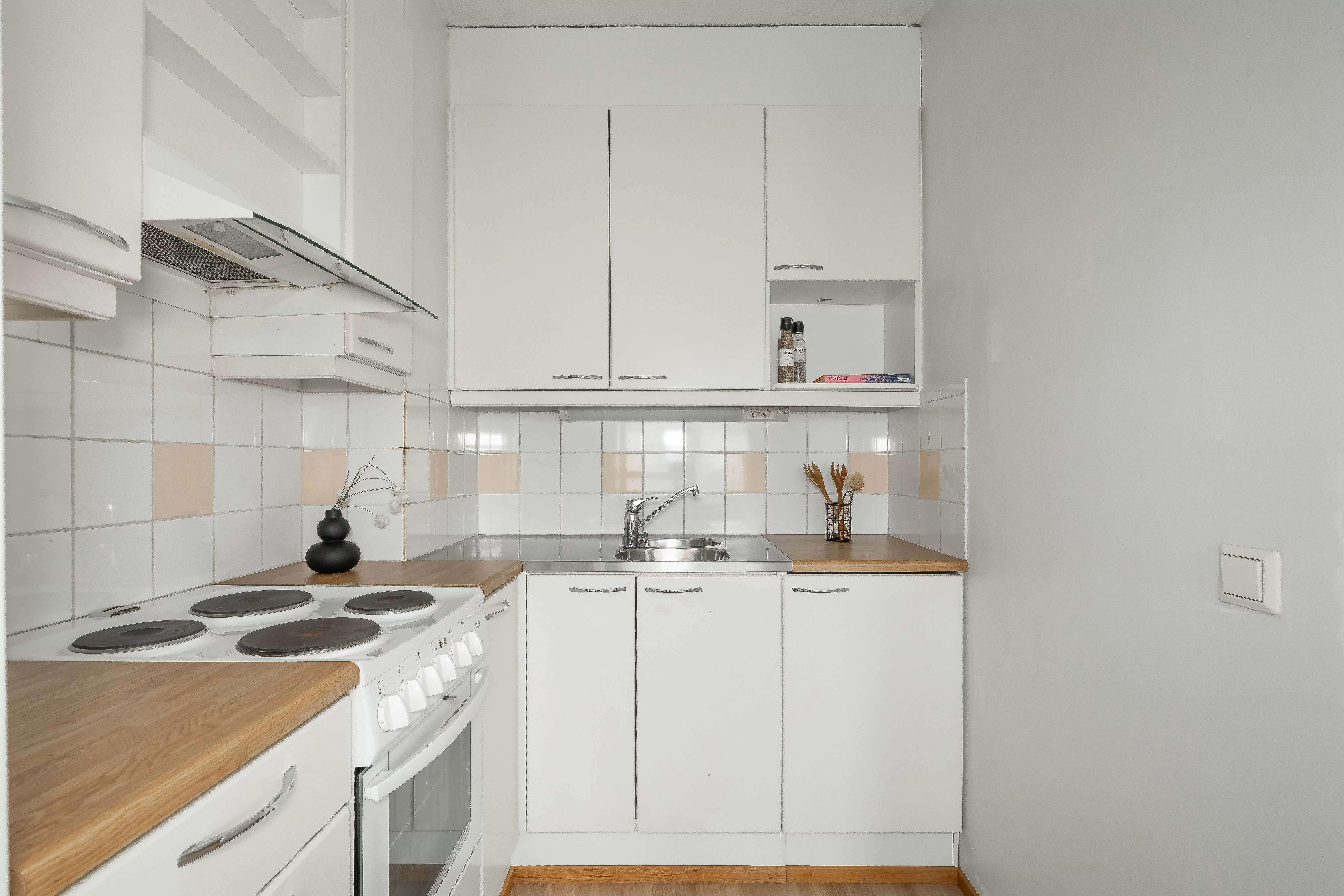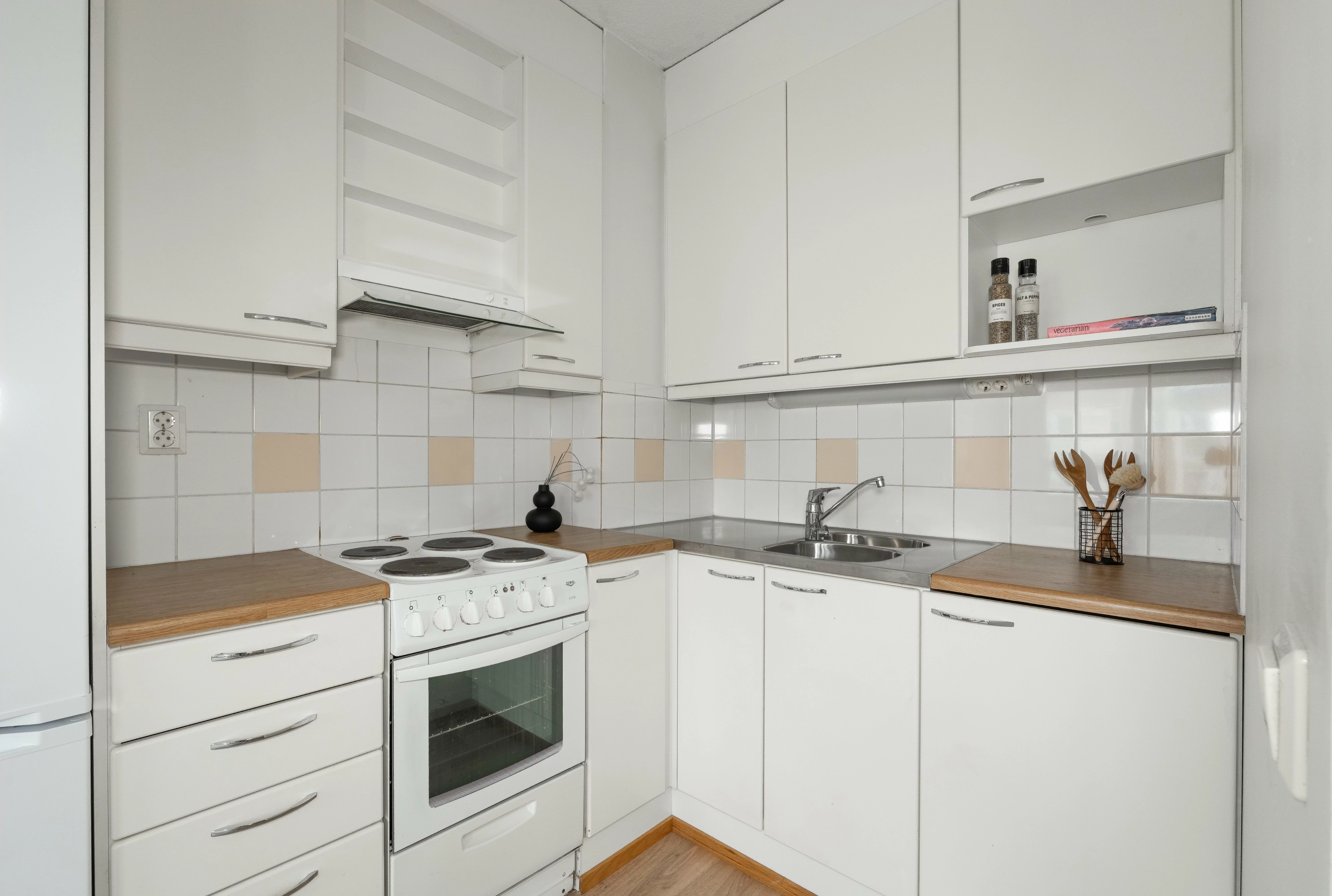 Huoneisto sisältää keittokomeron ja olohuoneen yhtenäisen tilan, makuuhuoneen ja saunalla varustetun kylpyhuoneosaston ja plussana vielä parveke. Jääkaappi/pakastin, wc-istuin ja suihkukalusteet uusittiin ennen myyntiinlaittoa, joten huoneistoon on helppo muuttaa vaikka heti.