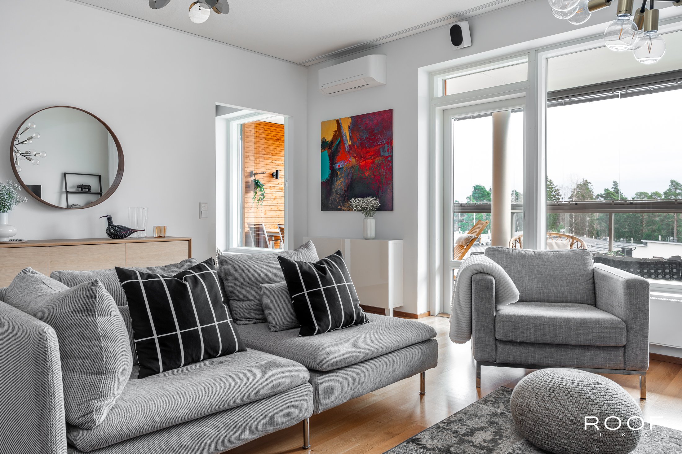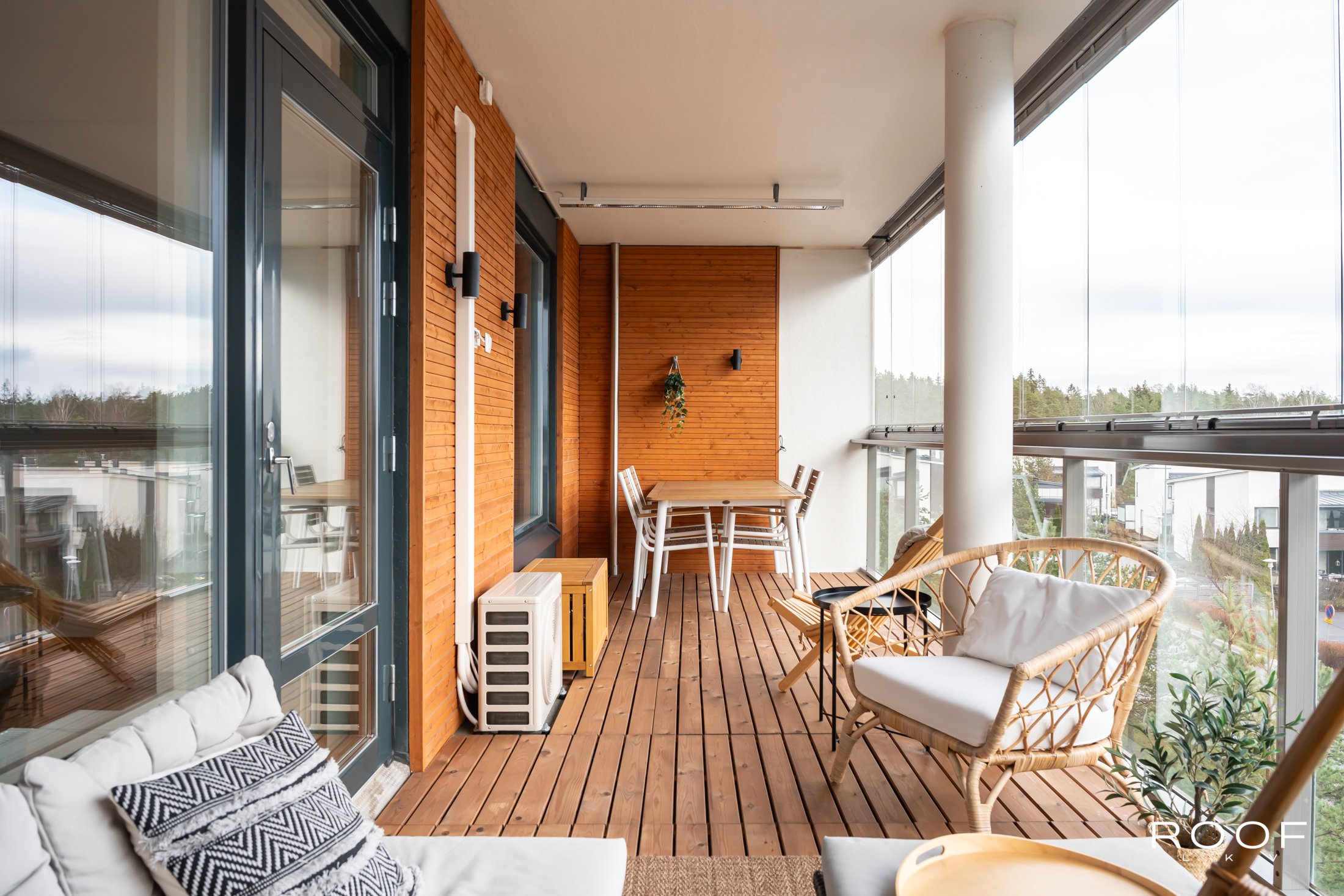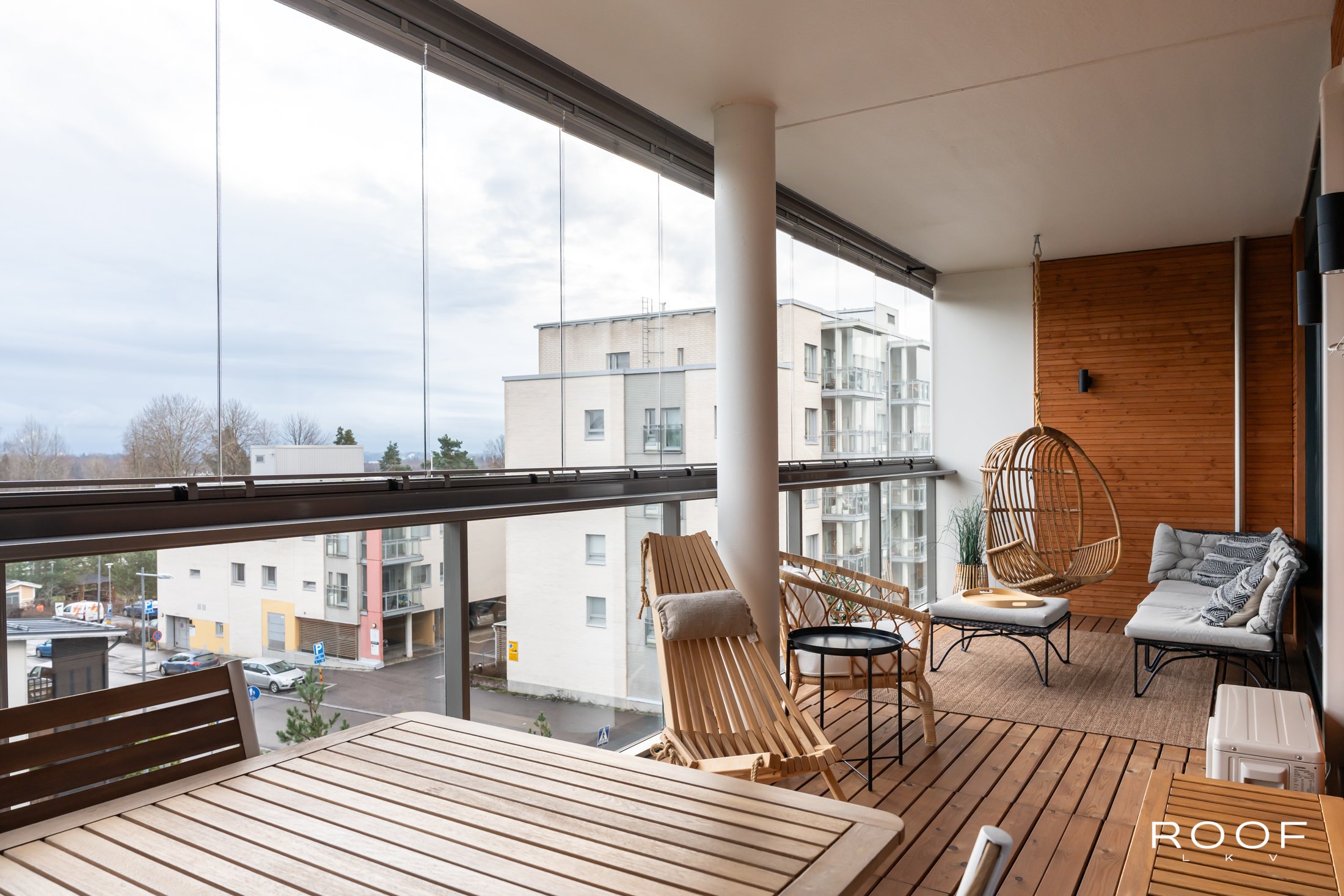 Kodissa on erinomainen ja toimiva pohjaratkaisu, jossa avarat tilat kutsuvat nauttimaan arjesta. Olohuone jatkuu sulavasti lasitetulle, koko asunnon levyiselle hulppealle parvekkeelle, joka on täydellinen paikka rentoutua ja ihailla kauniita avaria maisemia vuoden ympäri.