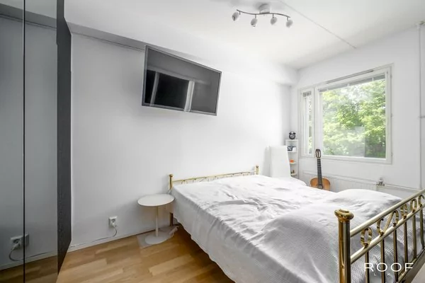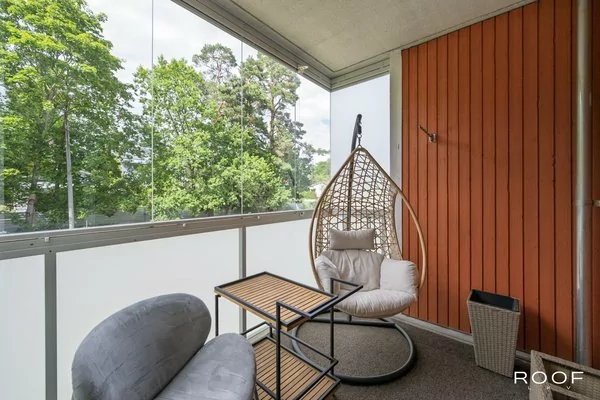 Valoisa ja viihtyisä kaksio Kilossa. Asunnossa on oma sauna ja lasitettu parveke!