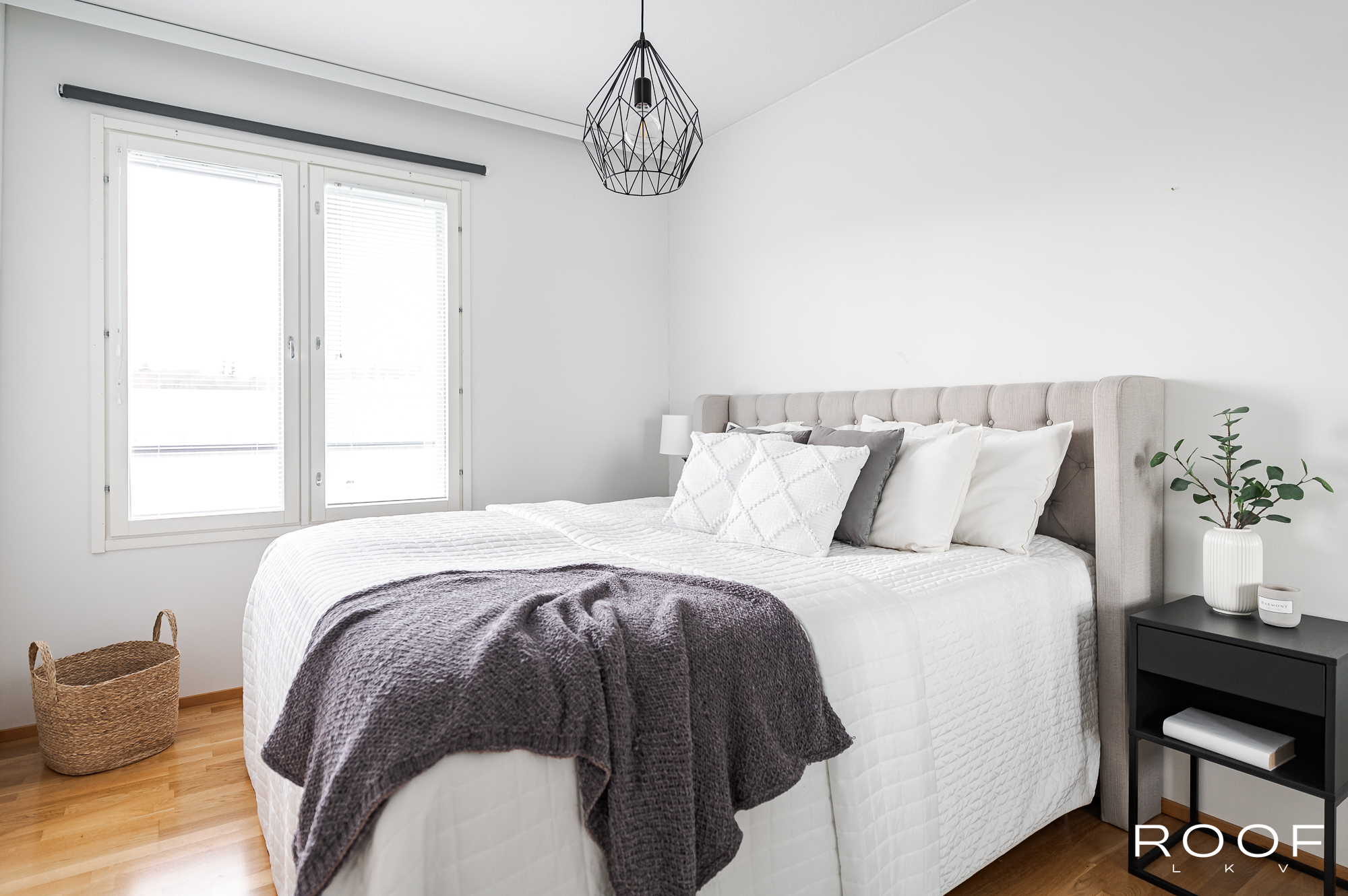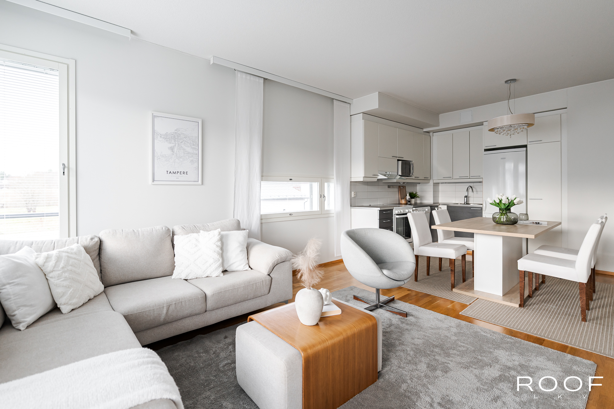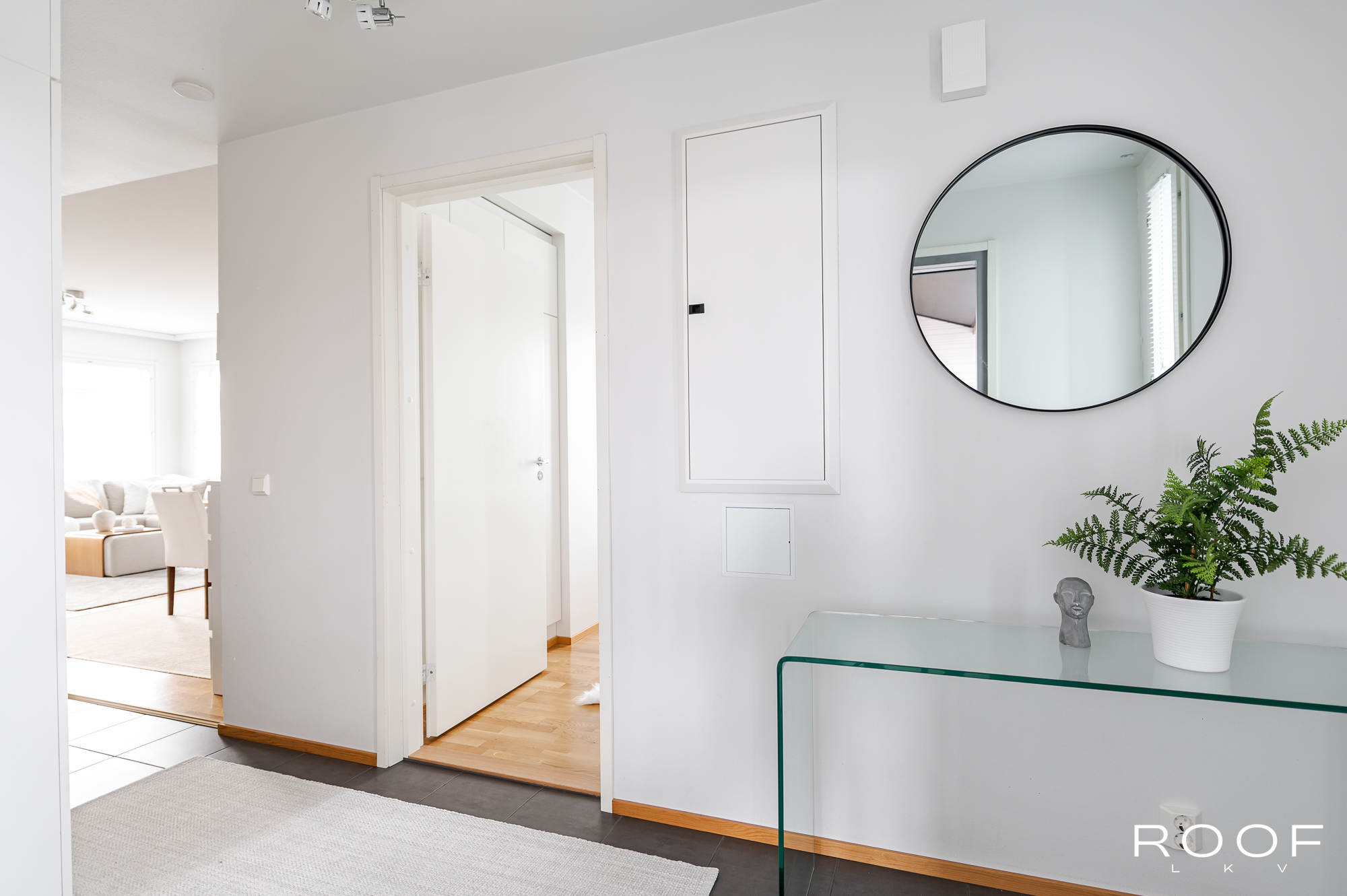 Tässä kodissa on tyyliä. Avara ja valoisa keittiön ja olohuoneen yhdistelmä tarjoavaa viihtyisät puitteet yhdessäoloon. Kulmahuoneistoon tulvii ihanasti valoa kahdesta suunnasta. Makuuhuone on tilava ja liukuovikaapistoon mahtuu hyvin kaikki tarpeellinen.