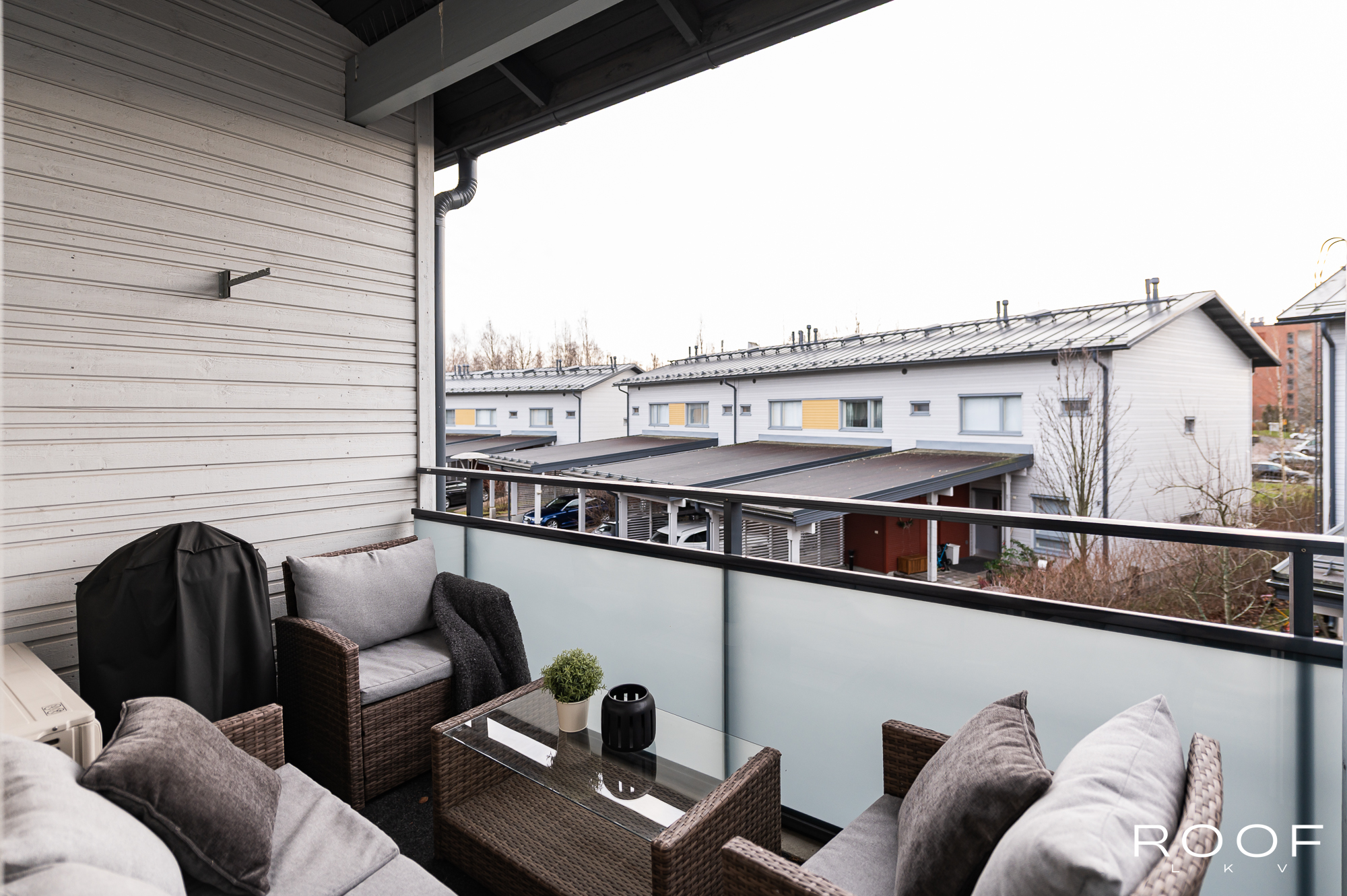 Etelään avautuva parveke tuo lisämukavuutta ja tarjoaa ihanan paikan rentoutua aikaisesta keväästä myöhäiseen syksyyn.