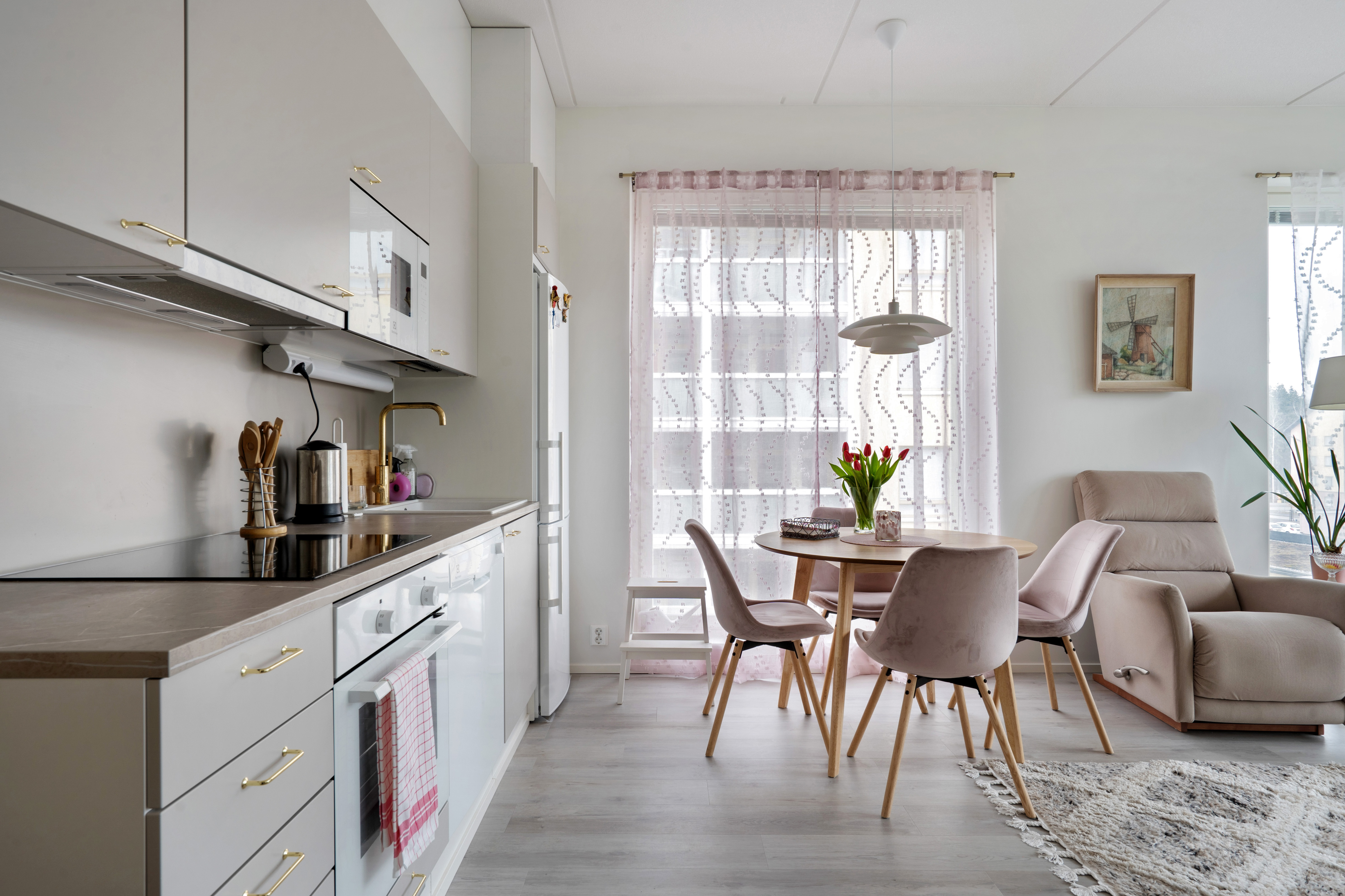 Keittiö on varustettu nykyaikaisin kodinkonein, kuten jääkaappipakastimella, astianpesukoneella ja keraamisella liedellä. Kylpyhuoneessa on lattialämmitys ja tilavaraus pesukoneelle. Asunnossa on myös tilava parveke, jossa voit nauttia aamukahvisi rauhallisessa ympäristössä.