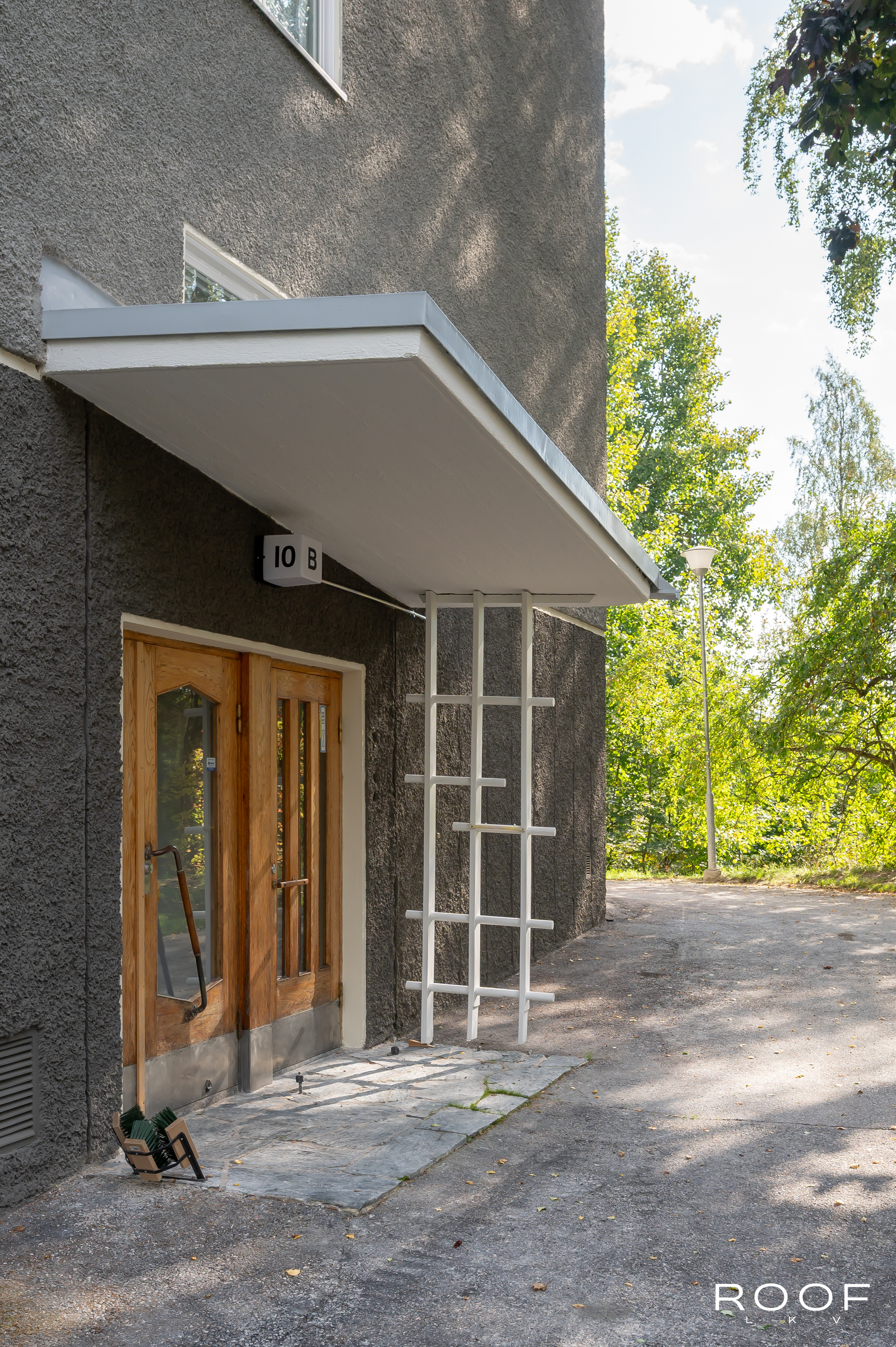 Jätekatoksen ja porraskäytävien edustojen puuosien kunnostus ja maalaus