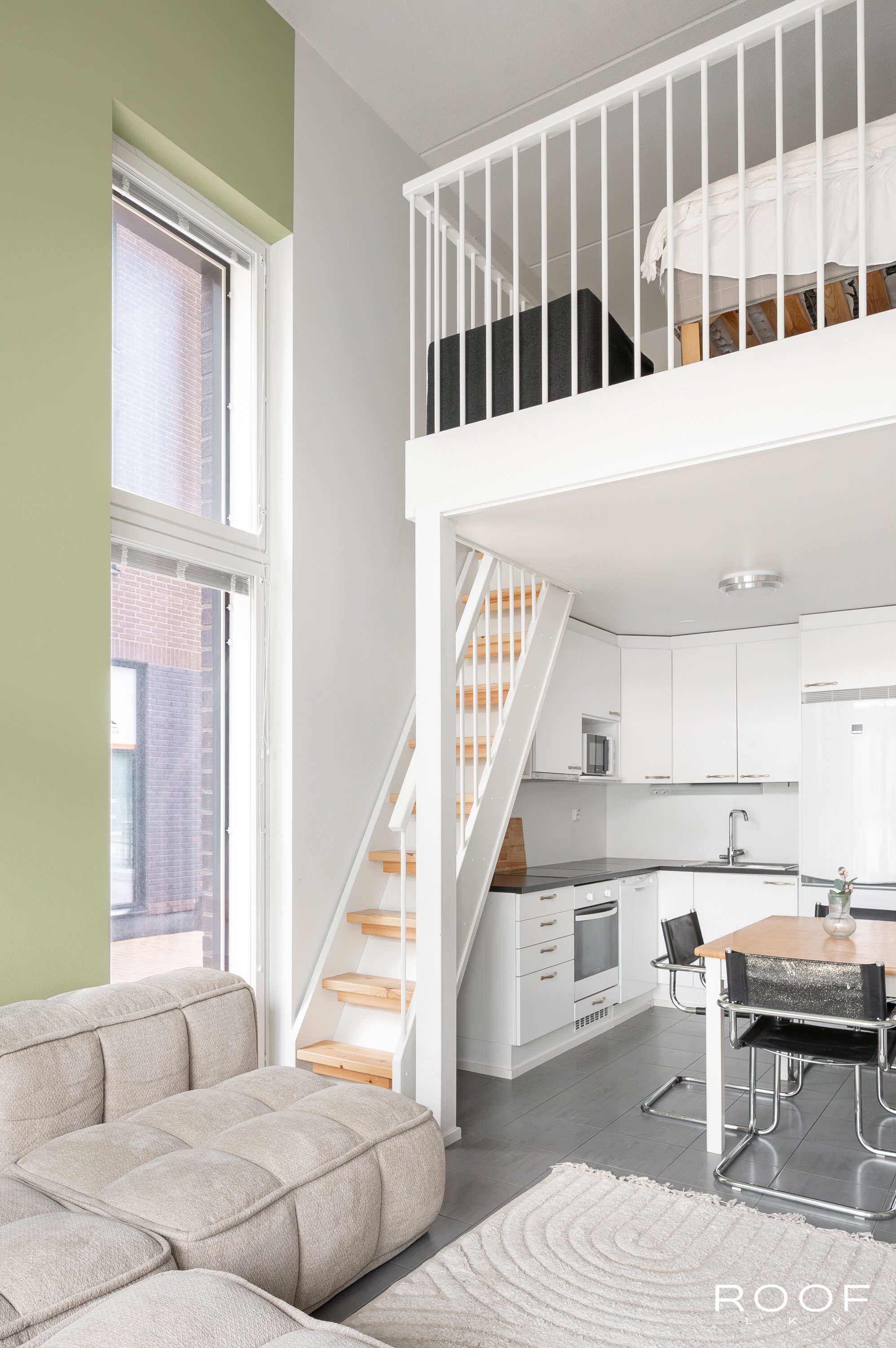 mukavan lisätilan ympäri vuoden. Avokeittiö ja olohuone muodostavat avaran, viihtyisän kokonaisuuden.