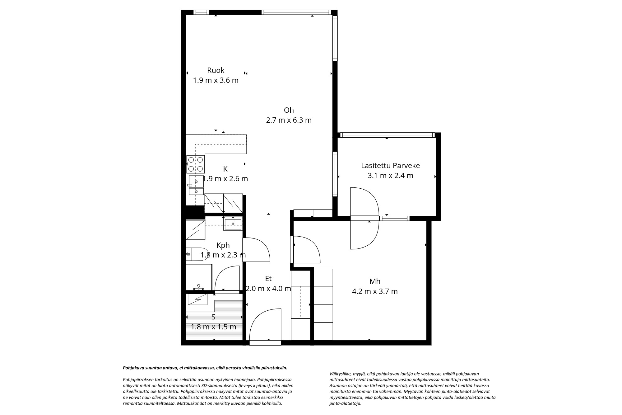 kerrostalo, 2h,avok,kph,s,lasitettu parveke