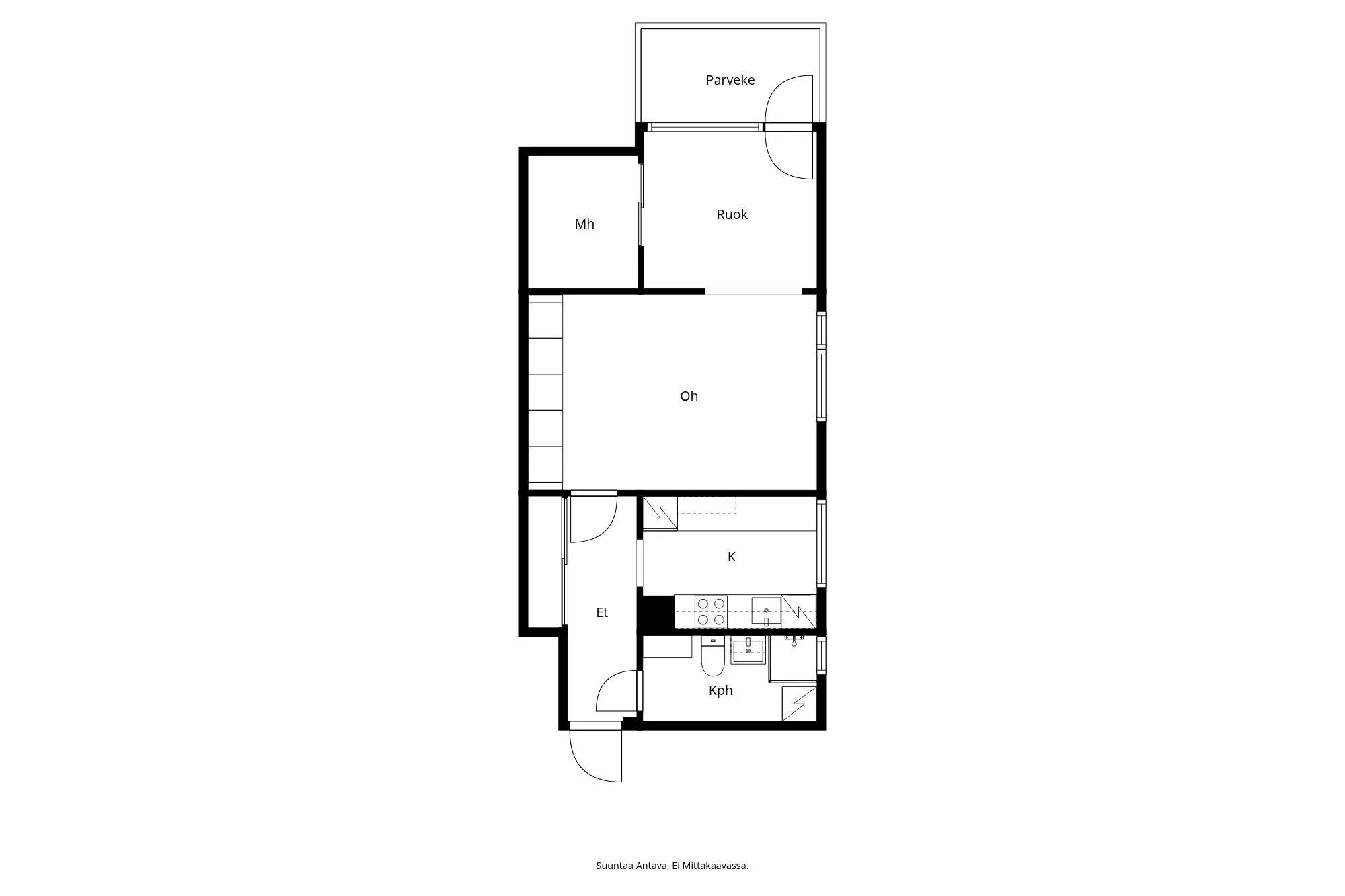 Asunto on hyväkuntoinen ja sen 50 neliötä on käytetty tehokkaasti. Olohuoneen ja makuuhuoneen parkettilattiat luovat lämpimän tunnelman, ja keittiön modernit varusteet, kuten induktioliesi ja integroitu astianpe...