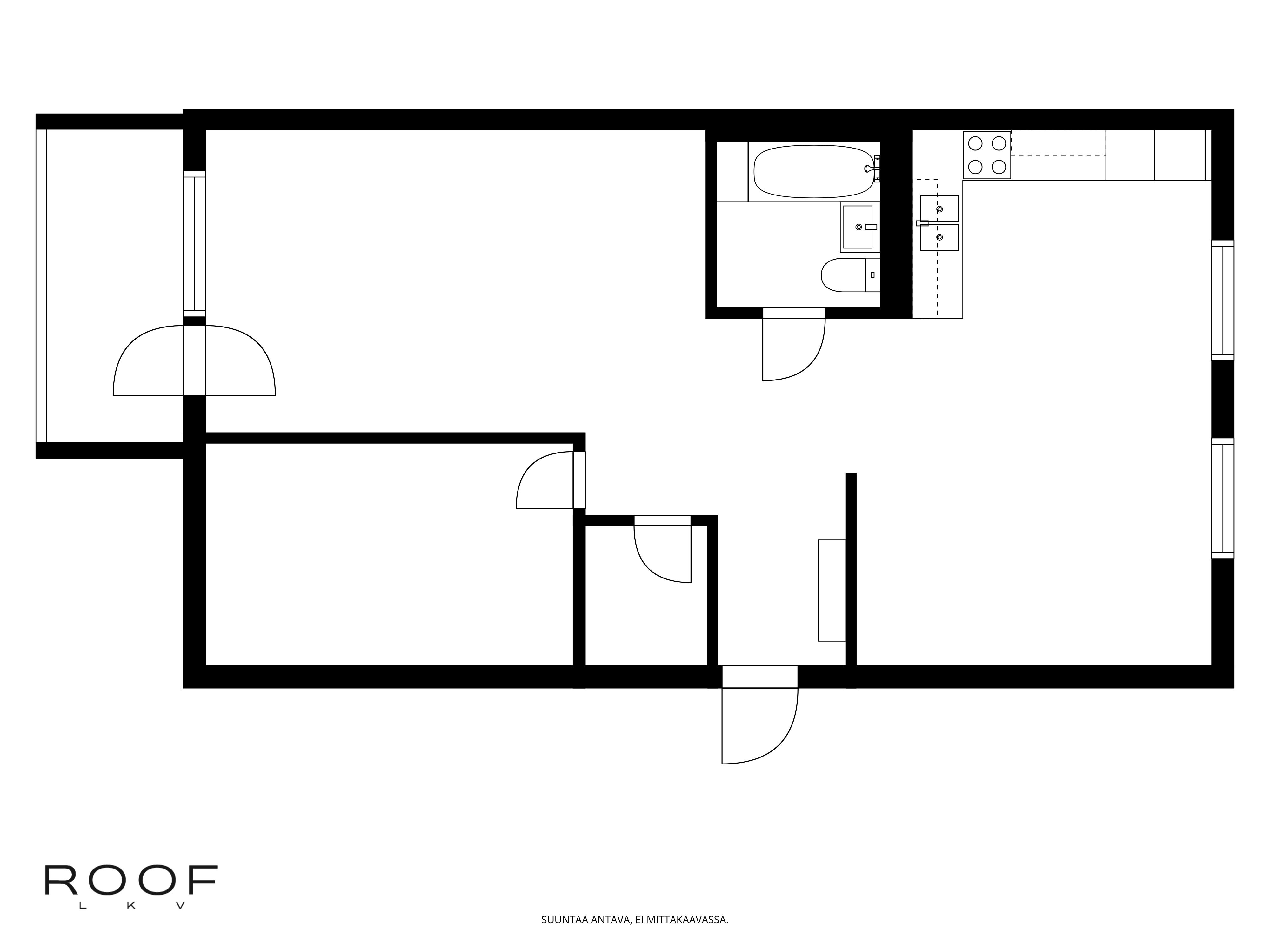Tyylikäs ja siisti remontoitu kaksio hissitalossa, asunto joka on alun perin ollut kolmio, joka on muutettu suureksi kaksioksi – täydellinen sinulle, joka arvostat avaria tiloja ja viihtyisää kotia.