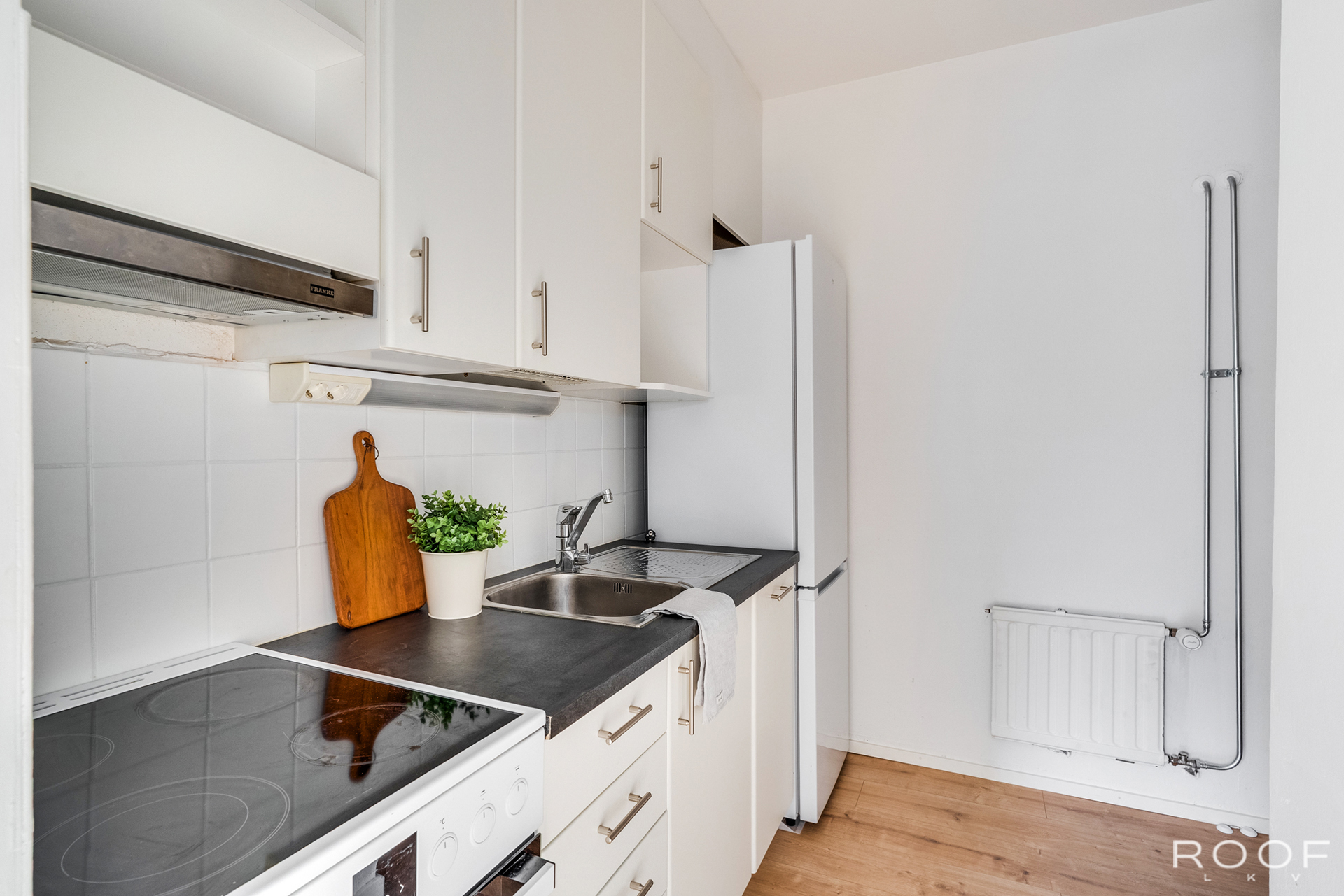 Päivitetty keittiö on siisti ja tilaa kokkailulle.