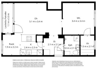 kerrostalo, 2h+k+kh (yhtiöjärjestyksen mukaan 2h+k+kh)