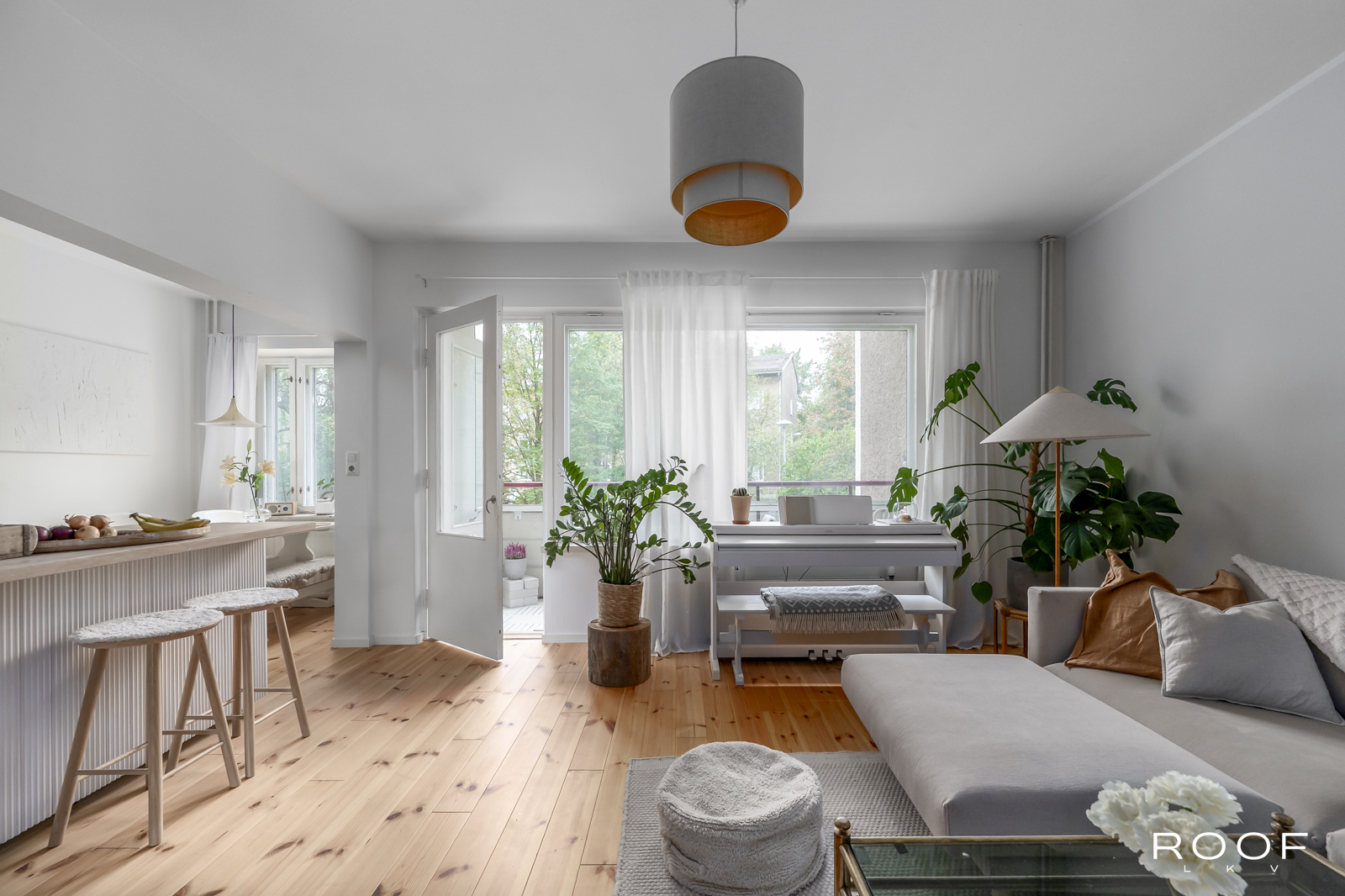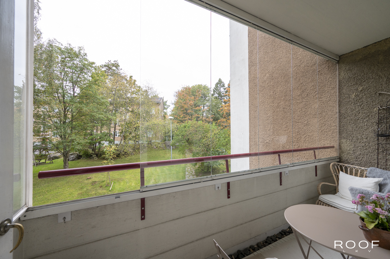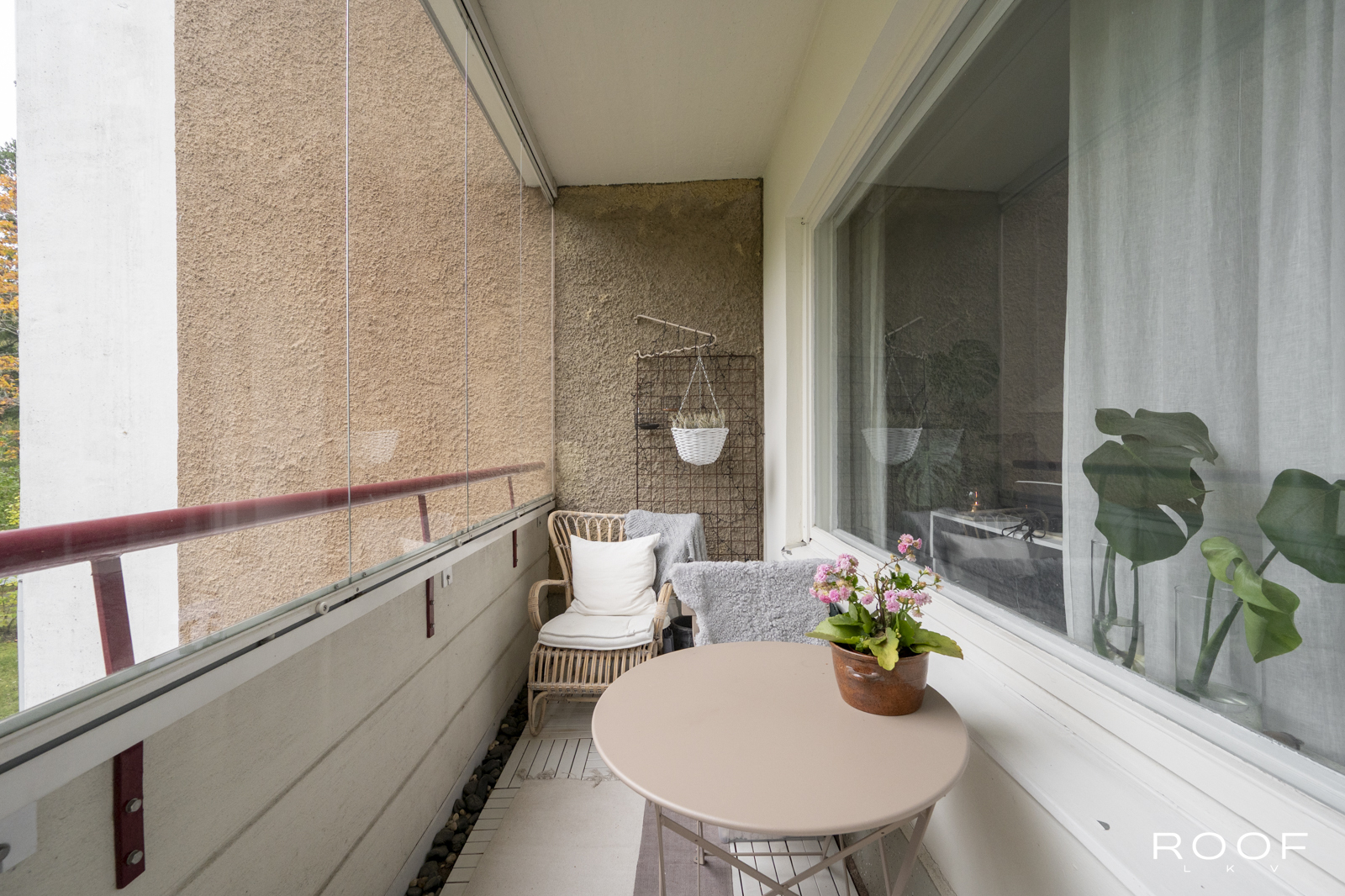 Tervetuloa tutustumaan tähän valoisaan ja viihtyisään kotiin, joka sijaitsee rauhallisessa taloyhtiössä vehreiden puiden ympäröimänä. Asunto on läpitalon, ja valoa tulvii sisään suurista ikkunoista pitkin päivää – aamulla aurinko sarastaa makuuhuoneeseen, ja ilta-aurinko lämmittää parvekkeella, josta avautuu näkymä viihtyisälle sisäpihalle.