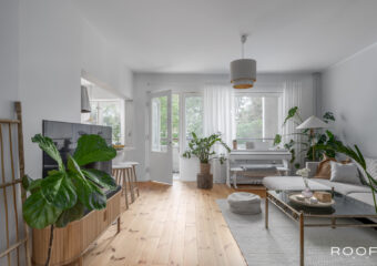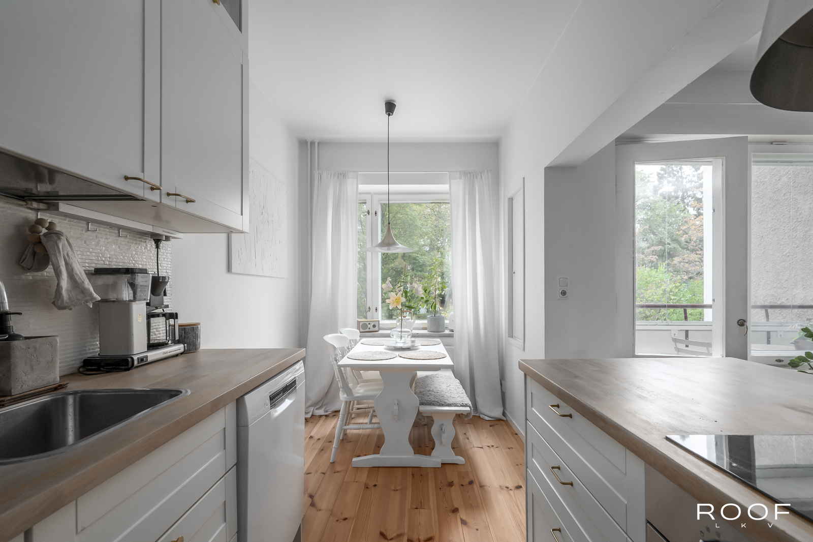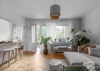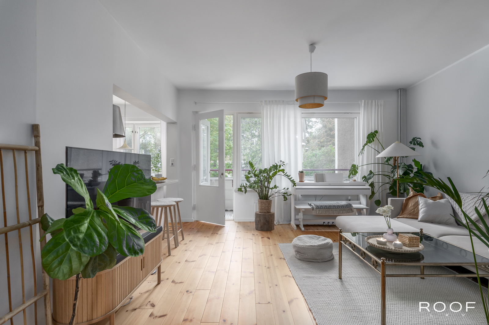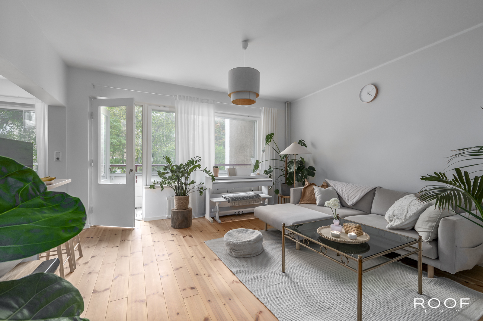 Tervetuloa tutustumaan tähän valoisaan ja viihtyisään kotiin, joka sijaitsee rauhallisessa taloyhtiössä vehreiden puiden ympäröimänä. Asunto on läpitalon, ja valoa tulvii sisään suurista ikkunoista pitkin päivää – aamulla aurinko sarastaa makuuhuoneeseen, ja ilta-aurinko lämmittää parvekkeella, josta avautuu näkymä viihtyisälle sisäpihalle.