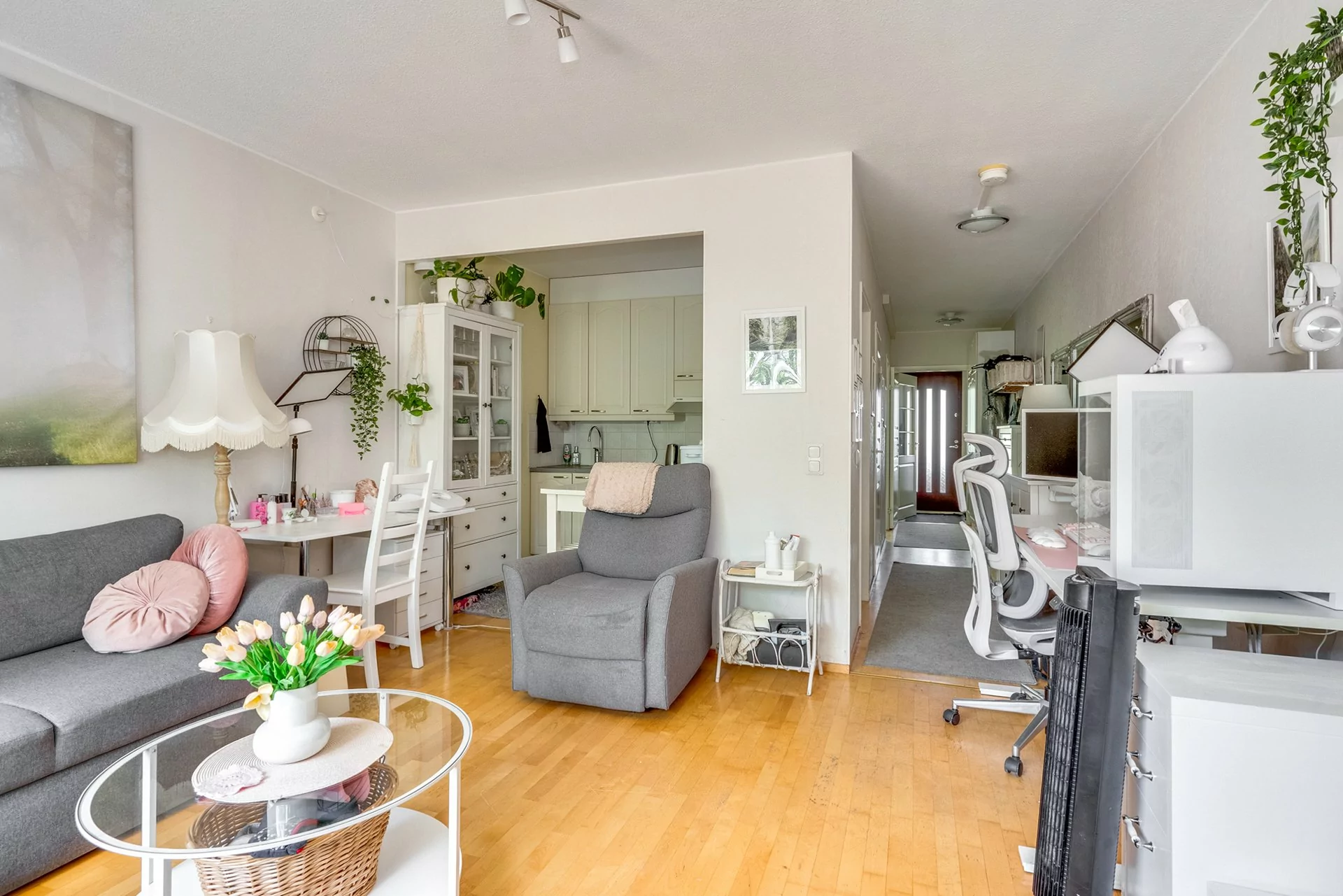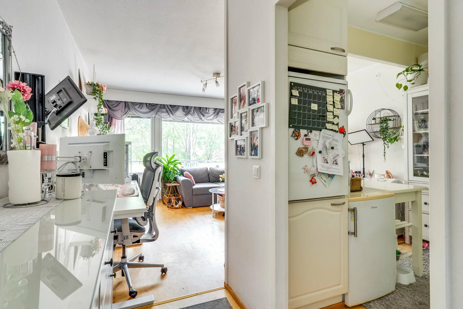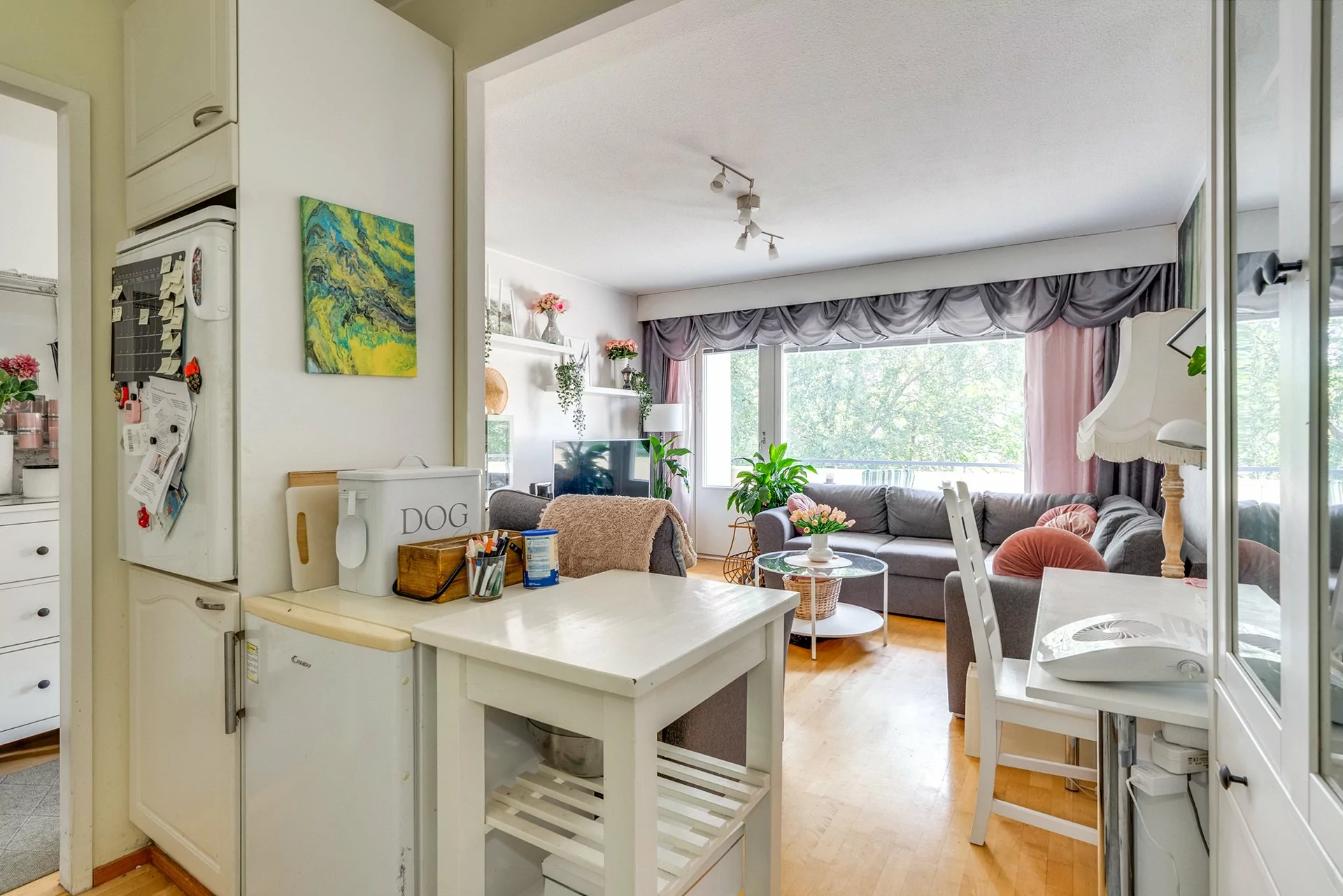 Asunnossa on toimiva pohjaratkaisu, tilava olohuone keittiötilalla.