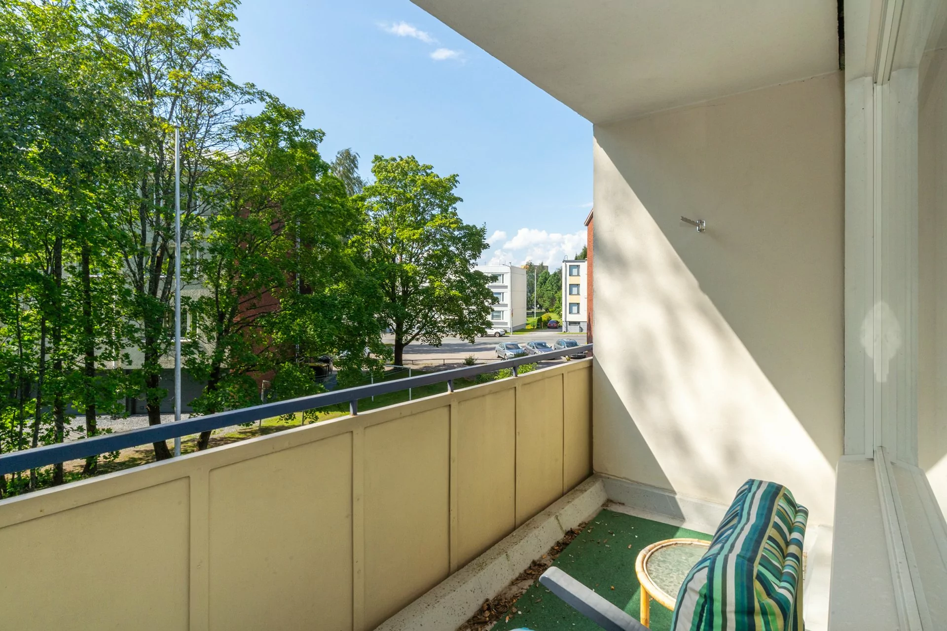 Parveke, jolta avautuu rauhalliset näkymät. Kodissa on pitkäaikainen ja luotettava vuokralainen, joten tämä on erinomainen kohde sijoittajalle, joka arvostaa valmiiksi vuokrattua asuntoa vakaalla tuotolla.