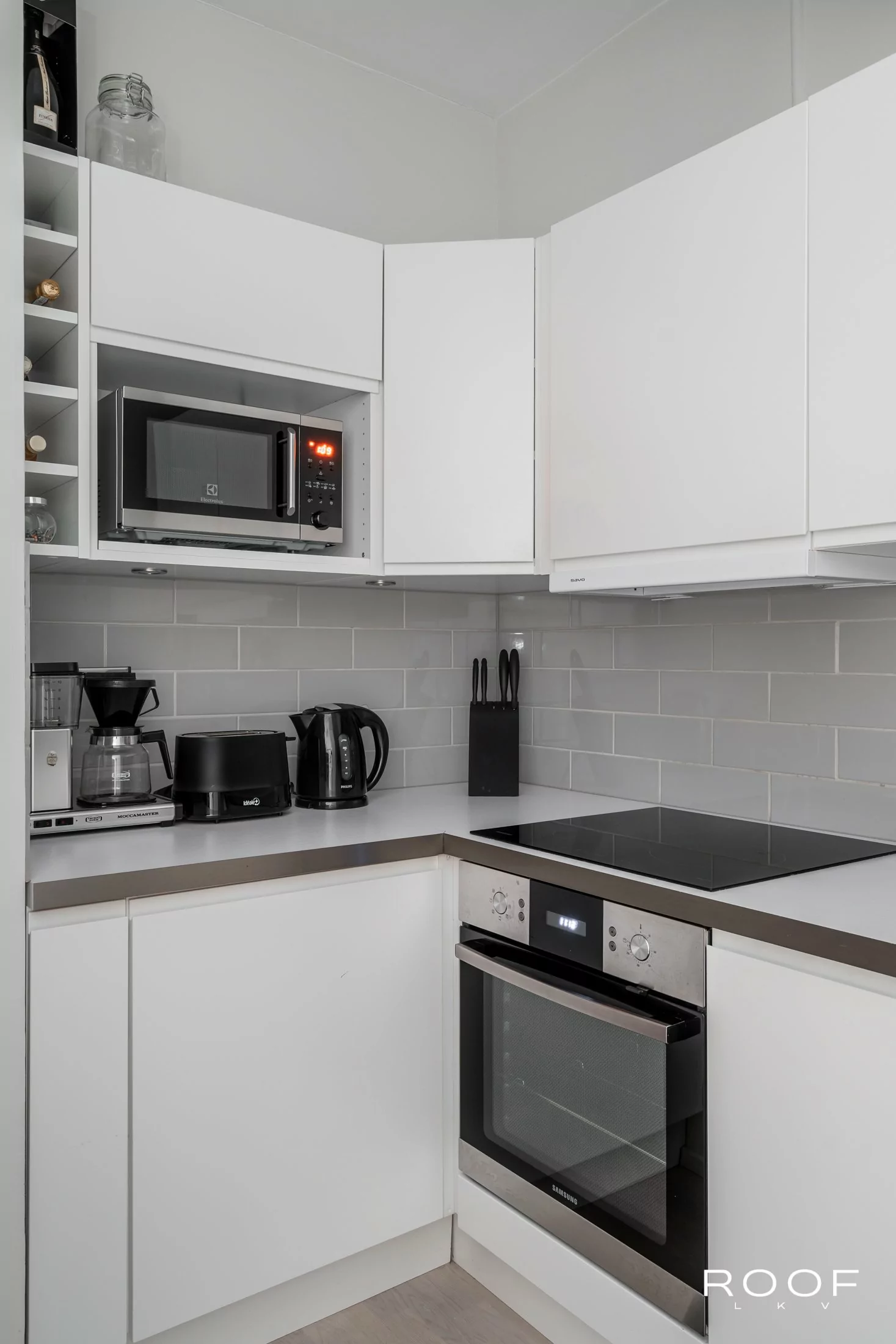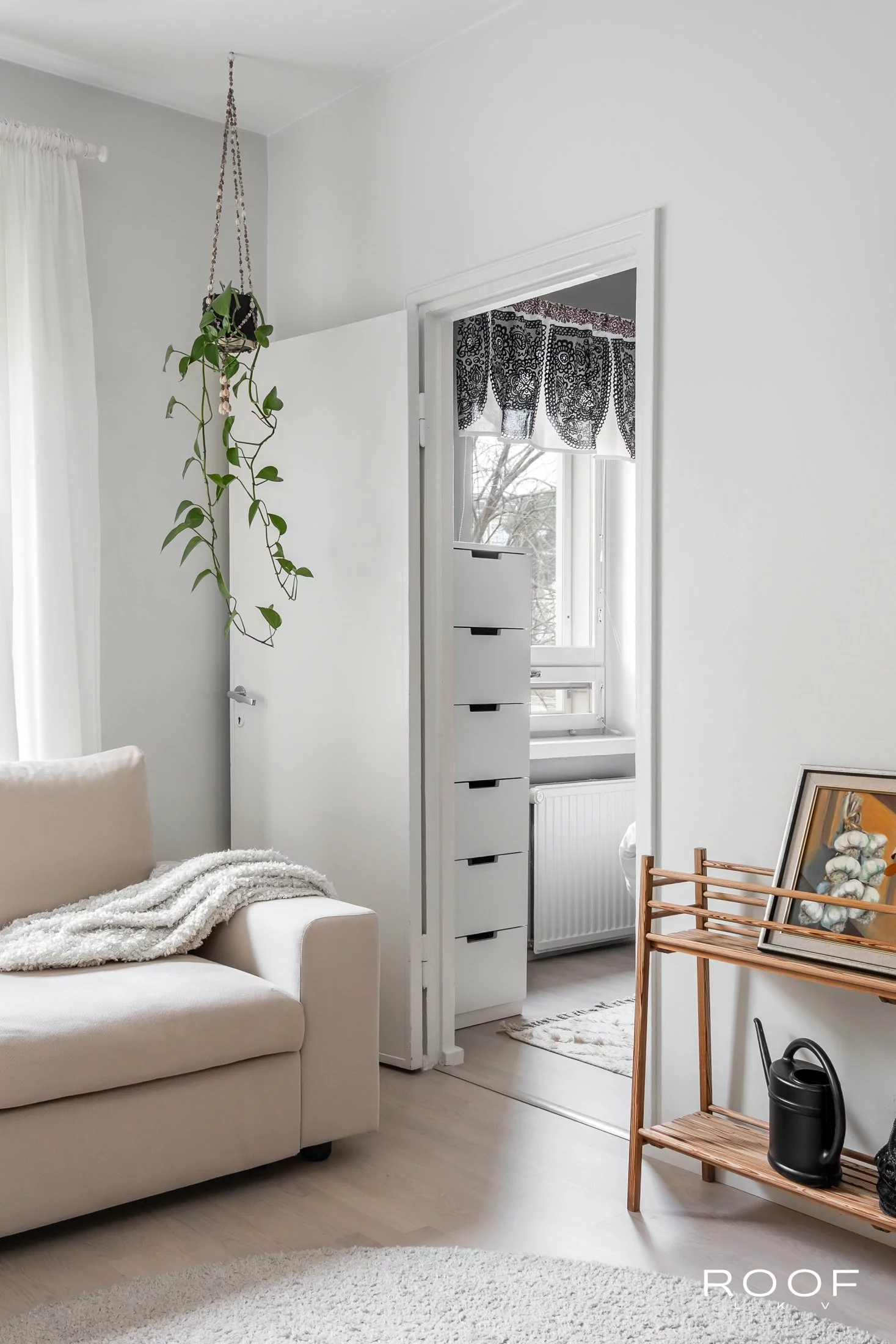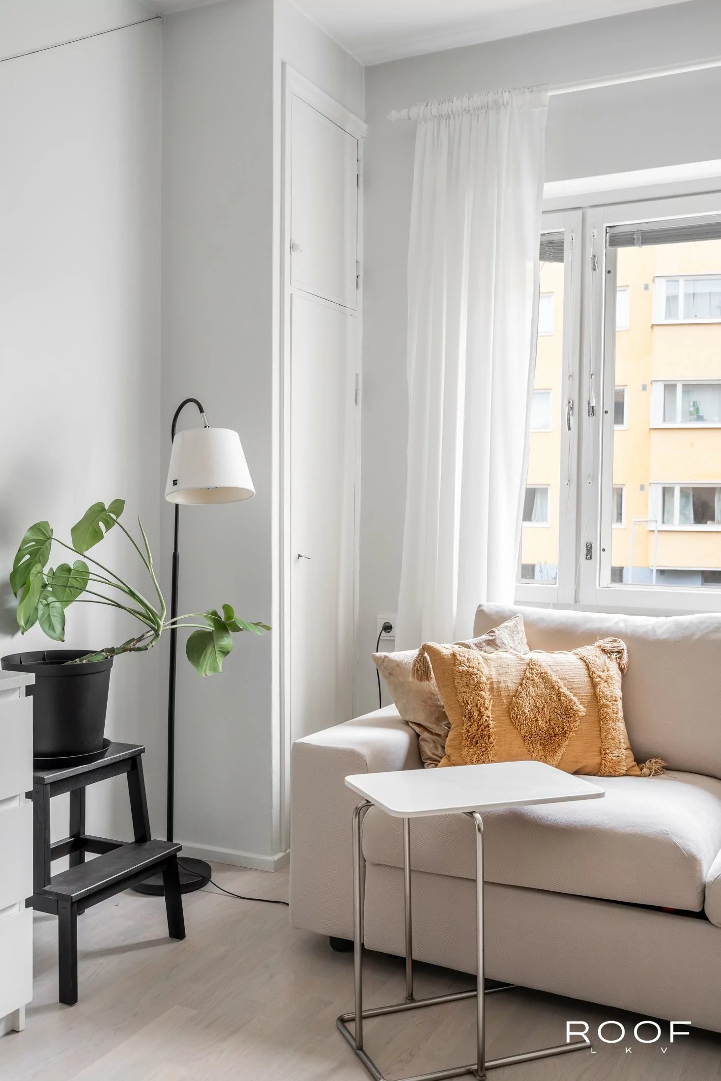 Tämä valoisa ja tilava asunto hurmaa kauniilla vaaleilla sävyillä, parkettilattiallaan, korkealla huonekorkeudella ja toimivalla pohjaratkaisulla. Huonekalut saa helposti sijoitettua asuntoon ja järjestyksen vaihtamiseenkin on varaa. Keittiö on varusteltu kotikokin tarpeet täyttäen tarjoten hyvin säilytys- ja laskutilaa. Kylpyhuoneeseen mahtuu pyykinpesukone. Vastikkeessa on mukana vesimaksut sekä taloyhtiölaajakaista.