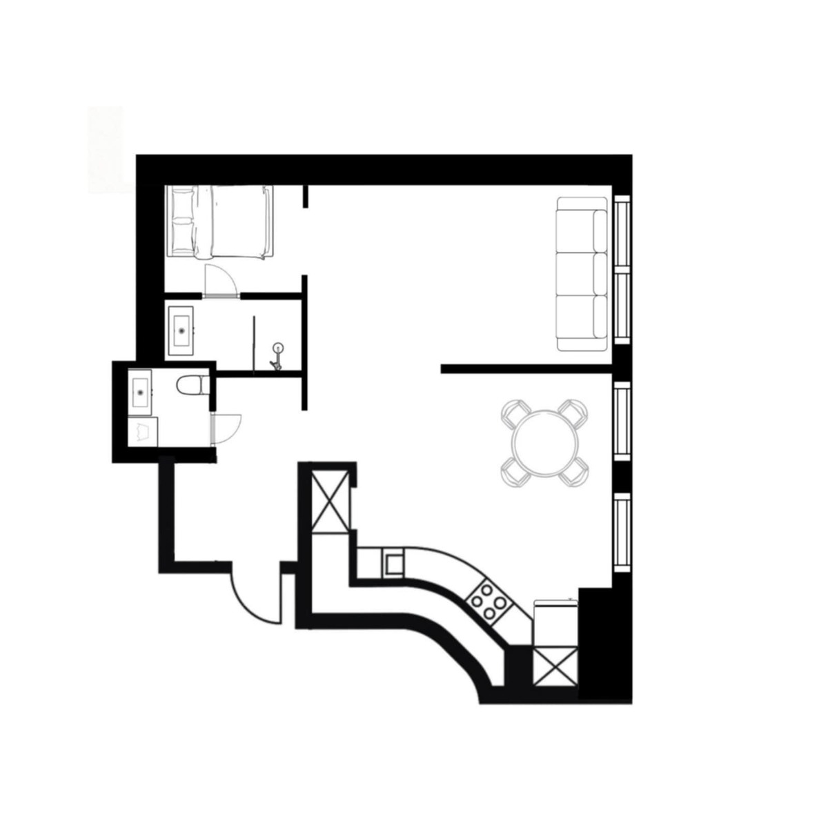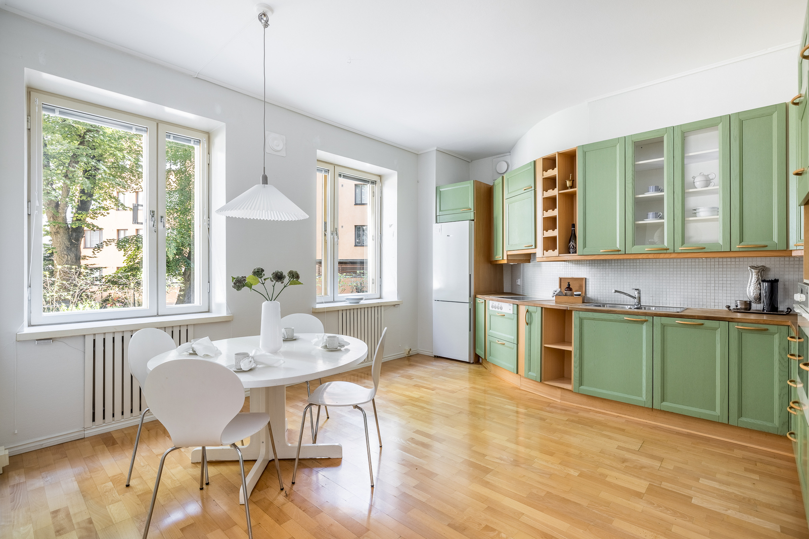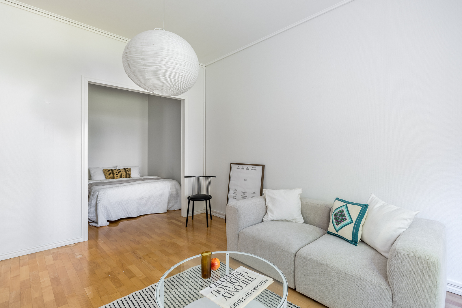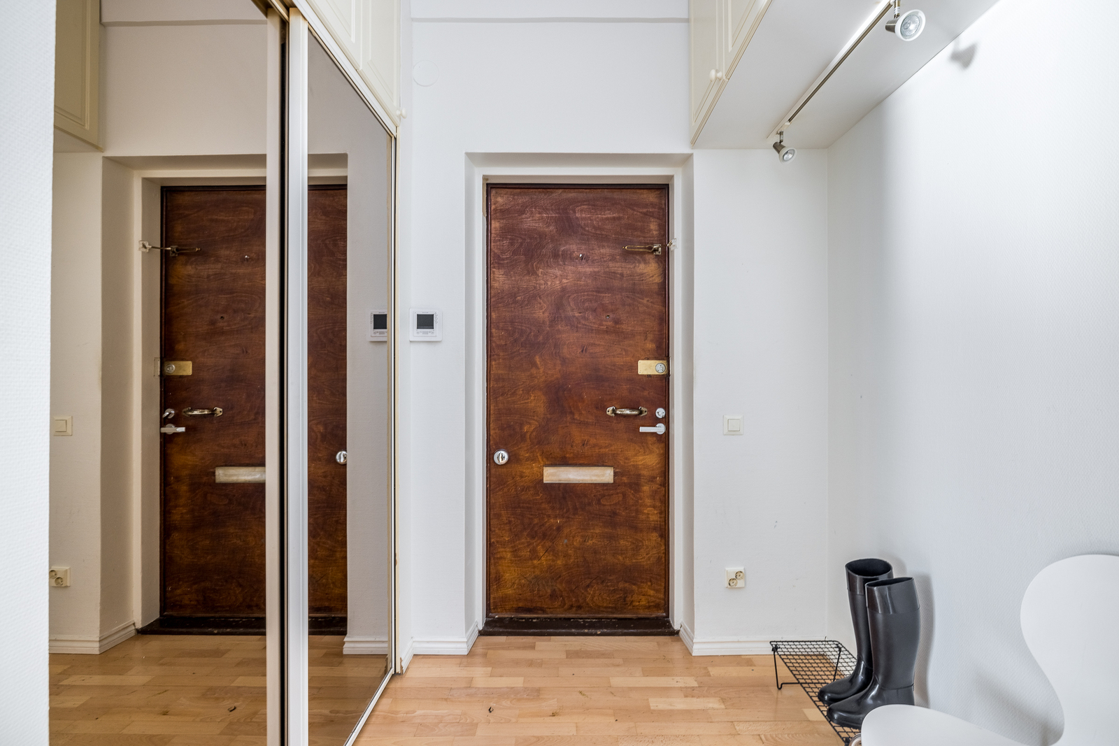 Ensimmäisen kerroksen tilava kaksio tarjoaa viihtyisät puitteet kaupunkiasumiseen aivan Töölöntorin kupeessa. Asunto sijoittuu rauhalliselle sisäpihan puolelle, joten torin äänet eivät kantaudu sisälle.
