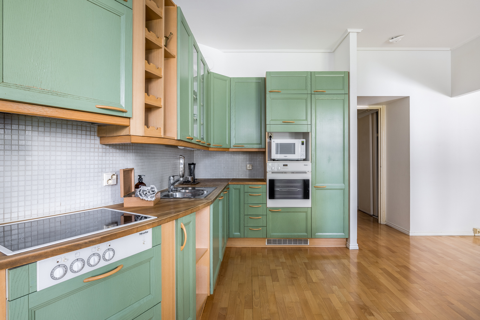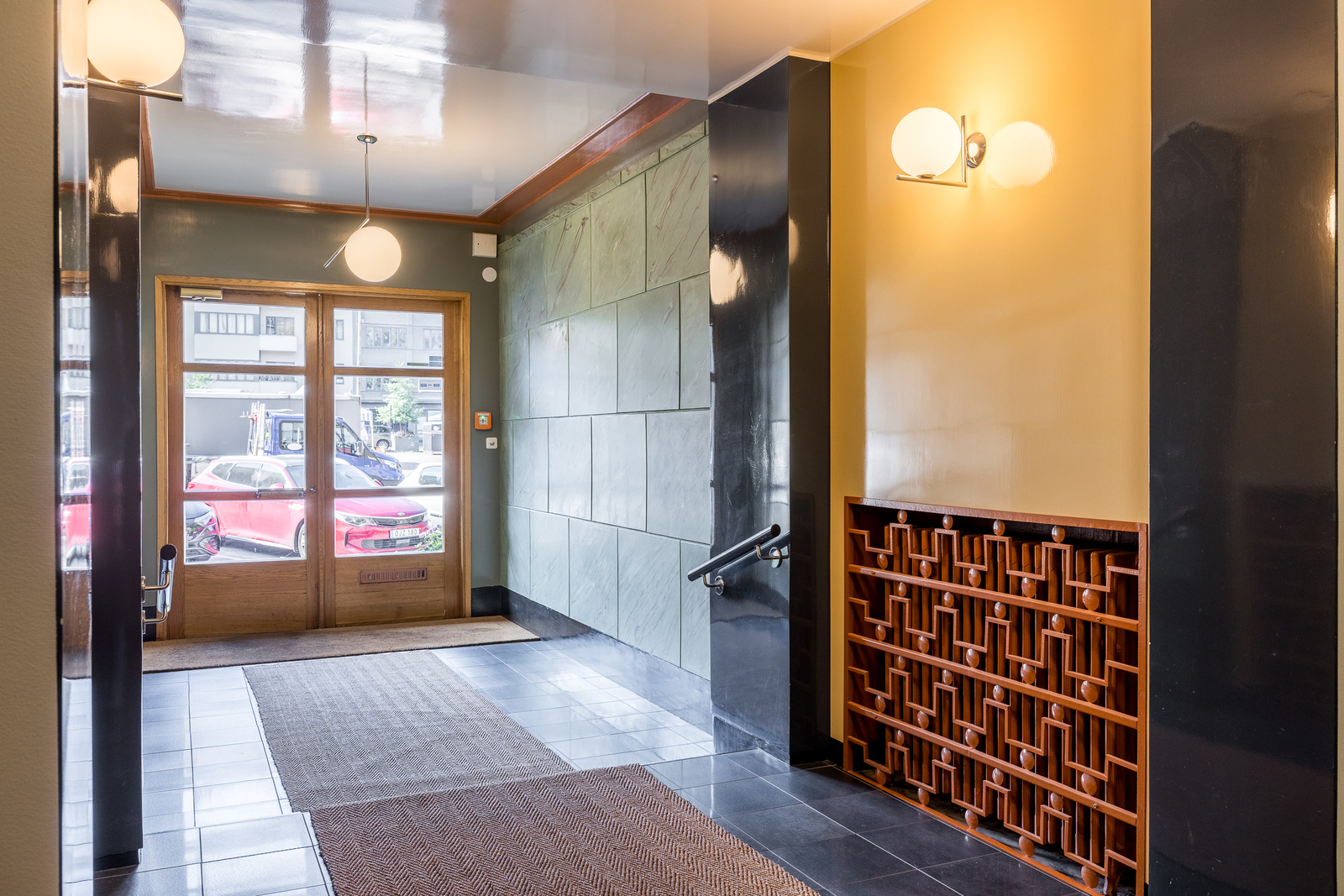 Taloyhtiön tyylikäs rappukäytävä huokuu arvokkuutta ja aikakautensa charmia. Naapurusto on rauhallinen ja yhteisöllinen täällä viihdyt varmasti.