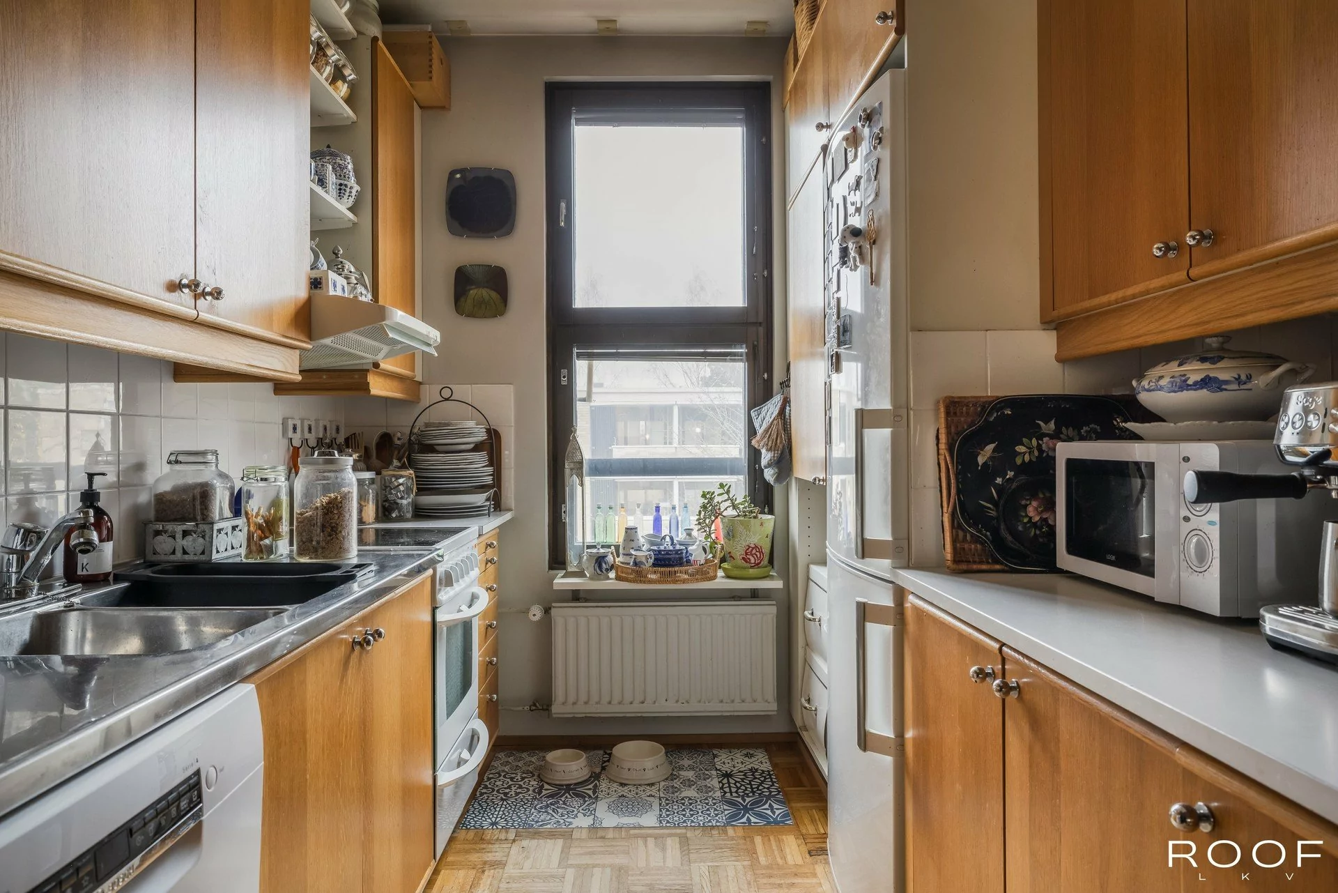 Länteen avautuva parveke tuovat arkeen valoa – parvekkeelta voit nauttia ilta-auringosta ja puistonäkymistä.