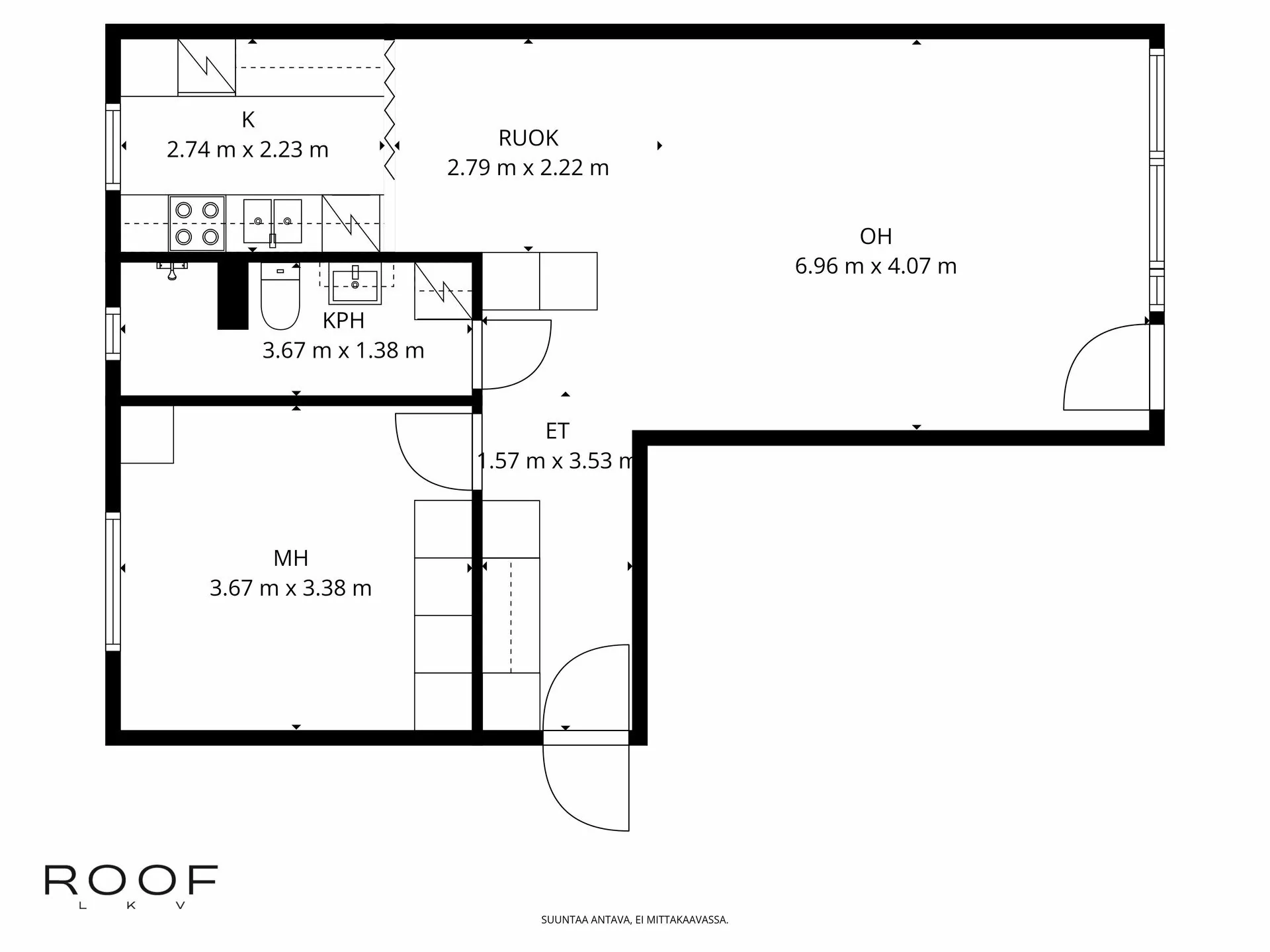 Valliokallio 2h, k, kph, länsi parveke 55 m2 valoisa kaksio puiston laidalla.