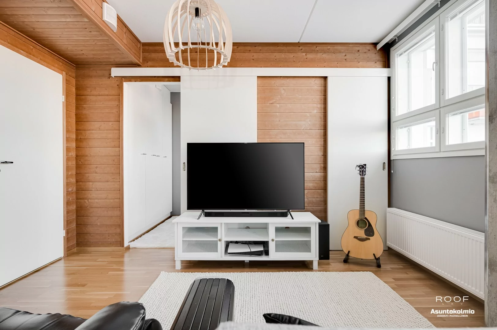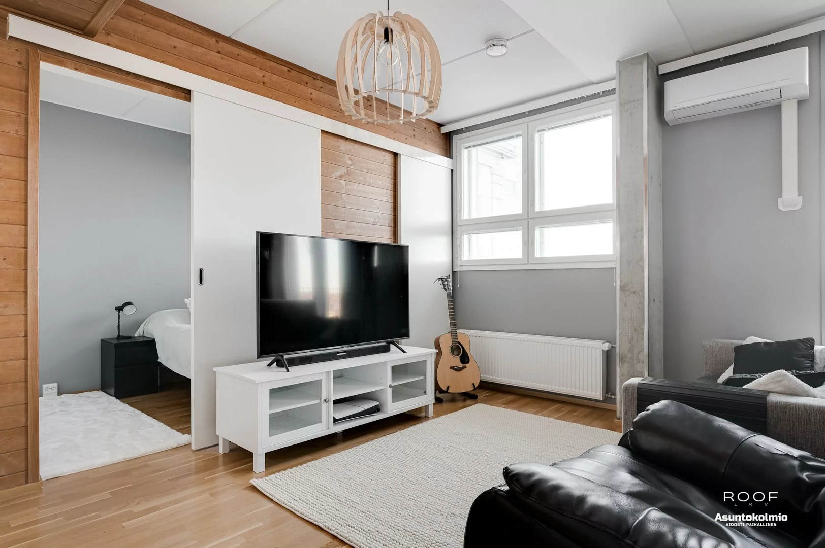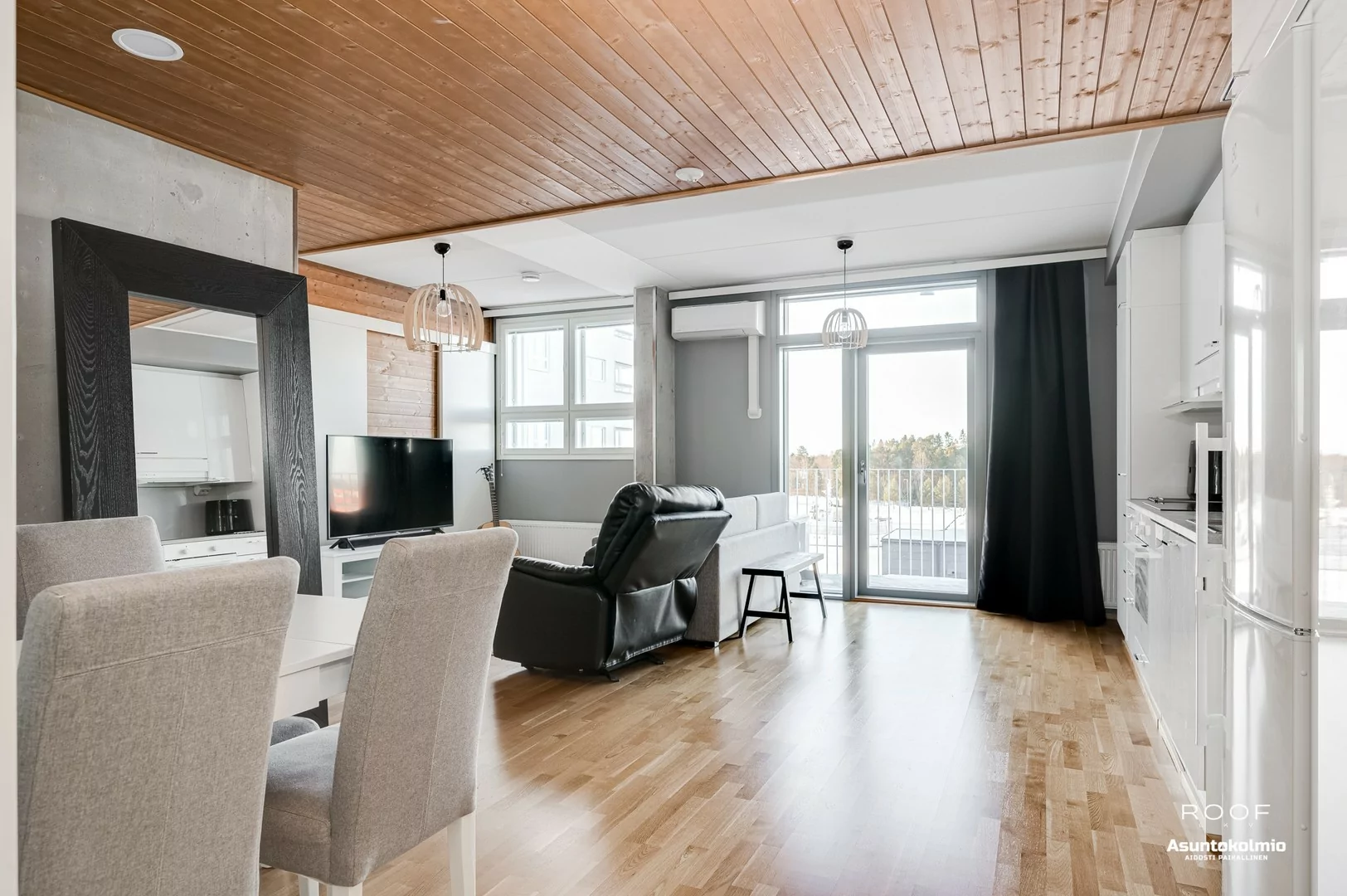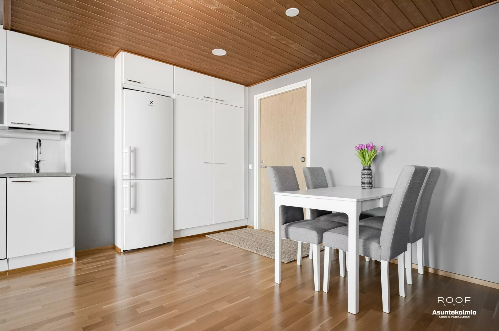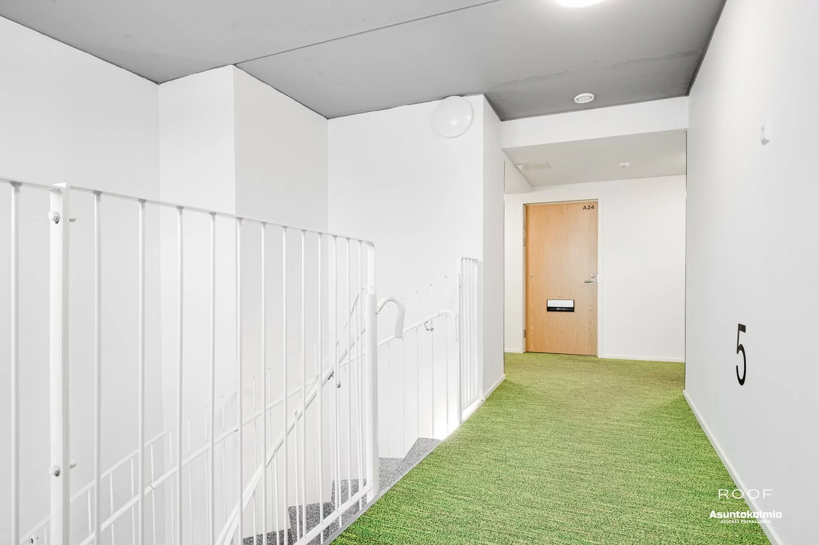 Jo porraskäytävässä huomaat, että nyt ei ole kyseessä se tavallisin yhtiö Toppilansalmesta. Käytävien hotellimaiset kokolattiamatot ovat rakennuksen henkeen sopivia. Huoneistossa jatkuu sama, tyylikkäästi toteutettu sisustus; puupaneelein somistetut väliseinät sekä rouhea betoni tuo aivan...