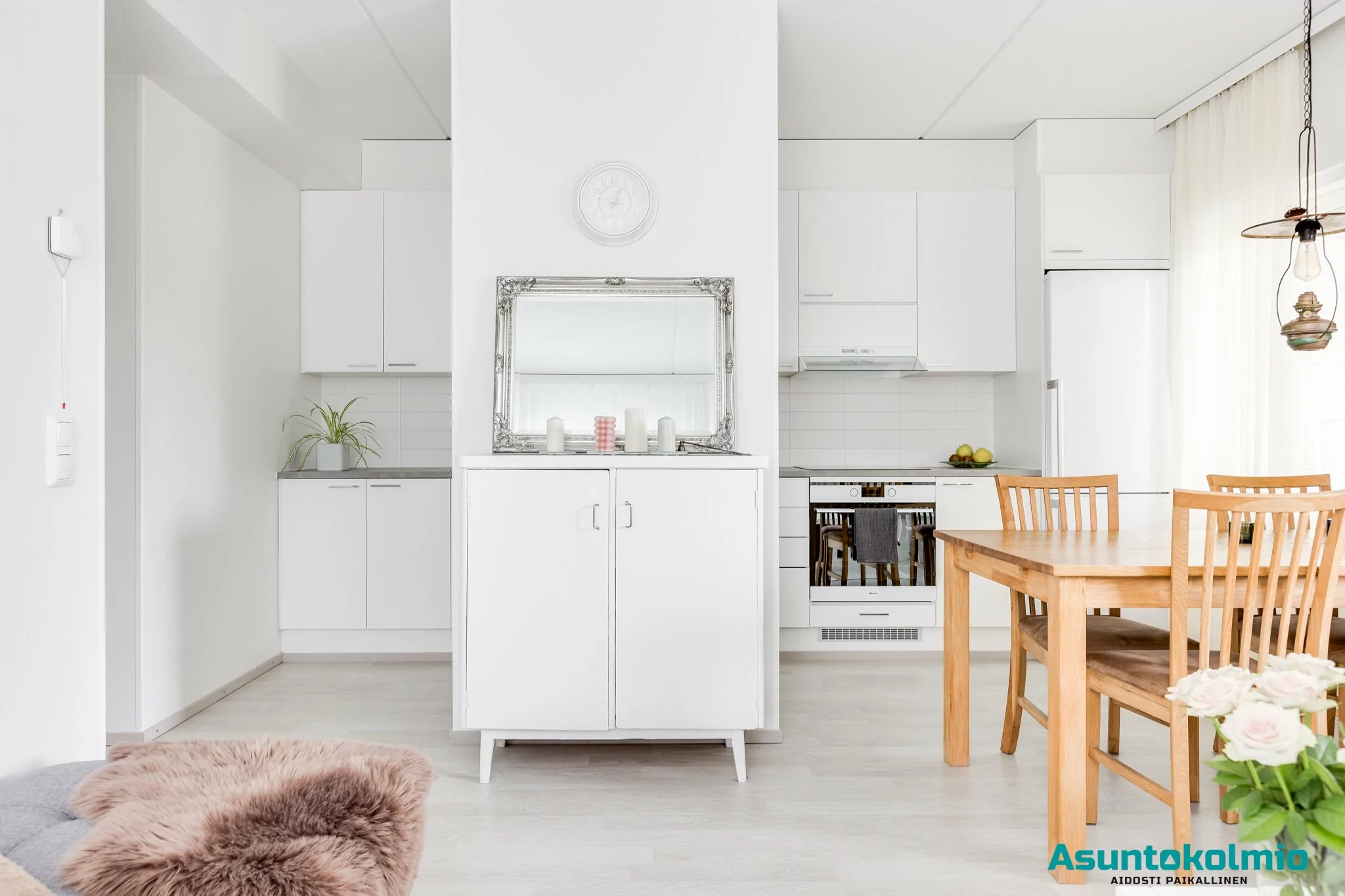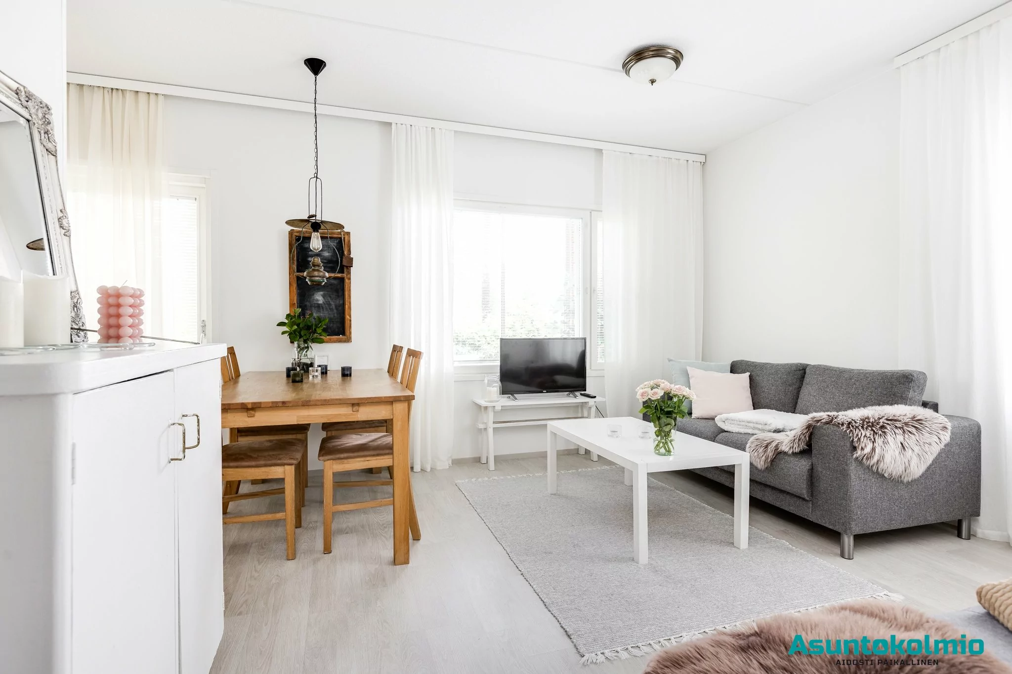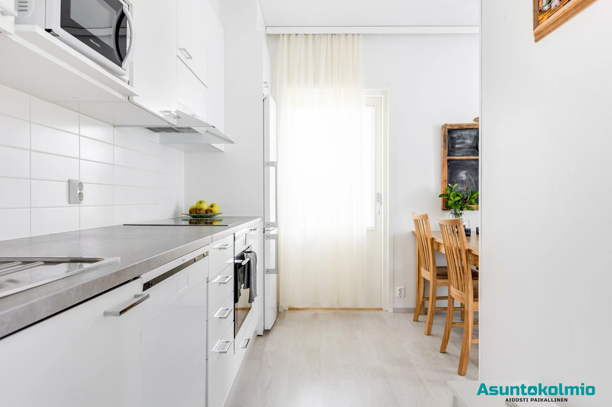 Vaaleansävyinen ja kaunis asunto on hyvässä kunnossa. Olohuoneesta on kulku koko huoneiston levyiselle lasitetulle terassille ja omalle suojaisalle aidatulle piha-alueelle. Terassin lasitus takaa viihtyvyyden varhaisesta keväästä myöhäiseen syksyyn. Lisämukavuutta saat asentamalla sinne terassilämmittimen. Keittiö on hyvin varusteltu ja kaappi- ja laskutilaa on...