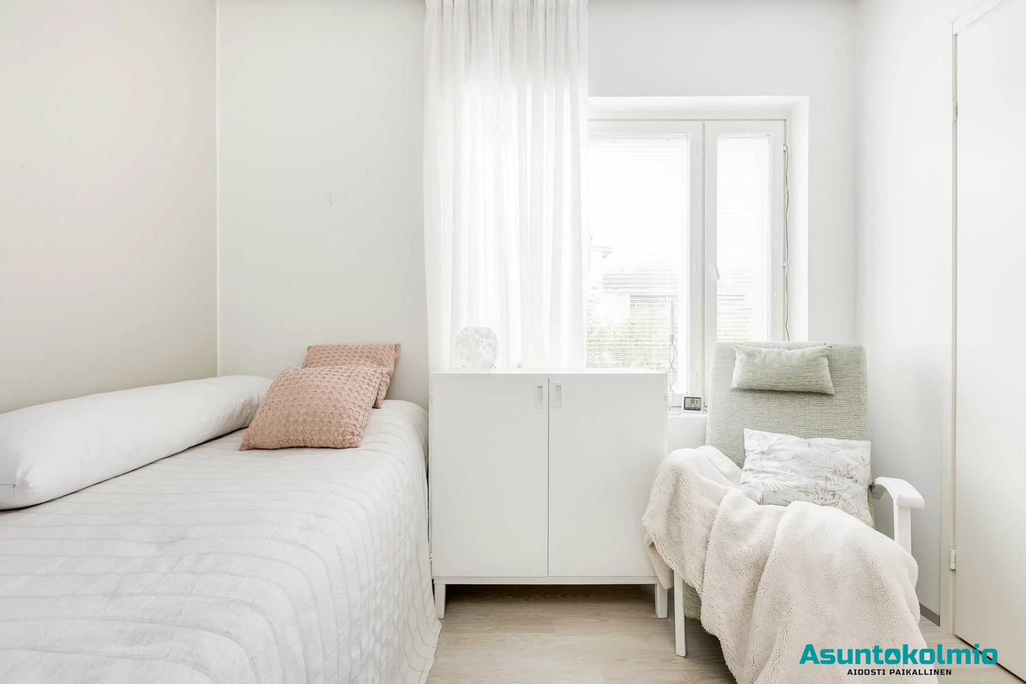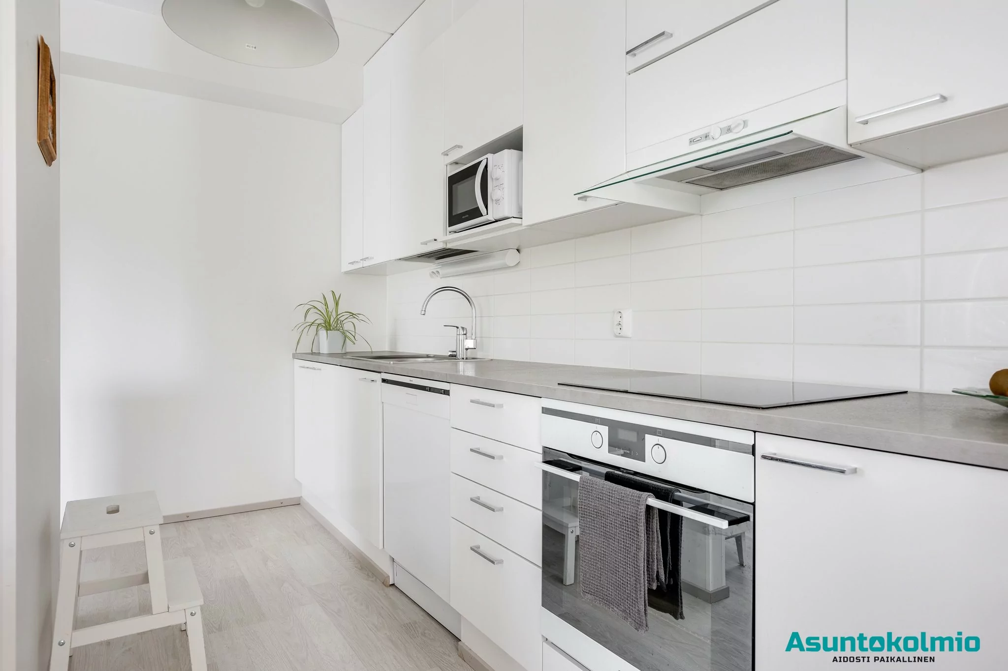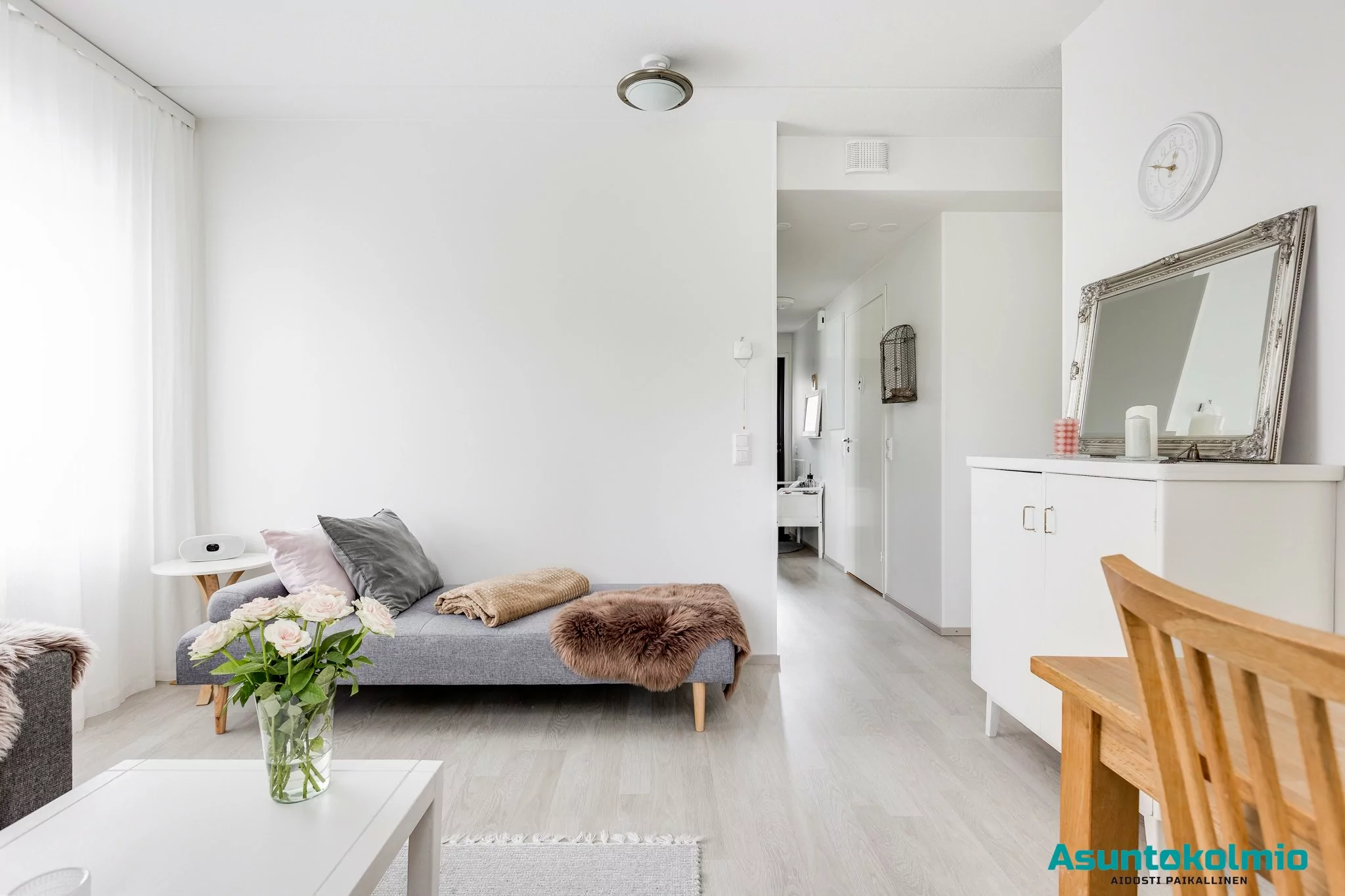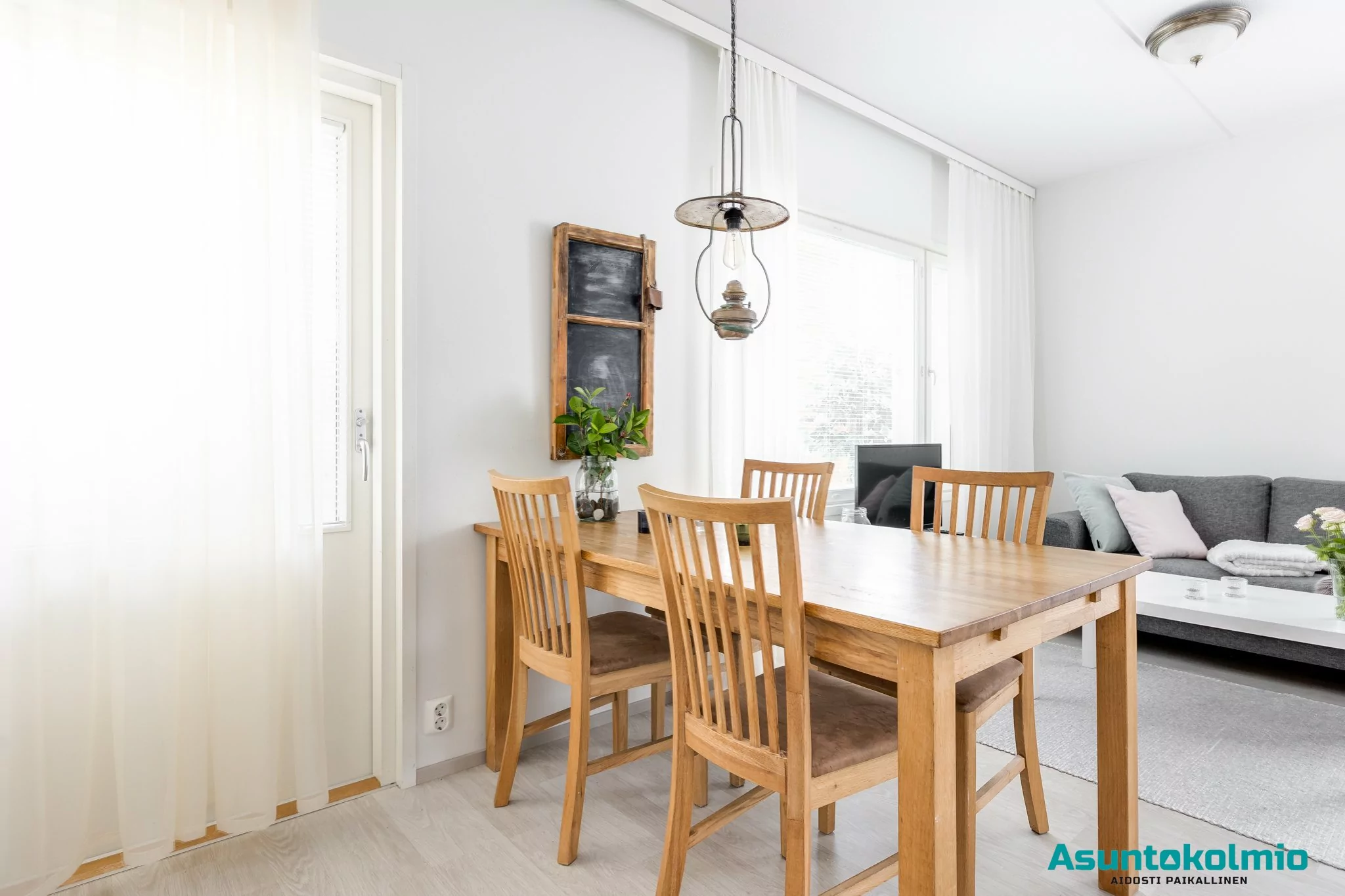 Vaaleansävyinen ja kaunis asunto on hyvässä kunnossa. Olohuoneesta on kulku koko huoneiston levyiselle lasitetulle terassille ja omalle suojaisalle aidatulle piha-alueelle. Terassin lasitus takaa viihtyvyyden varhaisesta keväästä myöhäiseen syksyyn. Lisämukavuutta saat asentamalla sinne terassilämmittimen. Keittiö on hyvin varusteltu ja kaappi- ja laskutilaa on...