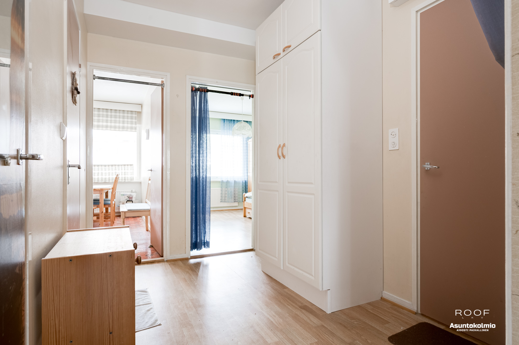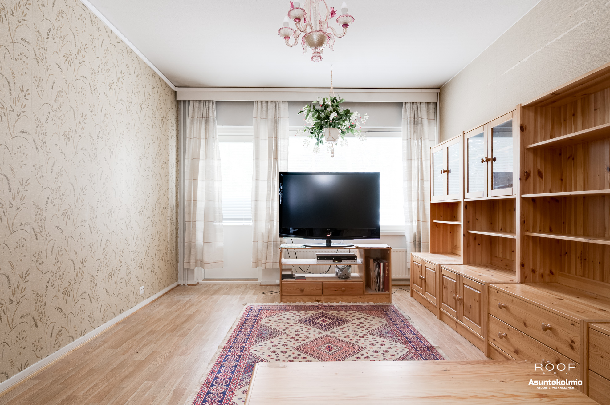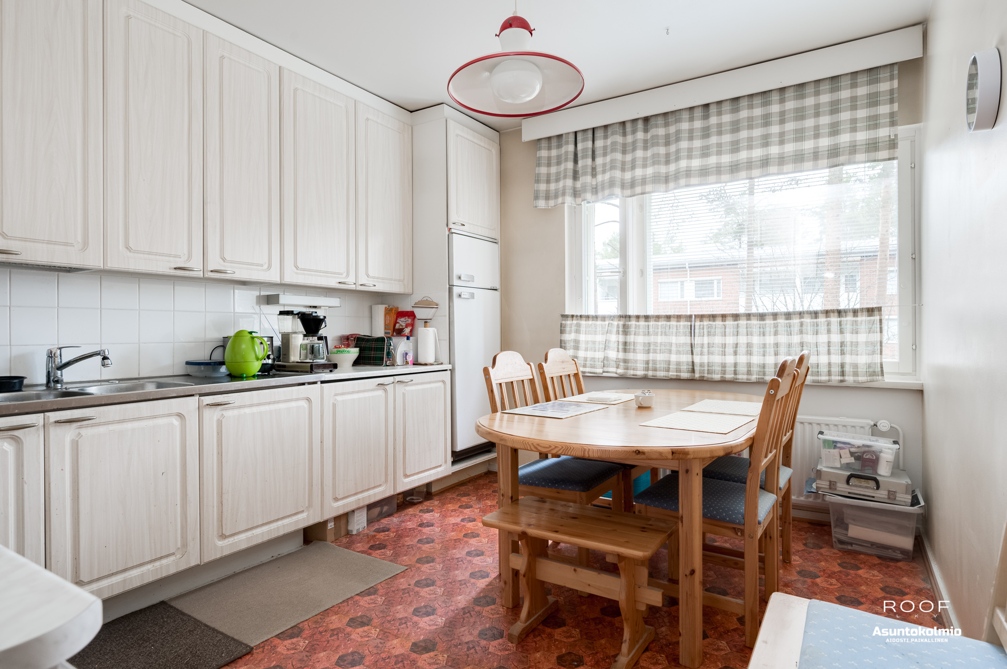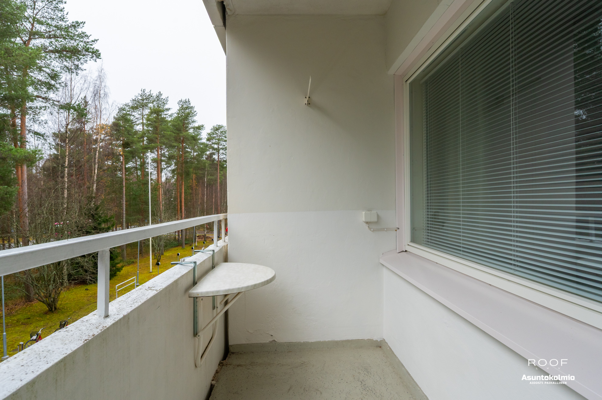 Taloyhtiö on valmistunut aikakaudella, jolloin asuntoihin tehtiin tilavat ja valoisat huoneet. Olohuone on todella reilunkokoinen, ja siitä on kulku parvekkeelle. Parvekkeella nautit aamu-auringosta ja mäntymetsä maisemasta. Vaaleansävyisessä keittiössä on hyvin kaappitilaa. Kylpyhuone on remontoitu linjasaneerauksen yhteydessä ja siellä on tilaa omalle pesukoneelle. Kaapistojen lisäksi säilytystilaa on vaatehuoneessa ja kellarikomerossa. Saunomaan pääset taloyhtiön saunaan.