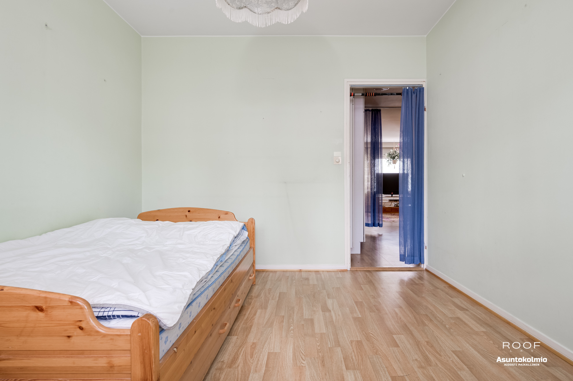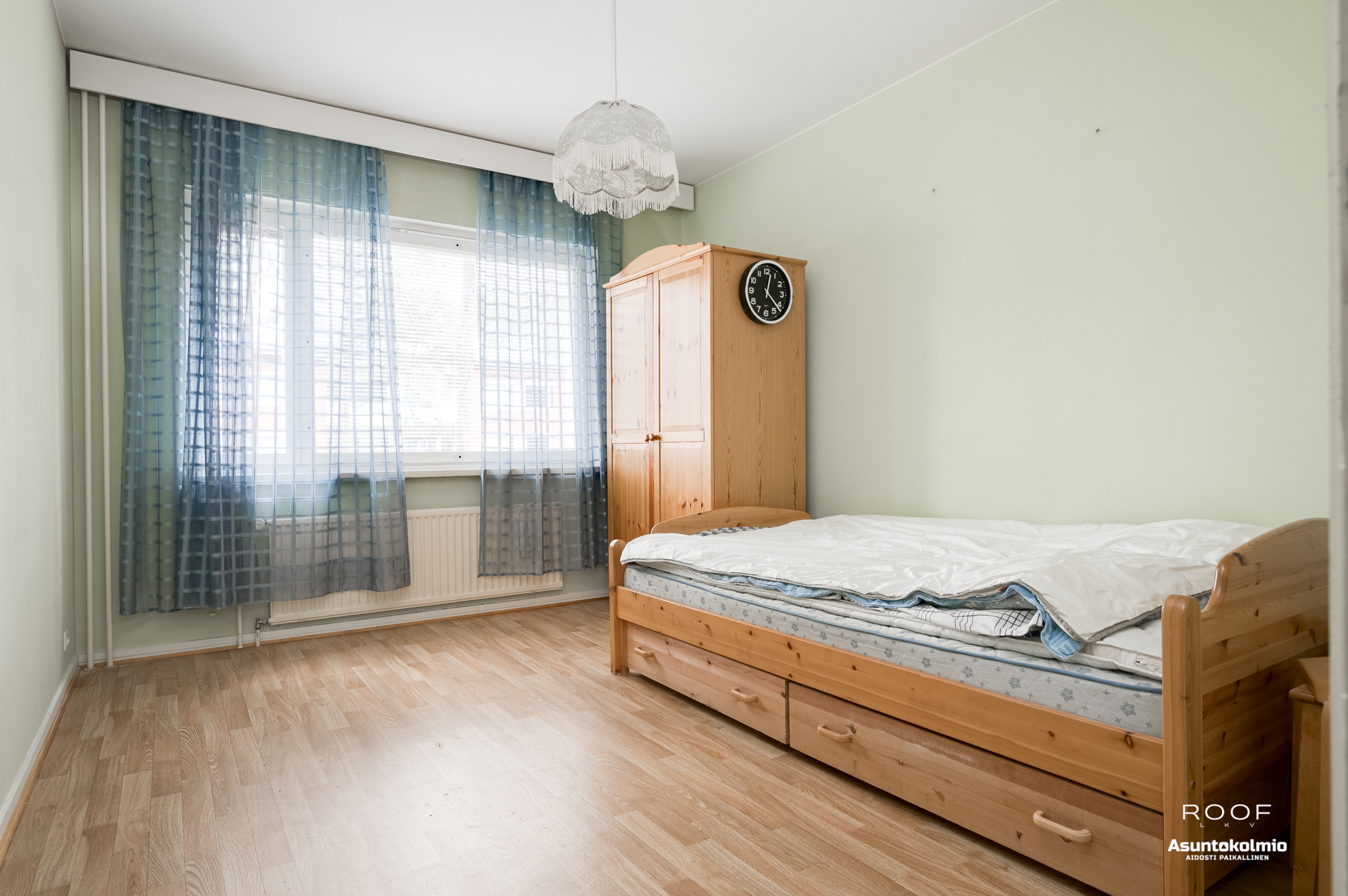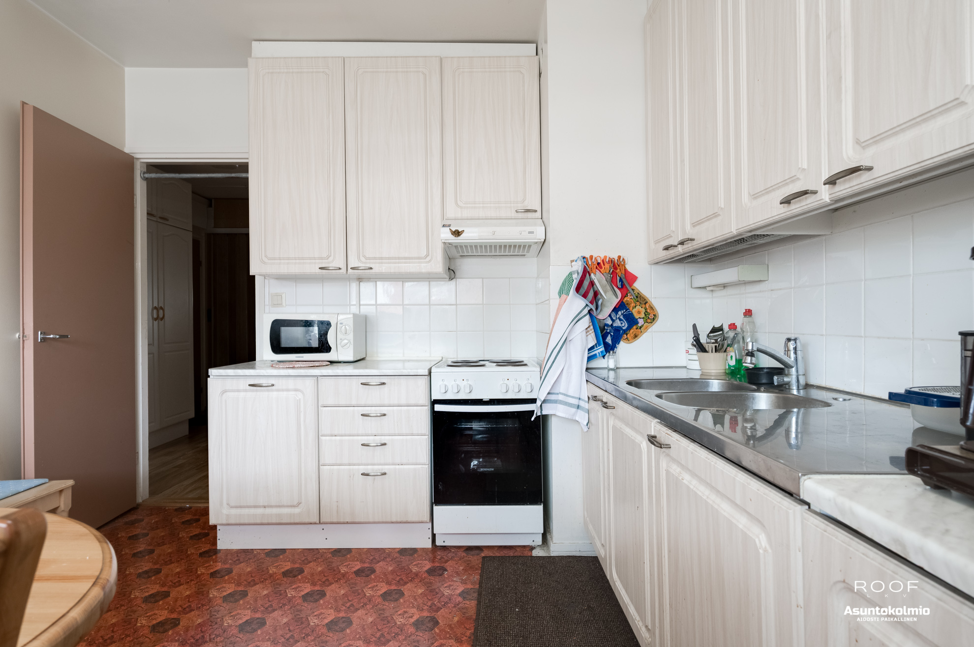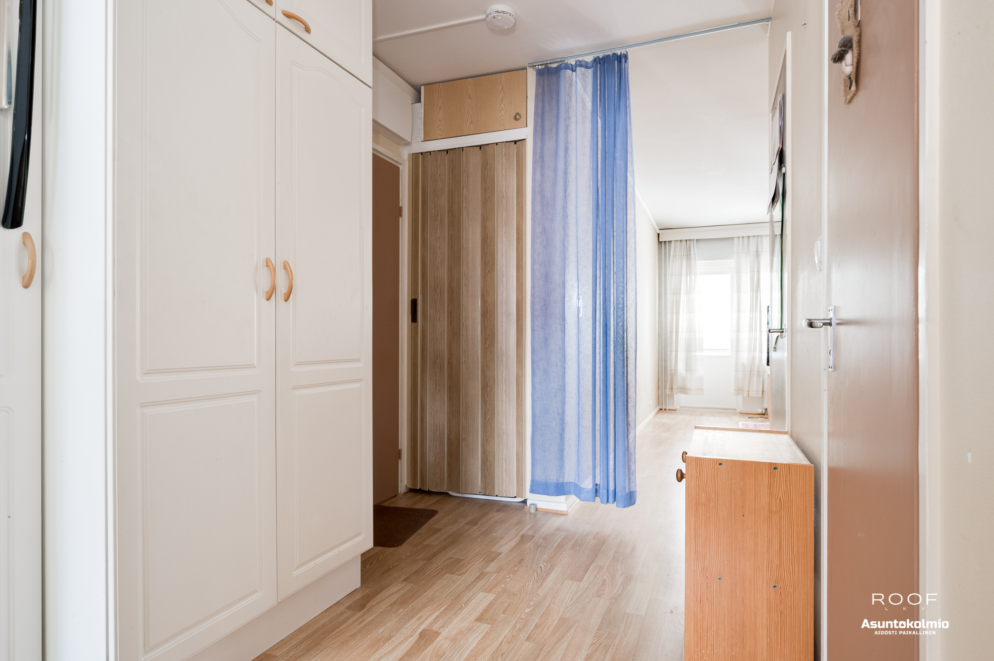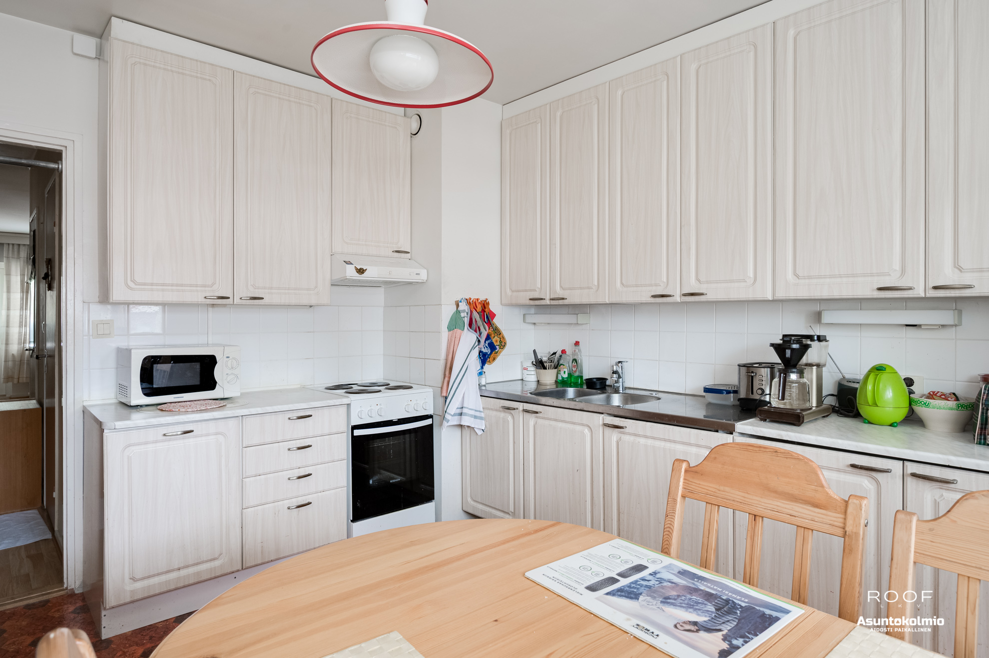 Taloyhtiö on valmistunut aikakaudella, jolloin asuntoihin tehtiin tilavat ja valoisat huoneet. Olohuone on todella reilunkokoinen, ja siitä on kulku parvekkeelle. Parvekkeella nautit aamu-auringosta ja mäntymetsä maisemasta. Vaaleansävyisessä keittiössä on hyvin kaappitilaa. Kylpyhuone on remontoitu linjasaneerauksen yhteydessä ja siellä on tilaa omalle pesukoneelle. Kaapistojen lisäksi säilytystilaa on vaatehuoneessa ja kellarikomerossa. Saunomaan pääset taloyhtiön saunaan.