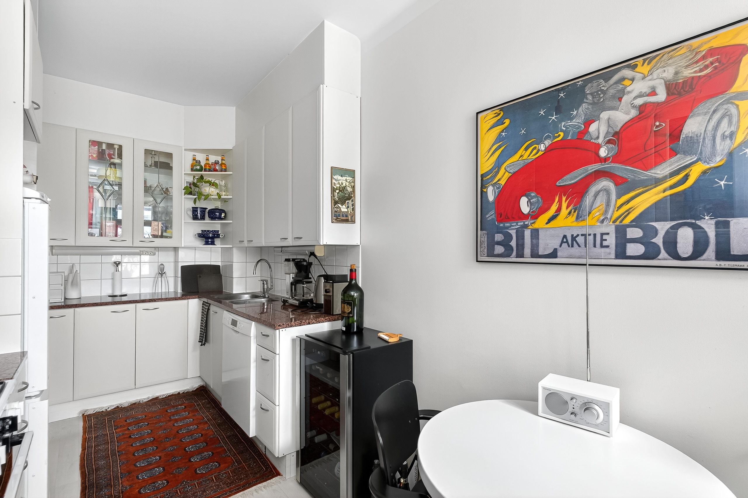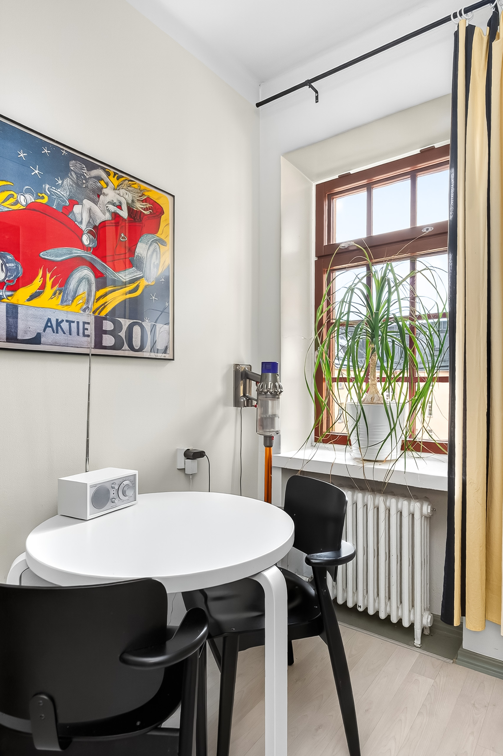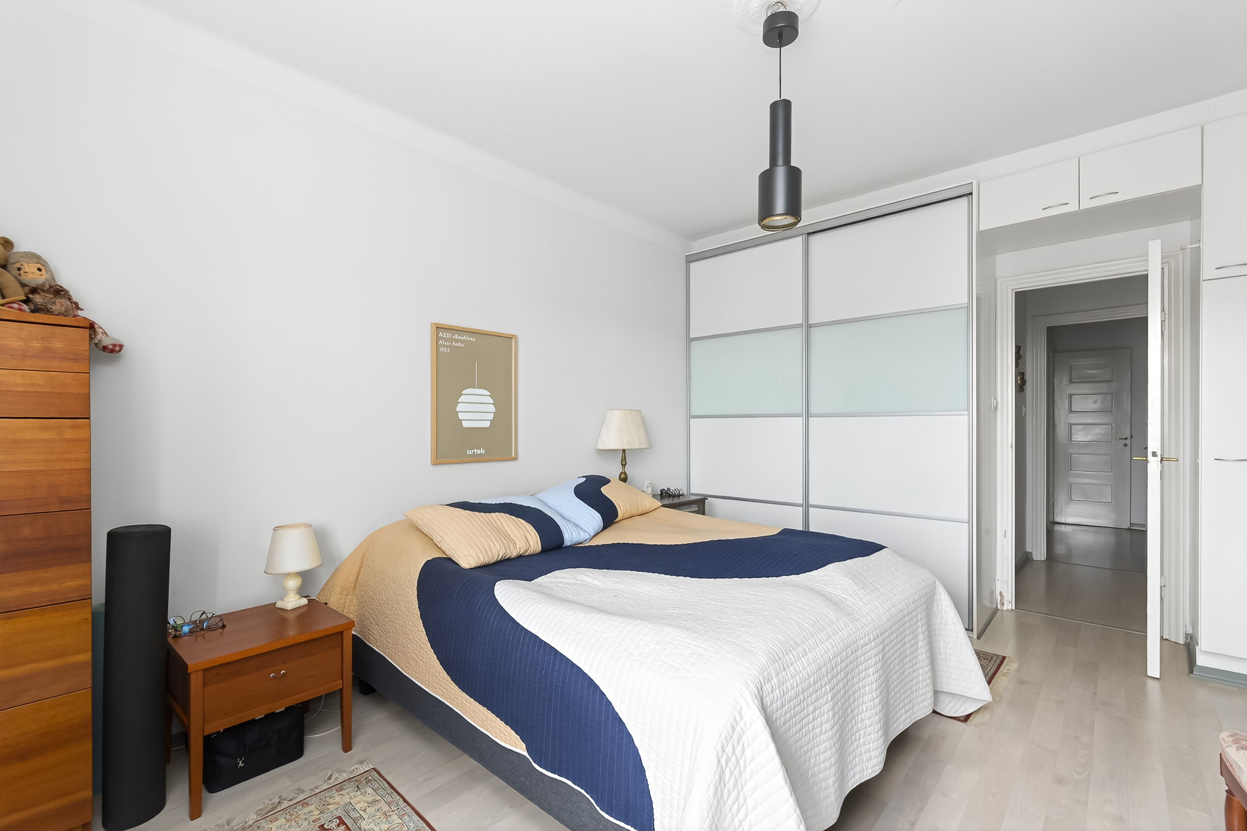 Tilava olohuone kutsuu kokoontumaan isommankin ruokapöydän ääreen. Makuuhuoneessa on tilaa rauhalliselle työpisteelle ja keittiössä runsaasti kaappitilaa sekä viihtyisä aamiaispöydän paikka, josta avautuvat näkymät vehreälle sisäpihalle. Säilytystilaa kodissa on runsaasti ja suunniteltu poikkeuksellisen toimiviksi, jotta arki sujuisi vaivattomasti.