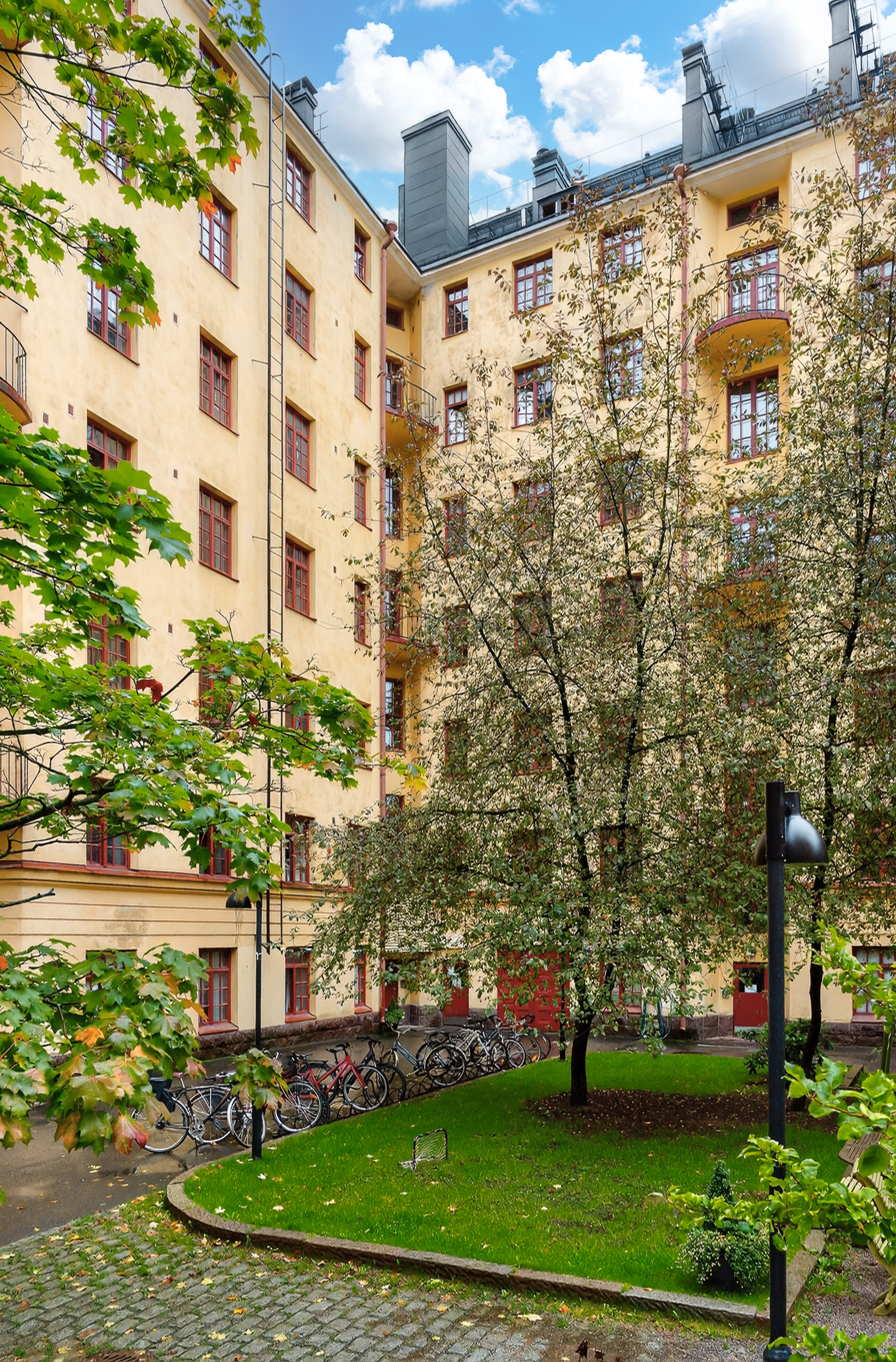 Arvostetussa Gripenbergin korttelissa ylimmän kerroksen valoisa läpitalon huoneisto. Tilava kaksio, joka muuntuu tarvittaessa kolmioksi, kaikki palvelut ja liikenneyhteydet käden ulottuvilla.