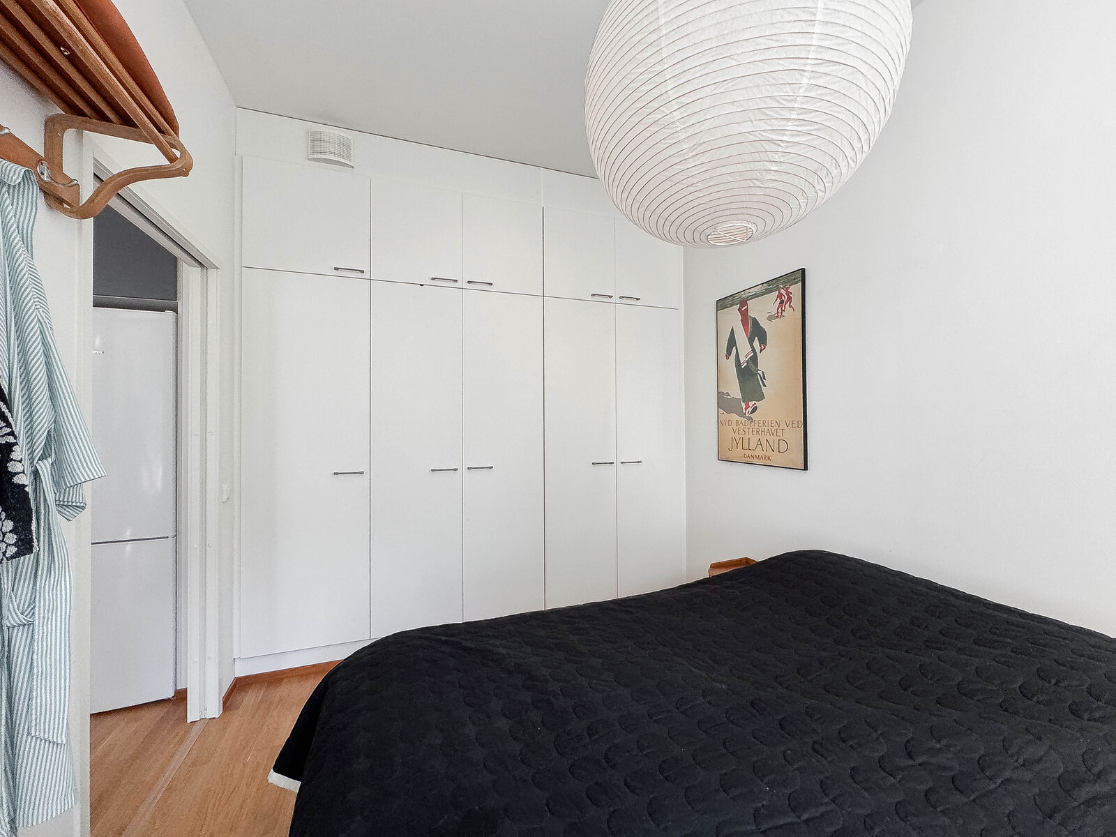 Tämä koti hurmaa valolla, huonekorkeudella sekä toimivalla pohjaratkaisulla. Asunnossa on tilava olohuone, joka yhdistyy luontevasti avoimeen keittiöön. Keittiön edustalla on oiva paikka ruokailuryhmälle. Keittiössä on runsaasti kaappitilaa ja varusteista löytyy astianpesukone. Suurista ikkunoista tulvii valoa tilaan. Huoneesta on kulku tilavalle lasitetulle terassiparvekkeelle, jossa kelpaa nautiskella säästä myös kotoa käsin. Makuuhuoneeseen mahtuu isompikin parisänky ja siellä on kaapistot säilytystilaa varten. Eteisestä on kulku laatoitettuun kylpyhuoneeseen, joka on varustettu pyykinpesukoneliitännällä. Neutraali värimaailma antaa oivan pohjan sisustukselle!