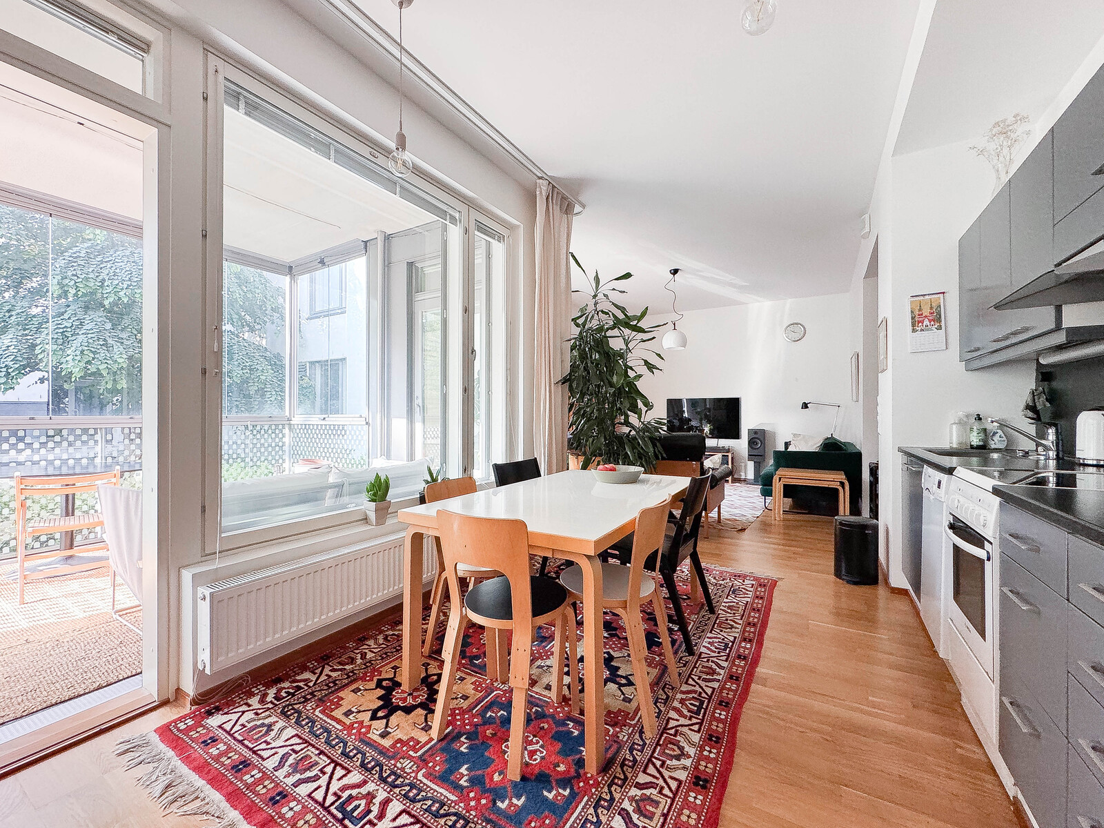 Asunnon sijainnissa yhdistyy viihtyvyys ja toimivuus. Läheltä löydät niin kattavat palvelut kuin liikenneyhteydet. Mieluisia ulkoilumahdollisuuksia tavoitat hetkessä, asunnolta lähdet kätevästi suuntaamaan niin Hermannin rantapuiston kuin Mustikkamaankin suuntaan. Laajat liikenneyhteydet löytyvät kiven heiton päästä, ratikka- ja linja-autopysäkkejä muutaman sadan metrin säteellä, josta huratat kätevästi esimerkiksi Helsingin keskustaan. Sörnäisten metroasemalle vain noin 600 metrin kävelymatka. Teurastamon ihastuttava ruokakulttuuria tarjoava alue löytyy vain noin 450 metrin päästä. Kauppakeskus REDI laajoine palveluineen ja Kalasataman metroasema sijaitsevat vain noin kilometrin päässä.