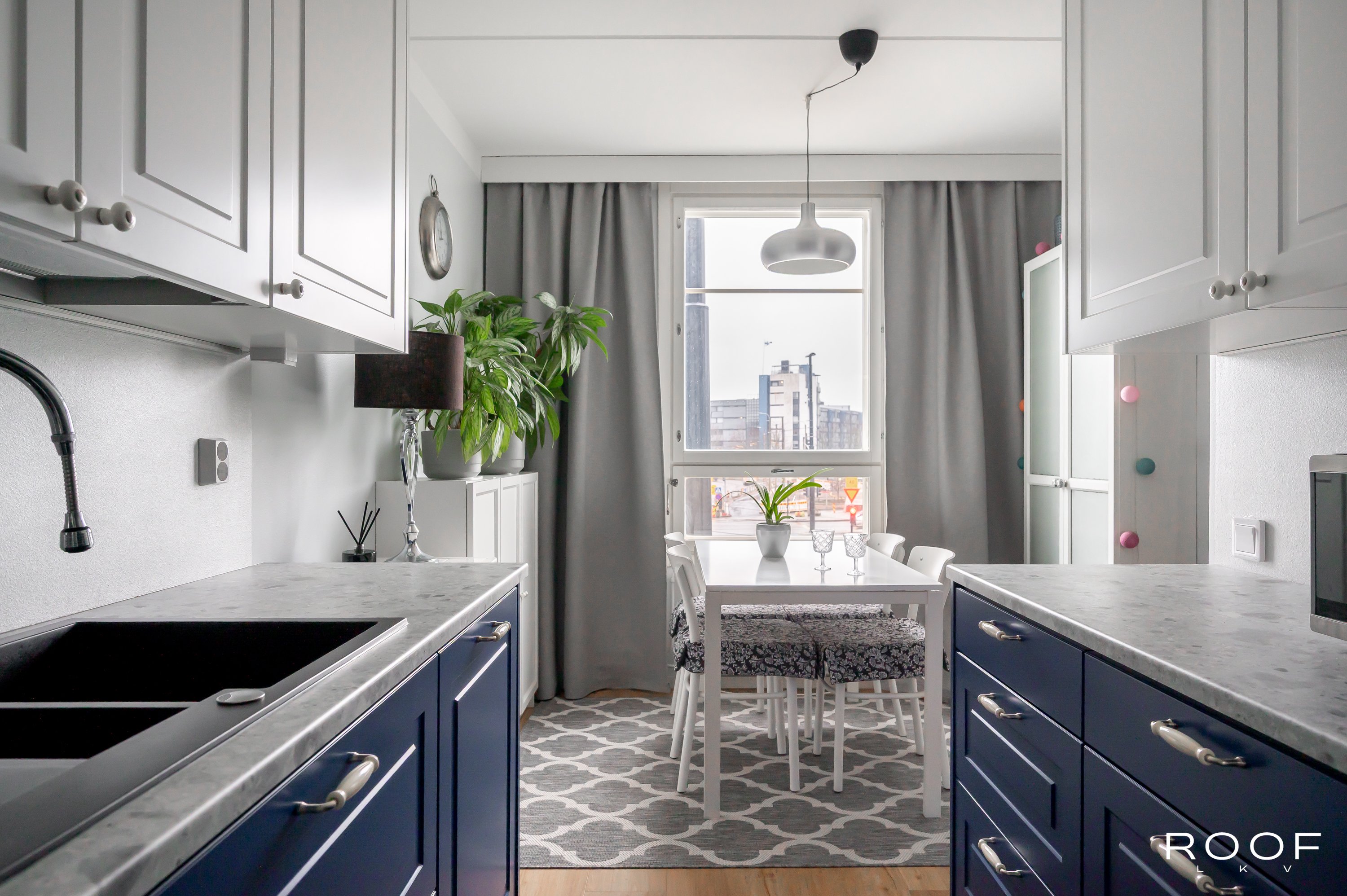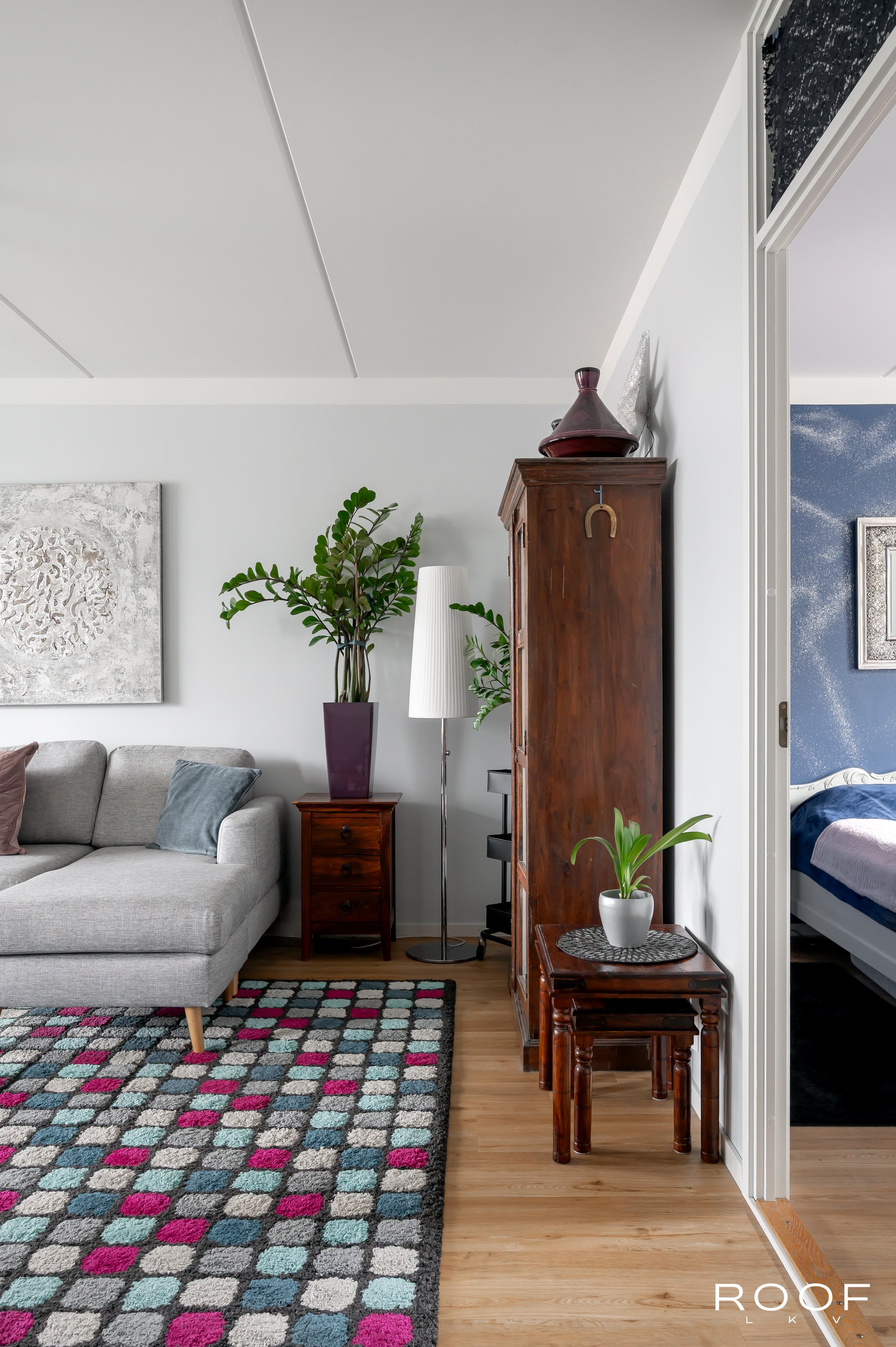 Pohjaratkaisu koostuu olohuoneesta, keittiöstä, makuuhuoneesta ja kylpyhuoneesta. Keittiössä on hyvin säilytys- ja laskutilaa, makuuhuoneesta löytyy kaappitilaa seinän leveydeltä. Kylpyhuoneeseen mahtuu pesukone. Asuntoa on remontoitu vuosien 2022-2023 aikana, jol...