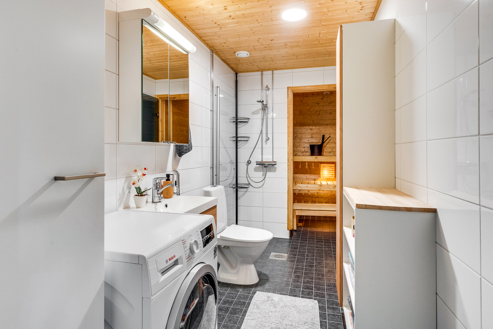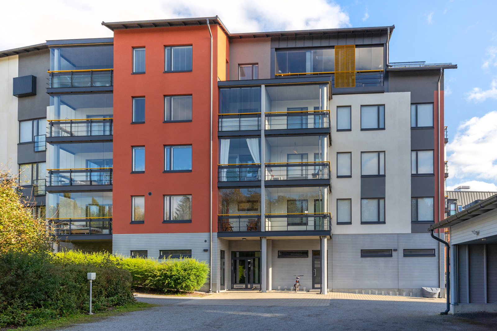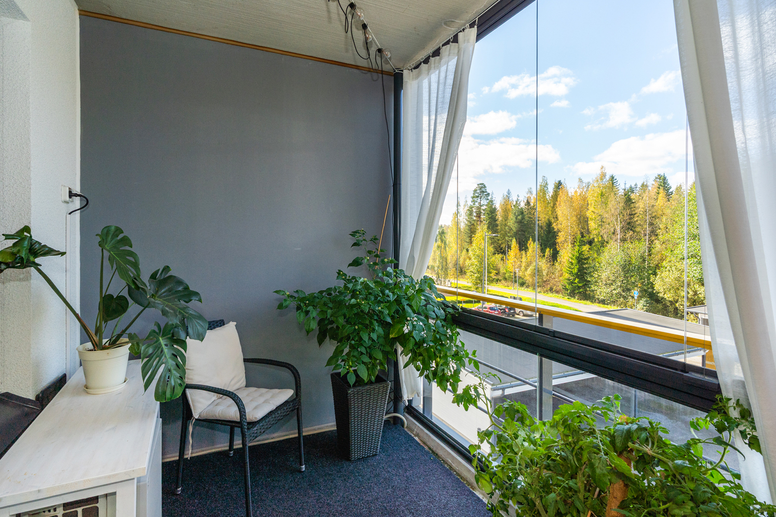 Nyt vapautumassa valoisa kolmannen kerroksen kaksio, jonka pohjaratkaisu vastaa tämän päivän toiveita. Keittiössä on mukavasti kaappi- sekä laskutilaa ja sen yhteyteen mahtuu hyvin 4- hengen ruokailuryhmä. Olohuone on avara ja se antaa mahdollisuuden moneen sisustusratkaisuun. Olohuoneesta on käynti suojaisalle lasitetulle parvekkeelle, jossa kelpaa nauttia pimenevistä illoista pitkälle syksyyn. Kylpyhuoneessa on tilaa kodinhoidolle ja mikä parasta, sieltä löytyy myös oma sauna. Kokonaisuuden kruunaa ilmalämpöpumppu.