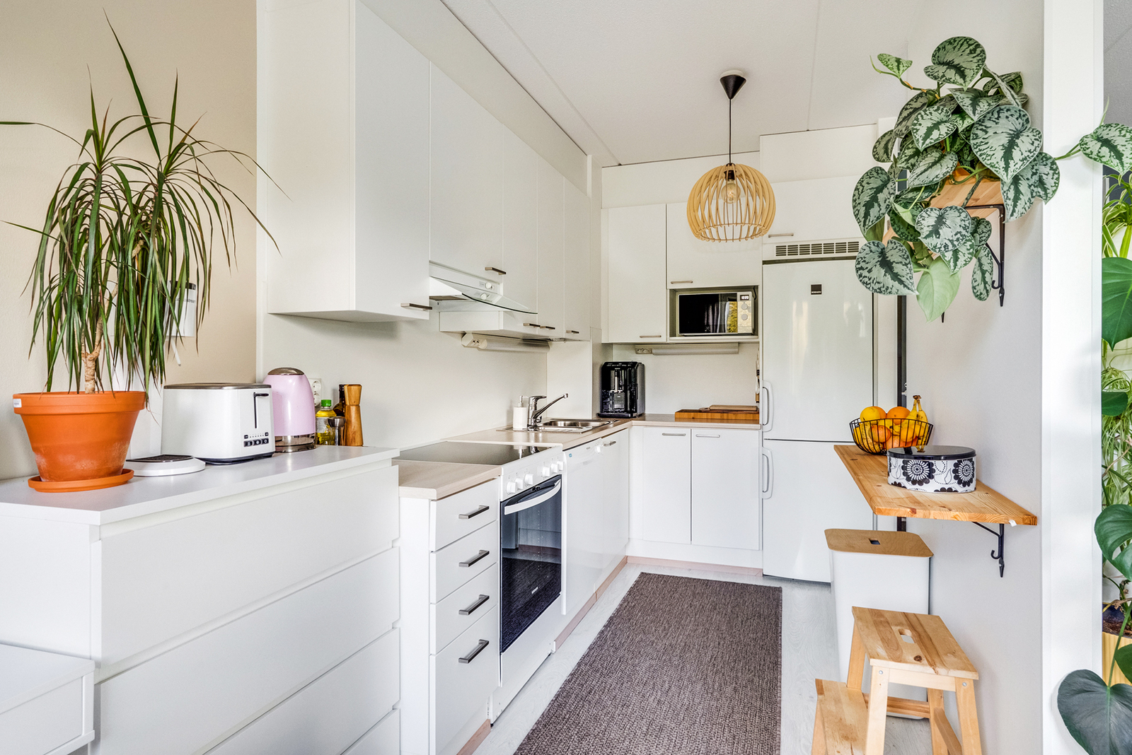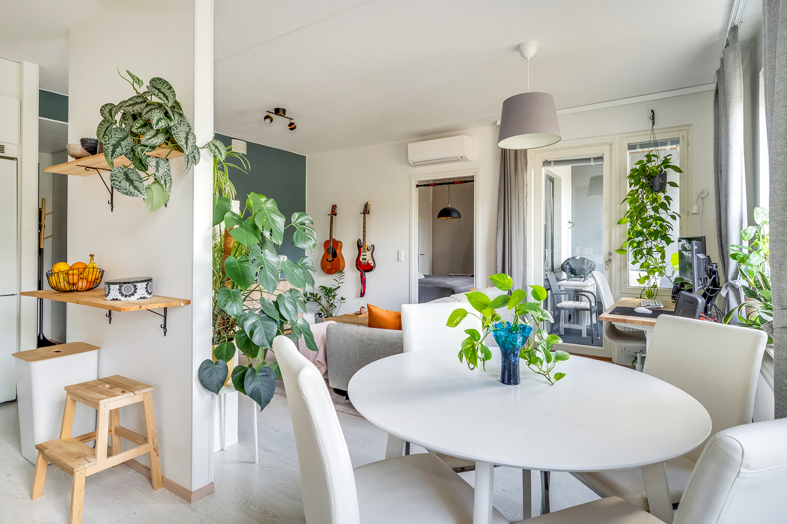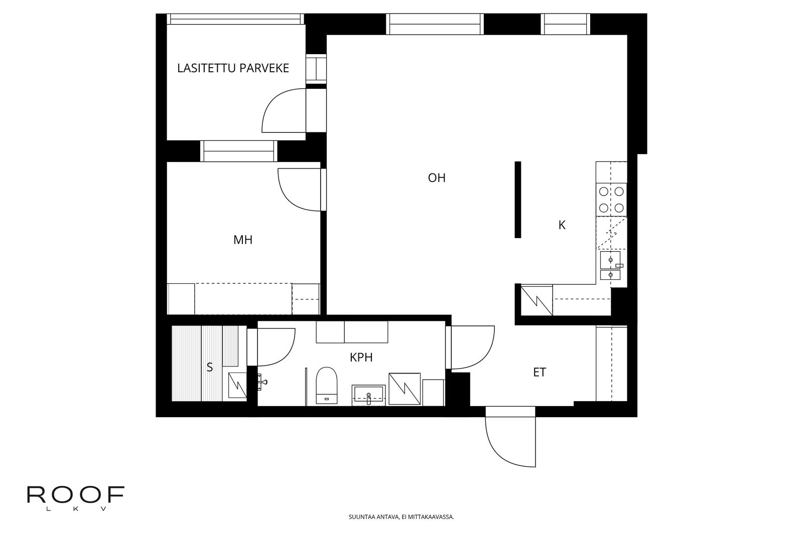 Nyt vapautumassa valoisa kolmannen kerroksen kaksio, jonka pohjaratkaisu vastaa tämän päivän toiveita. Keittiössä on mukavasti kaappi- sekä laskutilaa ja sen yhteyteen mahtuu hyvin 4- hengen ruokailuryhmä. Olohuone on avara ja se antaa mahdollisuuden moneen sisustusratkaisuun. Olohuoneesta on käynti suojaisalle lasitetulle parvekkeelle, jossa kelpaa nauttia pimenevistä illoista pitkälle syksyyn. Kylpyhuoneessa on tilaa kodinhoidolle ja mikä parasta, sieltä löytyy myös oma sauna. Kokonaisuuden kruunaa ilmalämpöpumppu.