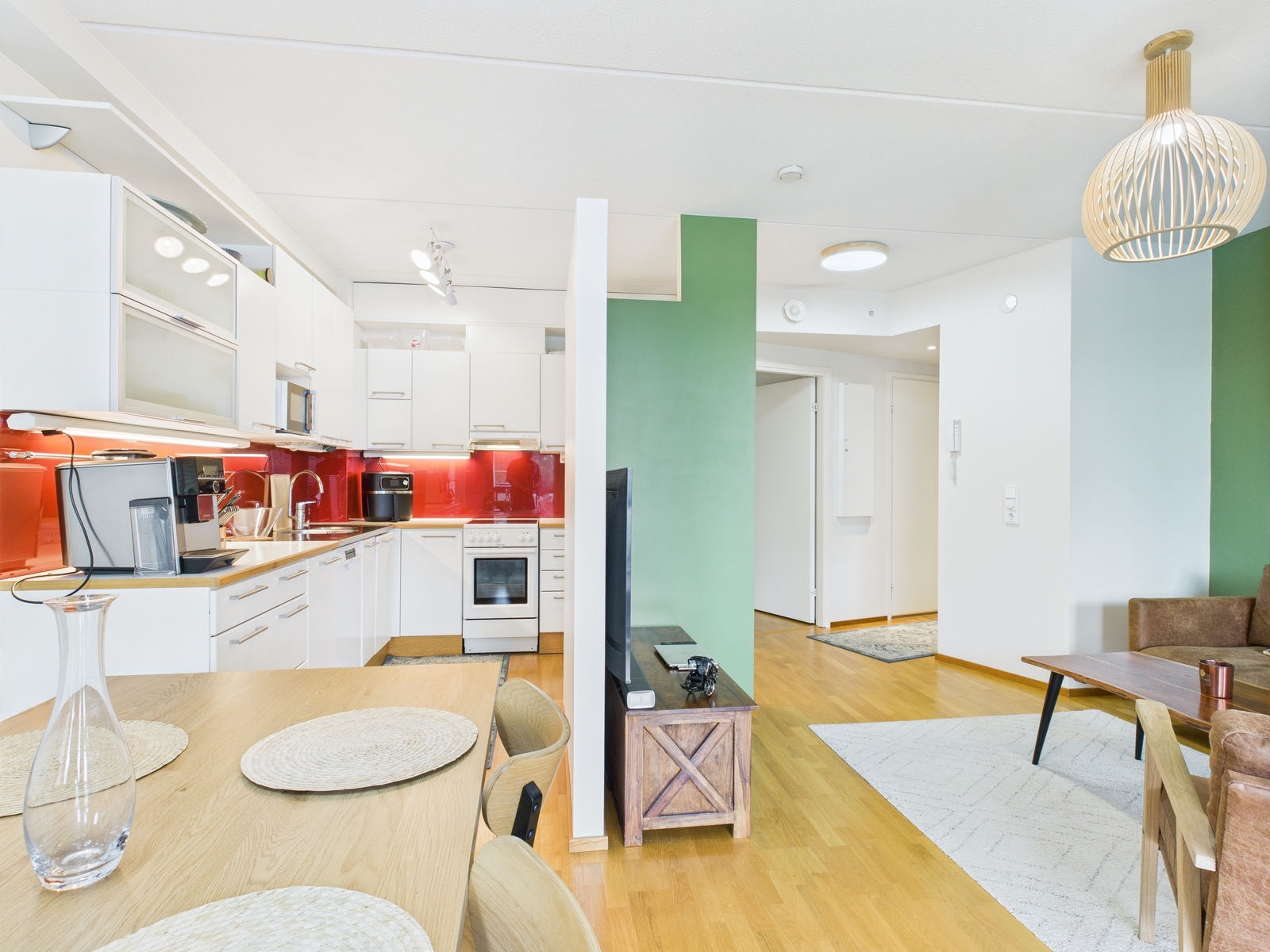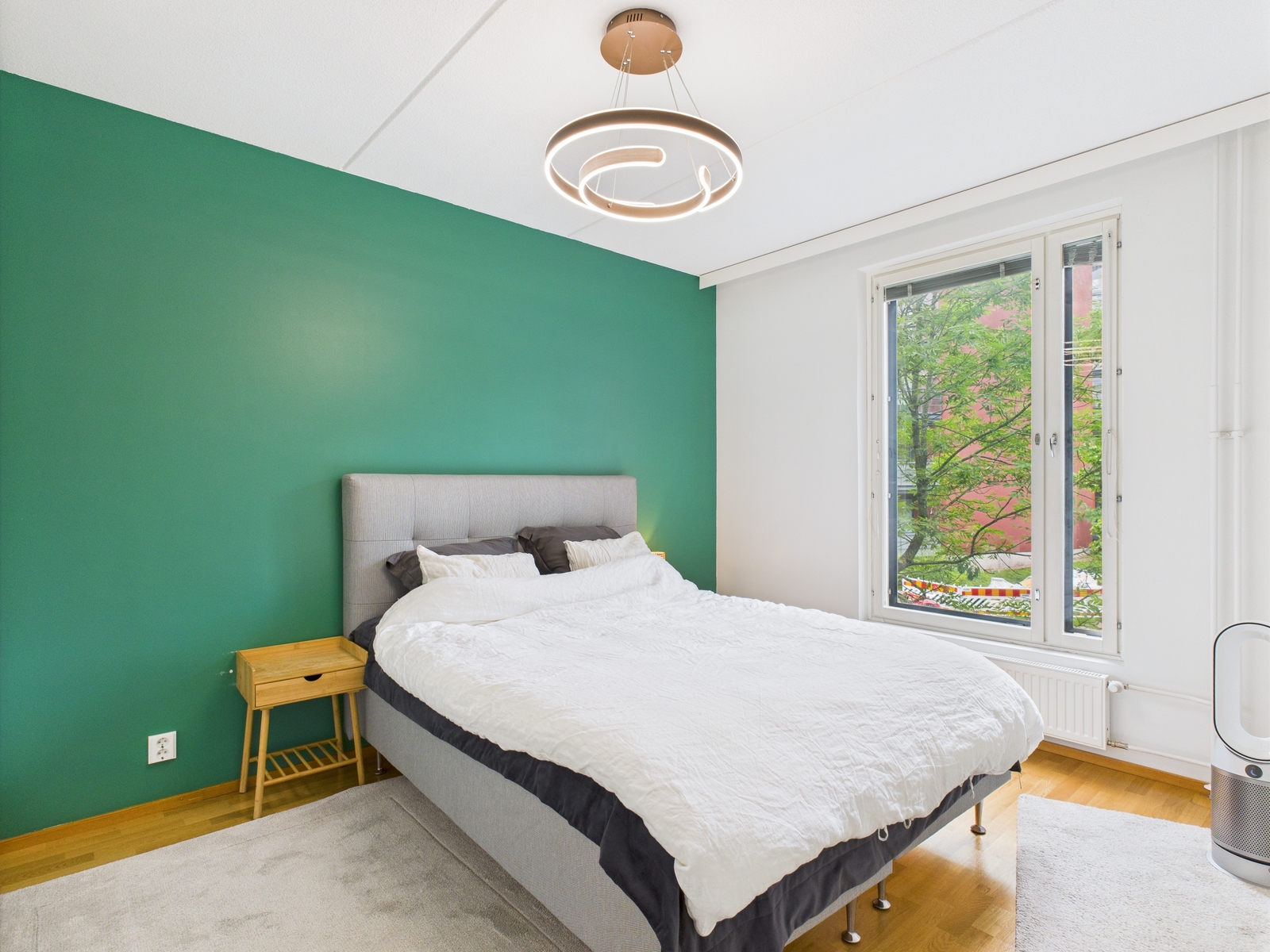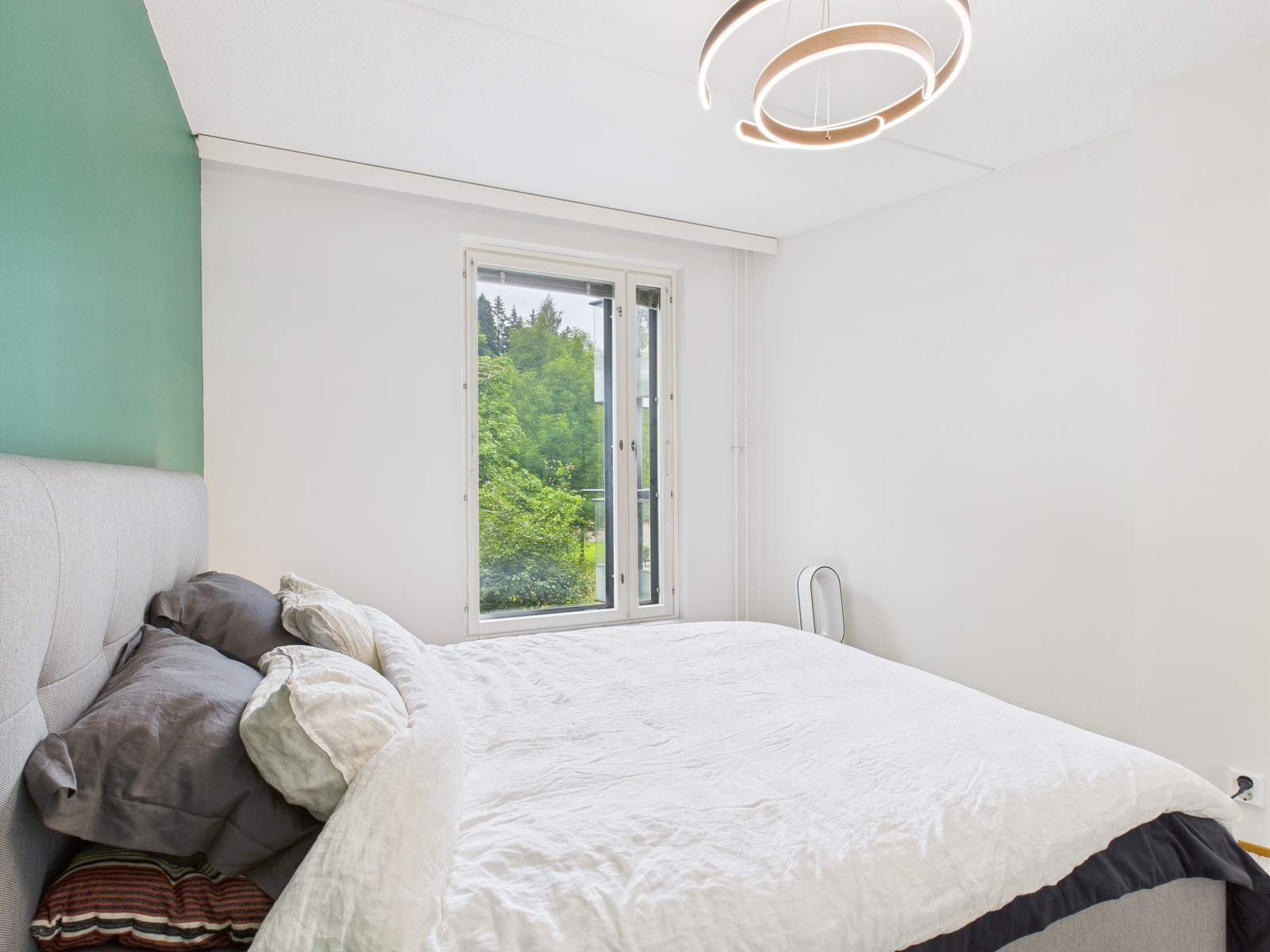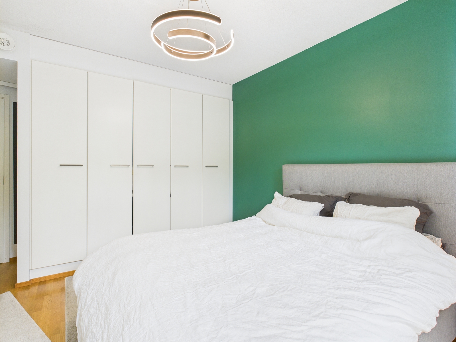 Sijainti on erinomainen: rauhallinen ympäristö, mutta kaikki palvelut ovat lähellä. Erinomaiset liikenneyhteydet niin julkisilla kuin omallakin autolla metroasema ja bussiyhteydet löytyvät läheltä, ja autopaikka on saatavilla.