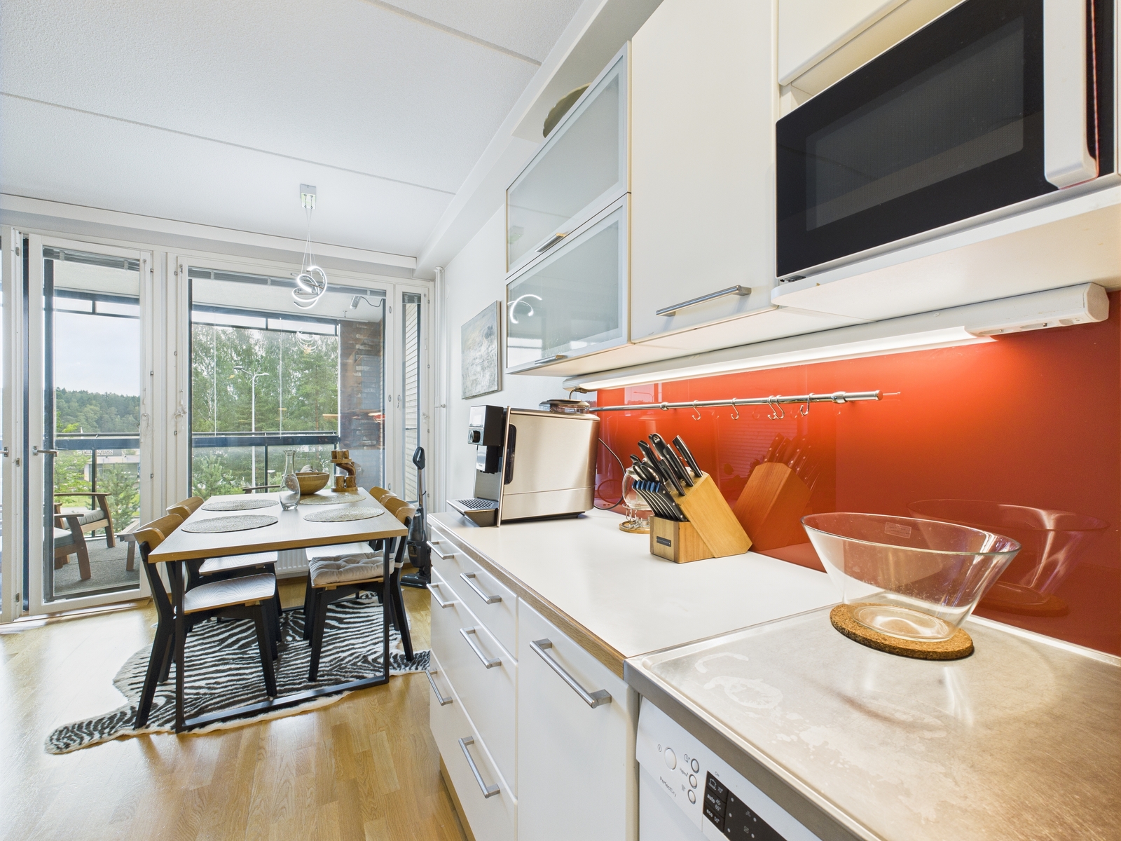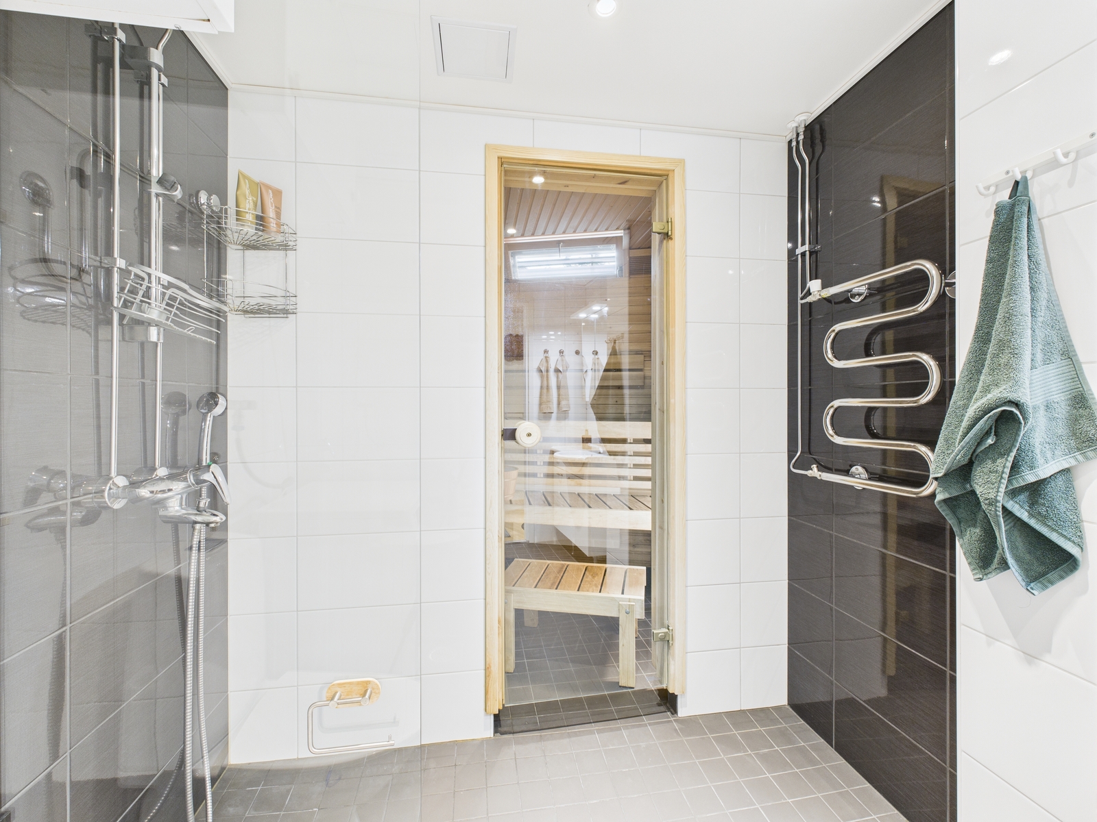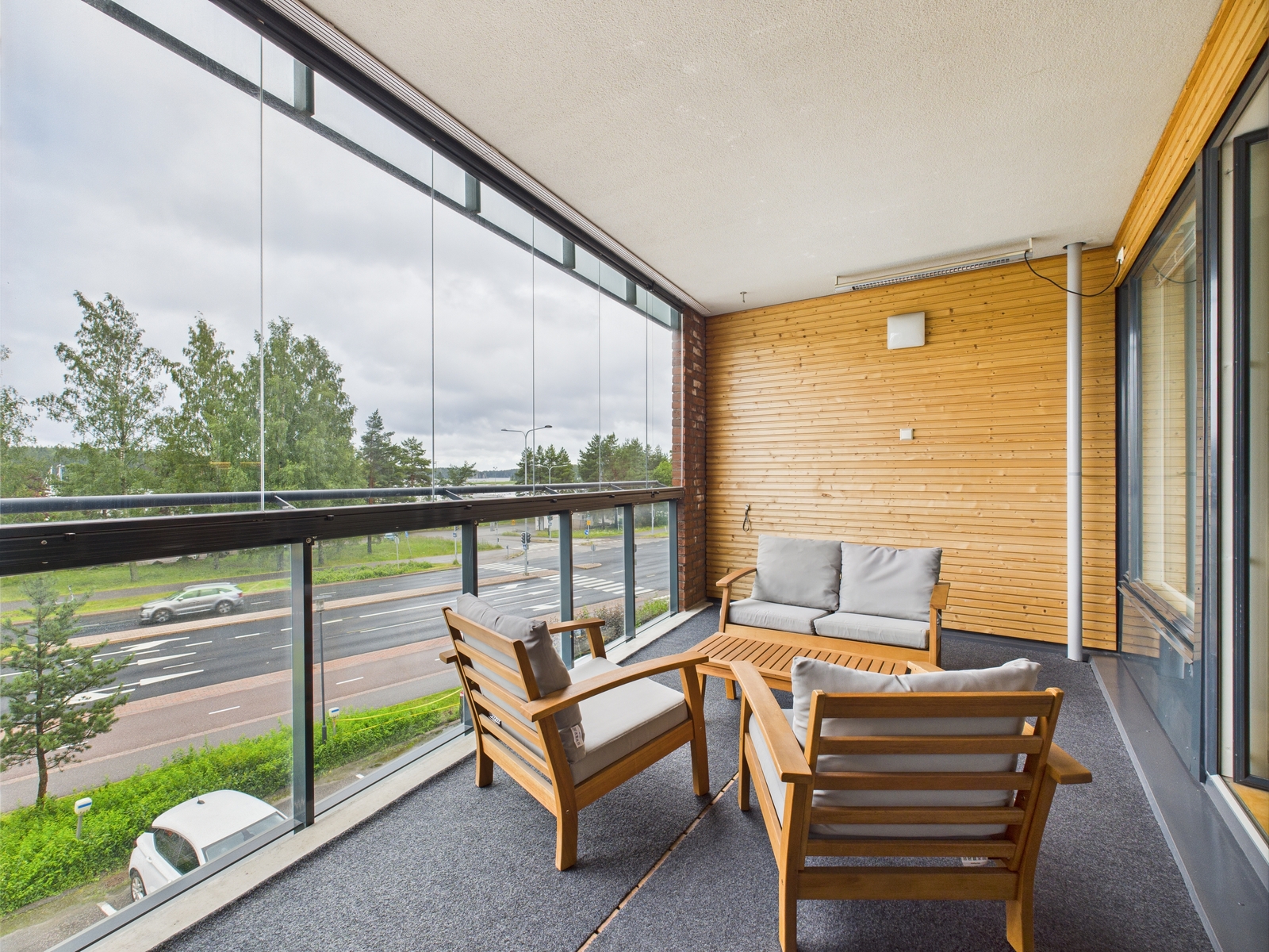 Asunnon tilava ja etelään avautuva lasitettu terassiparveke kutsuu nauttimaan merimaisemista aamusta iltaan. Olohuoneen, ruokailutilan ja keittiön yhdistelmä on avara ja valoisa, ja oma sauna tuo arkeen ripauksen luksusta. Asunto sijaitsee omalla tontilla ja kuuluu hyvin hoidetulle yhtiölle. Taloyhtiössä on hissi ja sopii myös liikuntarajoitteiselle.