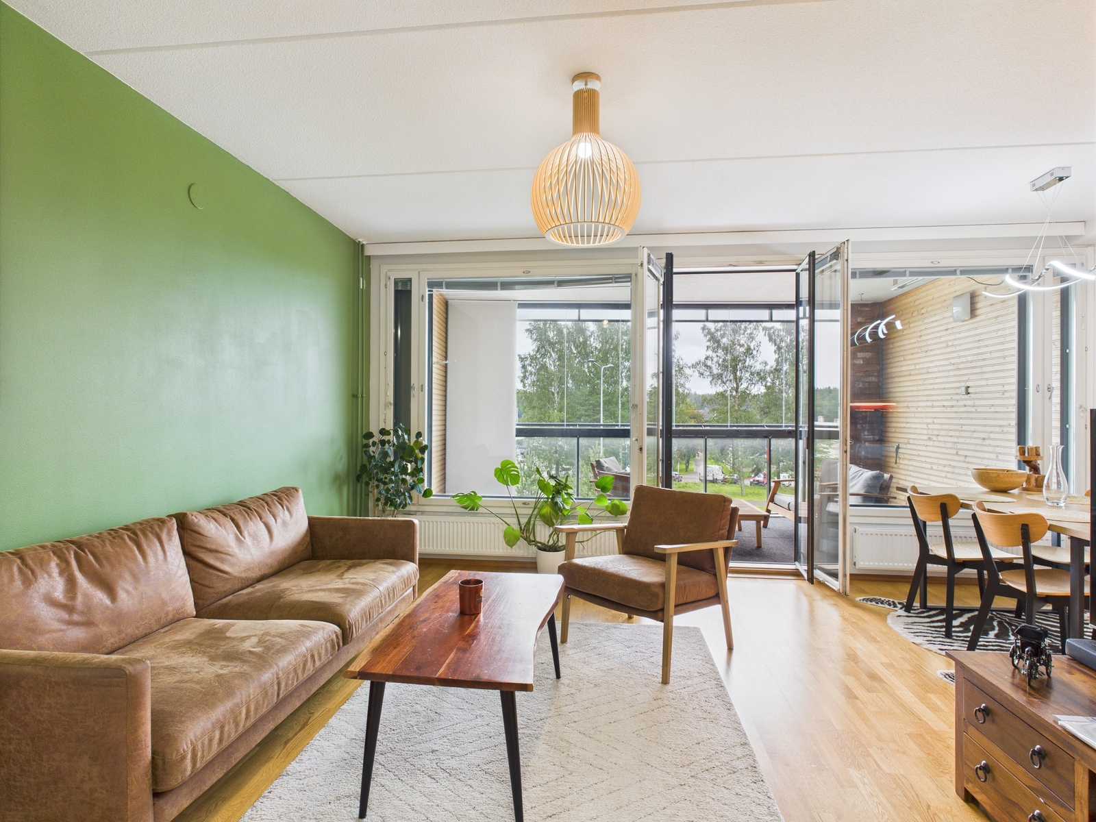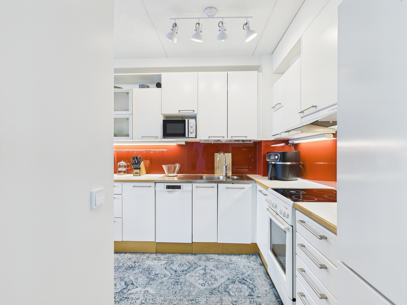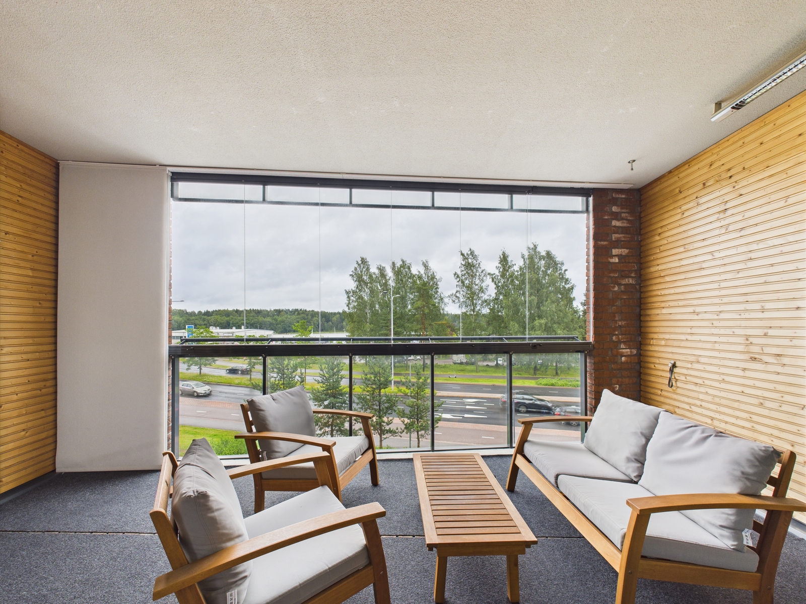 Asunnon tilava ja etelään avautuva lasitettu terassiparveke kutsuu nauttimaan merimaisemista aamusta iltaan. Olohuoneen, ruokailutilan ja keittiön yhdistelmä on avara ja valoisa, ja oma sauna tuo arkeen ripauksen luksusta. Asunto sijaitsee omalla tontilla ja kuuluu hyvin hoidetulle yhtiölle. Taloyhtiössä on hissi ja sopii myös liikuntarajoitteiselle.