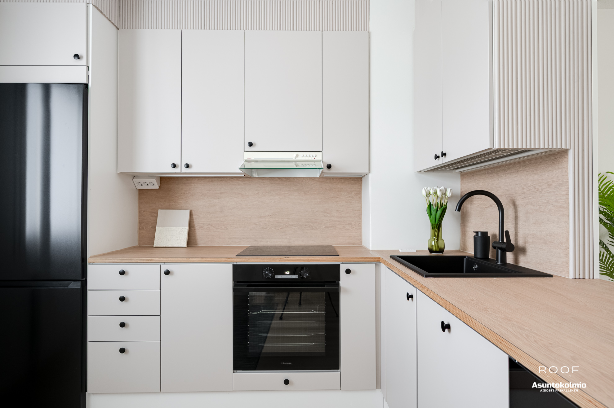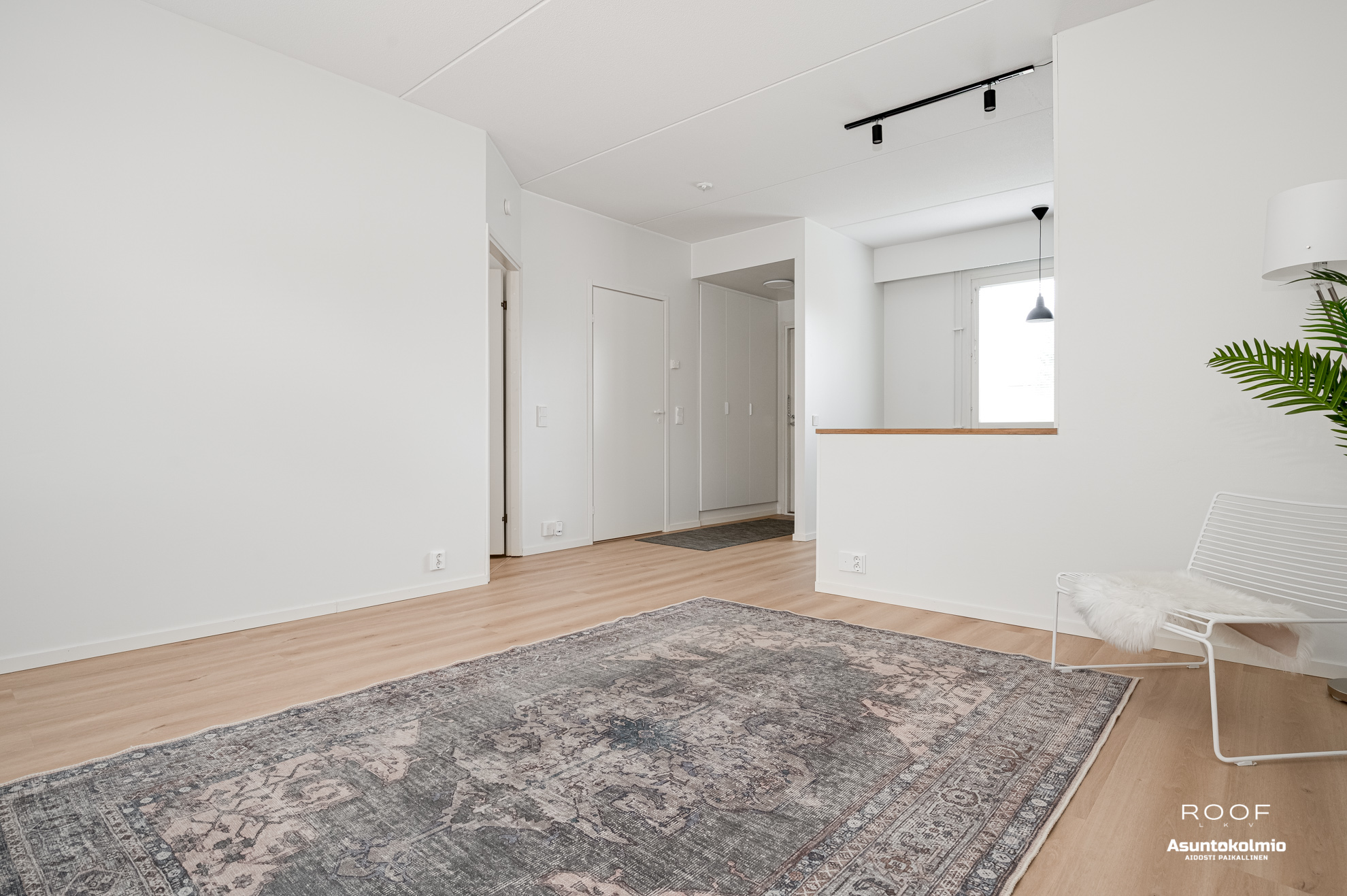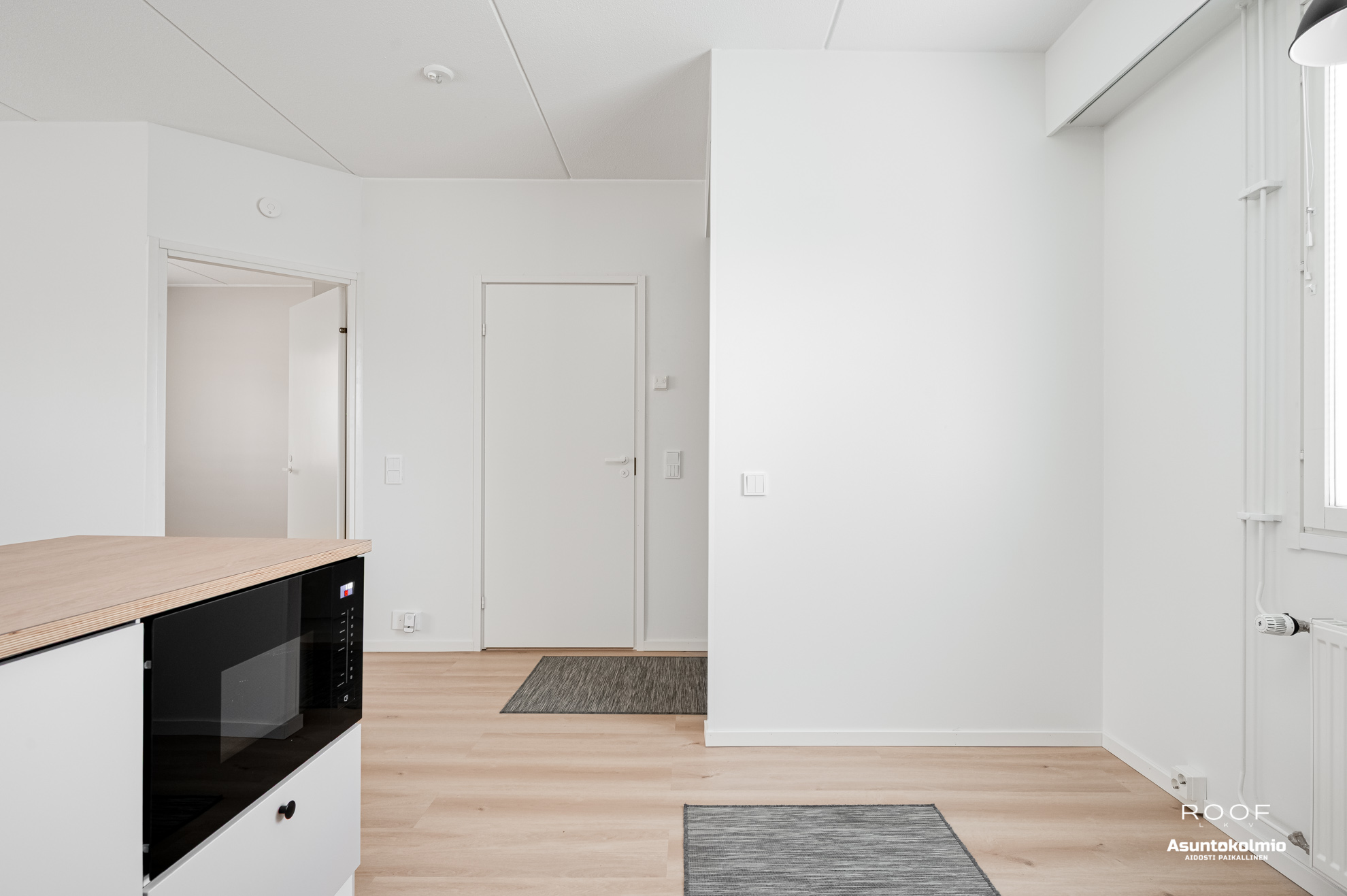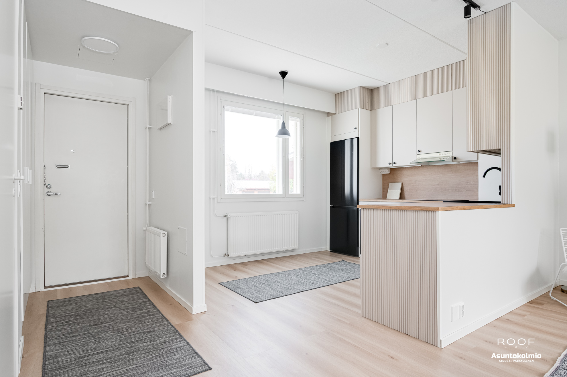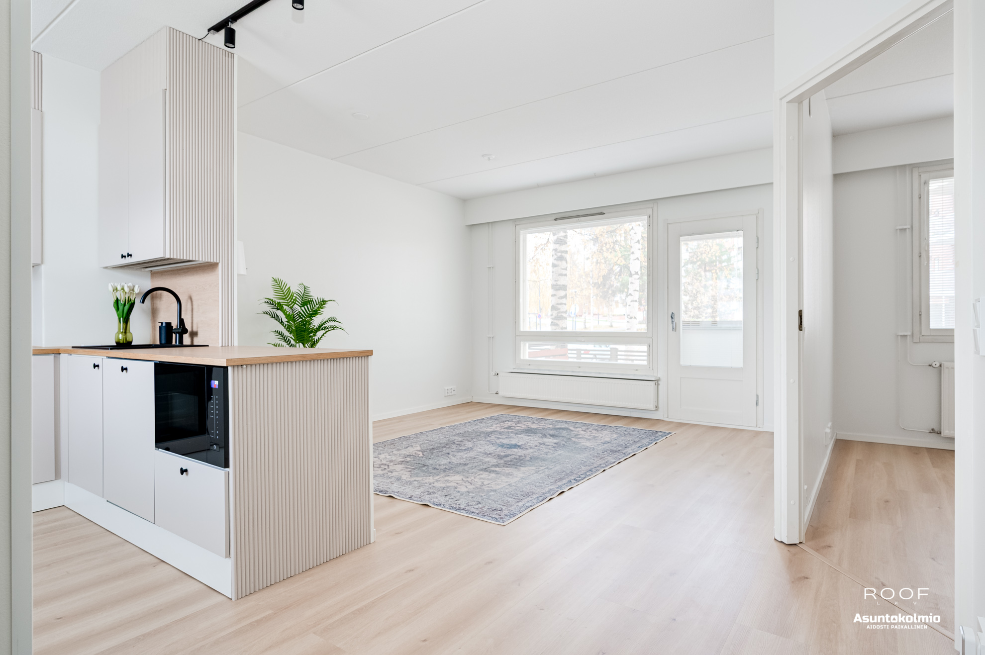 Tähän huoneistoon on helppo ihastua, sillä asunto on täysin muuttovalmis ja vapautuu nopeasti seuraavalle. Laadukkain materiaalein toteutettu keittiöremontti on todella onnistunut; Hannun kalusteverstaan komeat kaapistojen ovet sekä integroidut kalusteet, kuten mikro, tuovat keittiöön ripauksen luksusta. Tärkeimpänä remonttina on juuri valmistunut pesuhuoneen saneeraus, jossa tila on saanut ensinnäkin nykyaikaisen ilmeen, unohtamatta teknistä toimivuutta. Pesutornille on luotu paikka ja tila on muutenkin maksimaalisesti hyödynnetty. Oma ikkunallinen sauna on myös siistikuntoinen. Lattia- ja seinäpintojen viimeistelyt ovat taidolla toteutetut, ja kuinka onkaan mukava seuraavan muuttaa asumaan, kun käytön jälkiä ei ole!