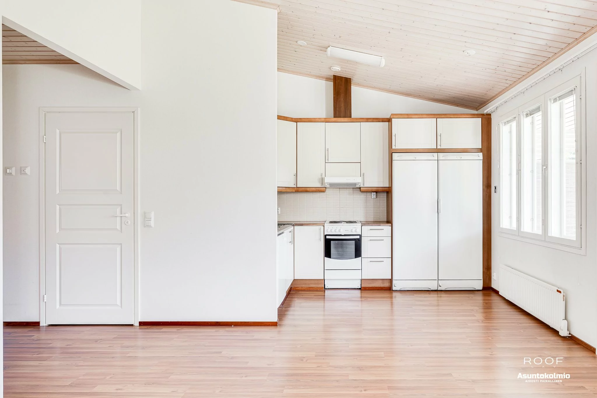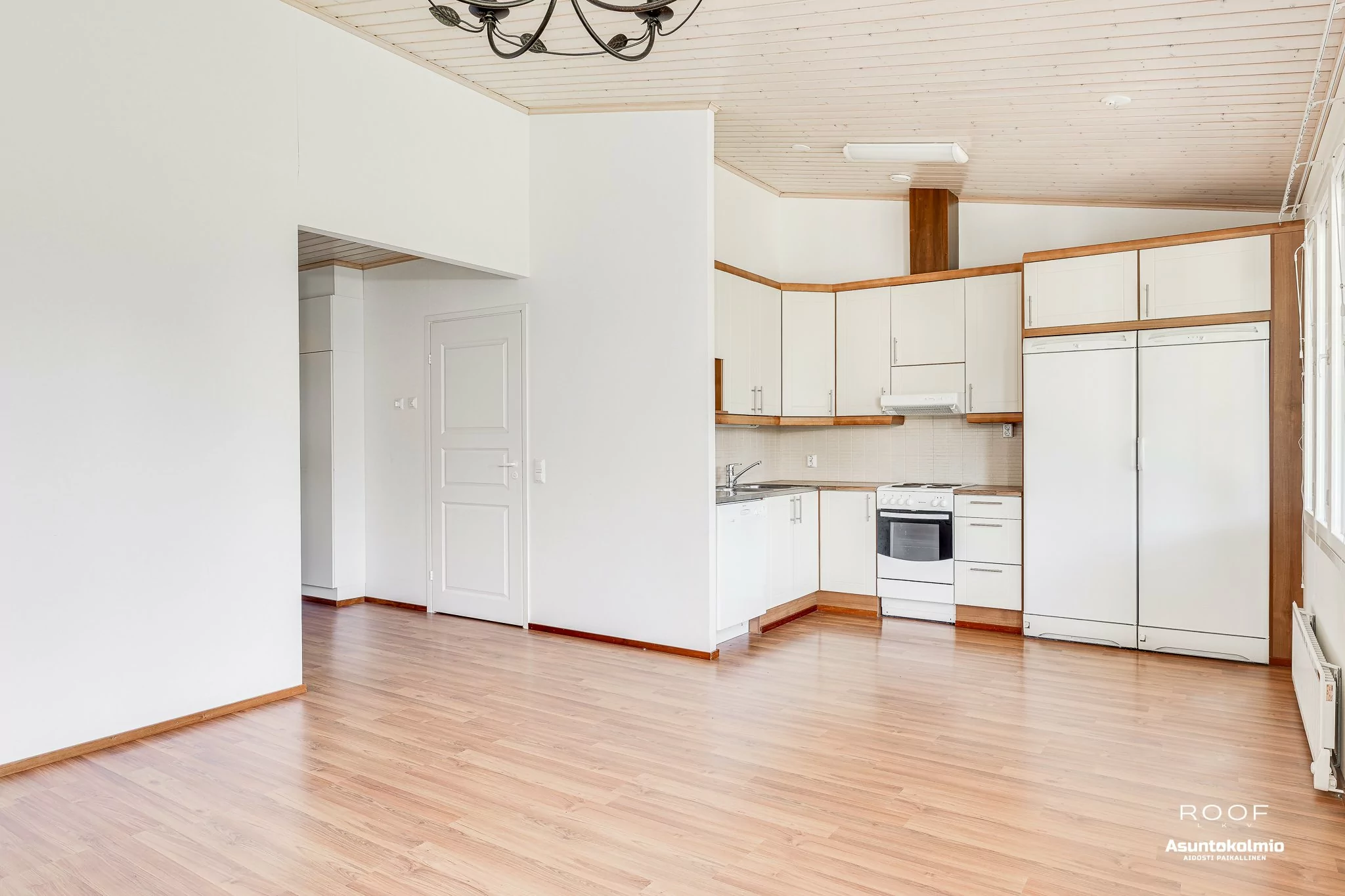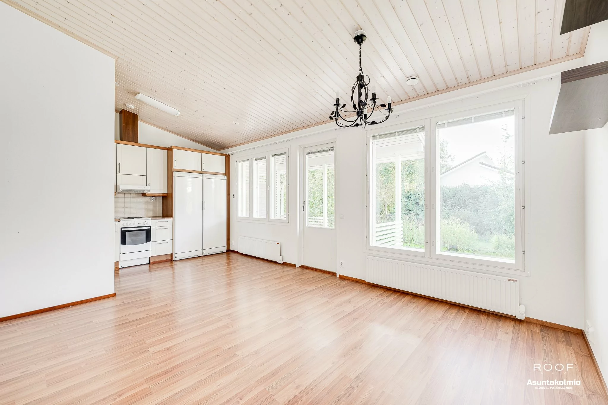 Kodin ilme on raikas ja valoisa sekä pohjaratkaisu on erittäin toimiva. Olohuoneessa ja keittiössä korotettu sisäkatto, joka tuo lisää avaruutta tähän tilaan. Näkymä ikkunoista on suojaisalle takapihalle. Olohuoneesta on kulku katetulle terassille ja omalle piha-alueelle. Olohuoneessa on myös takkavaraus. Pesuhuoneen yhteydessä...