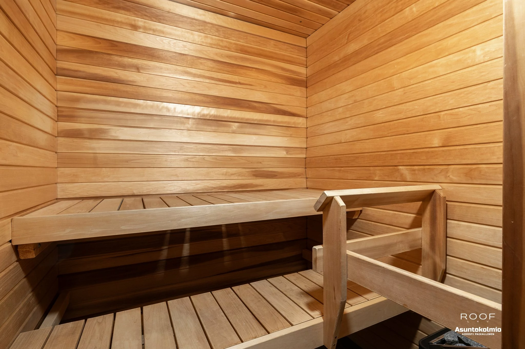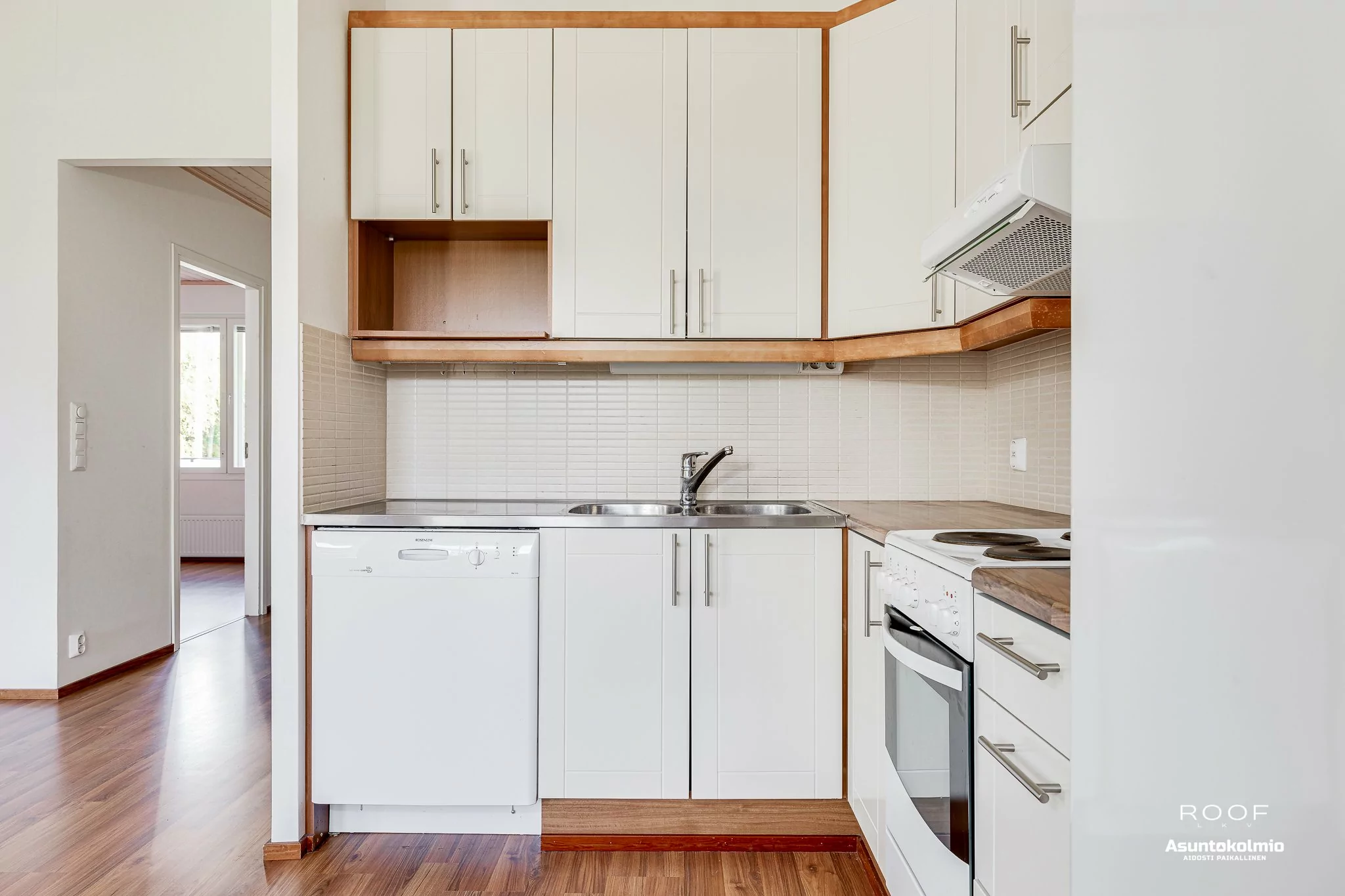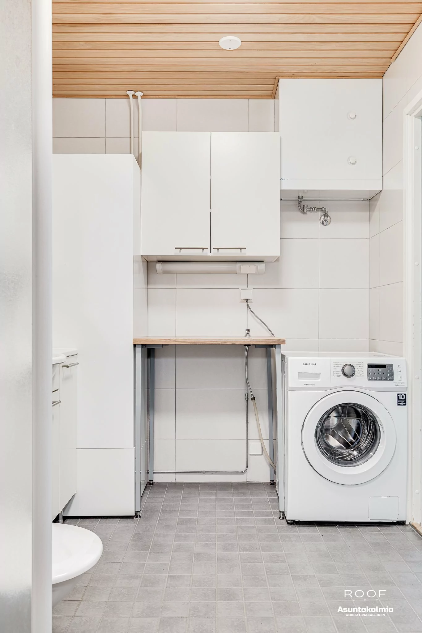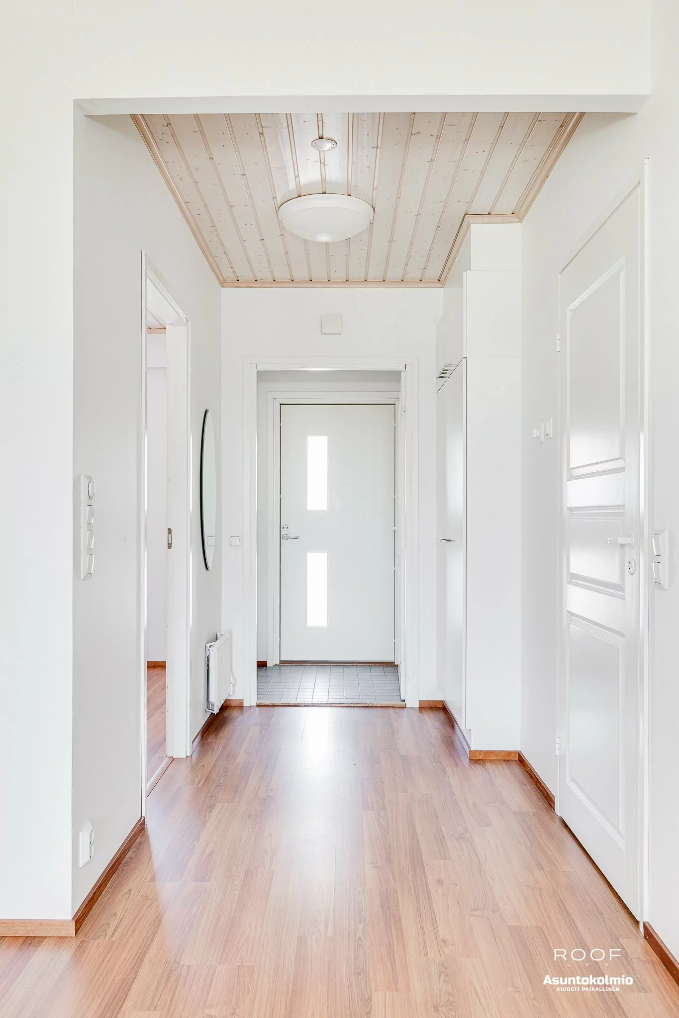 Kodin ilme on raikas ja valoisa sekä pohjaratkaisu on erittäin toimiva. Olohuoneessa ja keittiössä korotettu sisäkatto, joka tuo lisää avaruutta tähän tilaan. Näkymä ikkunoista on suojaisalle takapihalle. Olohuoneesta on kulku katetulle terassille ja omalle piha-alueelle. Olohuoneessa on myös takkavaraus. Pesuhuoneen yhteydessä...