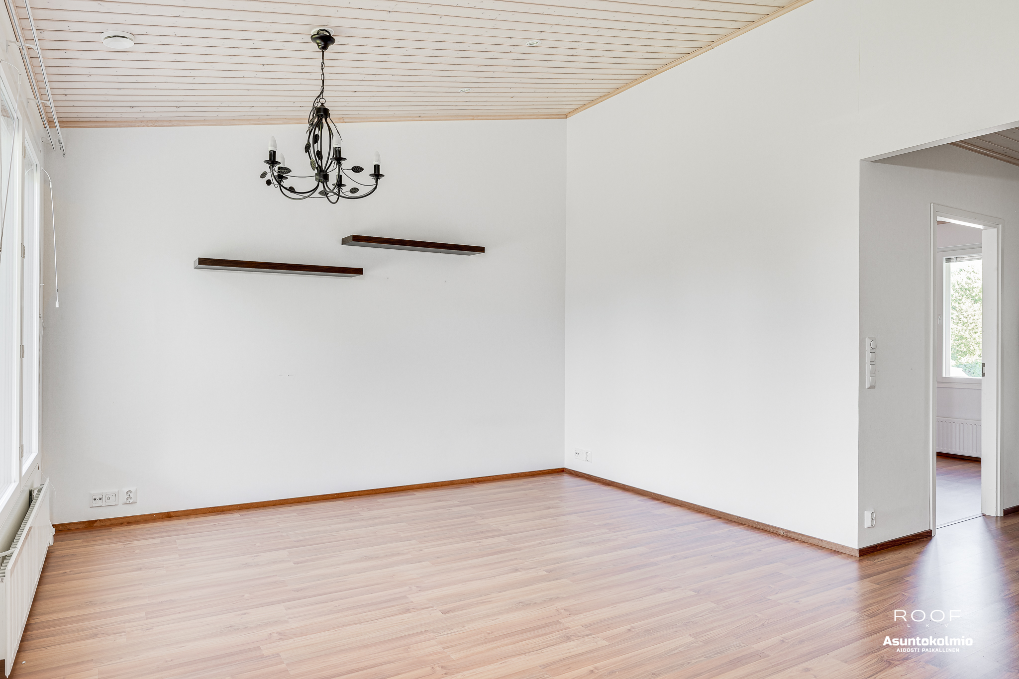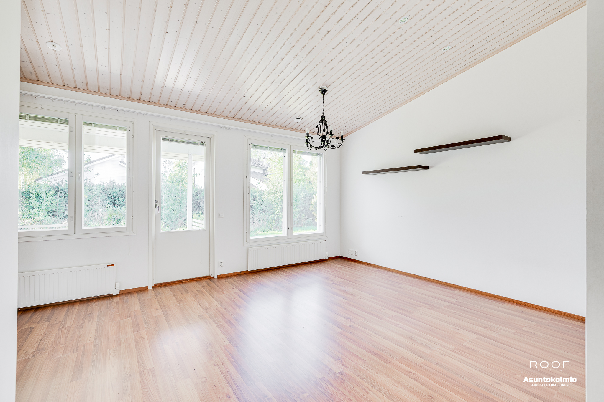 Kodin ilme on raikas ja valoisa sekä pohjaratkaisu on erittäin toimiva. Olohuoneessa ja keittiössä korotettu sisäkatto, joka tuo lisää avaruutta tähän tilaan. Näkymä ikkunoista on suojaisalle takapihalle. Olohuoneesta on kulku katetulle terassille ja omalle piha-alueelle. Olohuoneessa on myös takkavaraus. Pesuhuoneen yhteydessä...