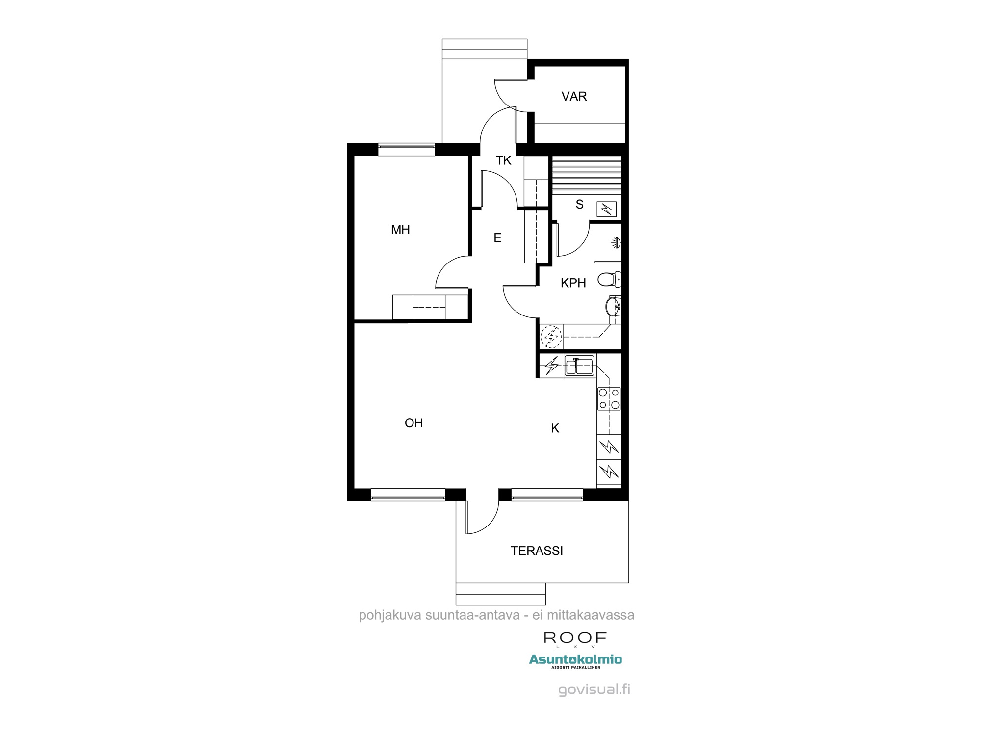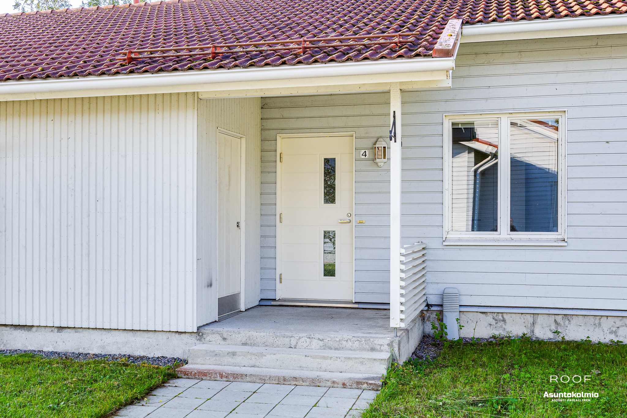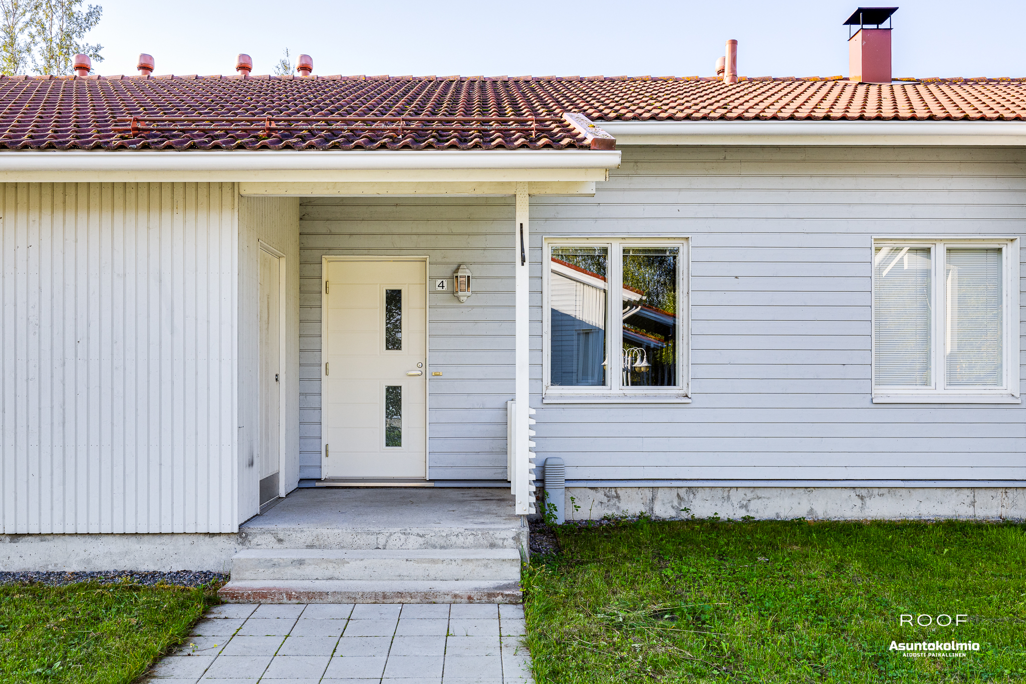 Kodin ilme on raikas ja valoisa sekä pohjaratkaisu on erittäin toimiva. Olohuoneessa ja keittiössä korotettu sisäkatto, joka tuo lisää avaruutta tähän tilaan. Näkymä ikkunoista on suojaisalle takapihalle. Olohuoneesta on kulku katetulle terassille ja omalle piha-alueelle. Olohuoneessa on myös takkavaraus. Pesuhuoneen yhteydessä on tilaa pyykkihuollolle. Tässä asunnossa on siis kaikki, mitä tarvitset toimivaan arkeen!
