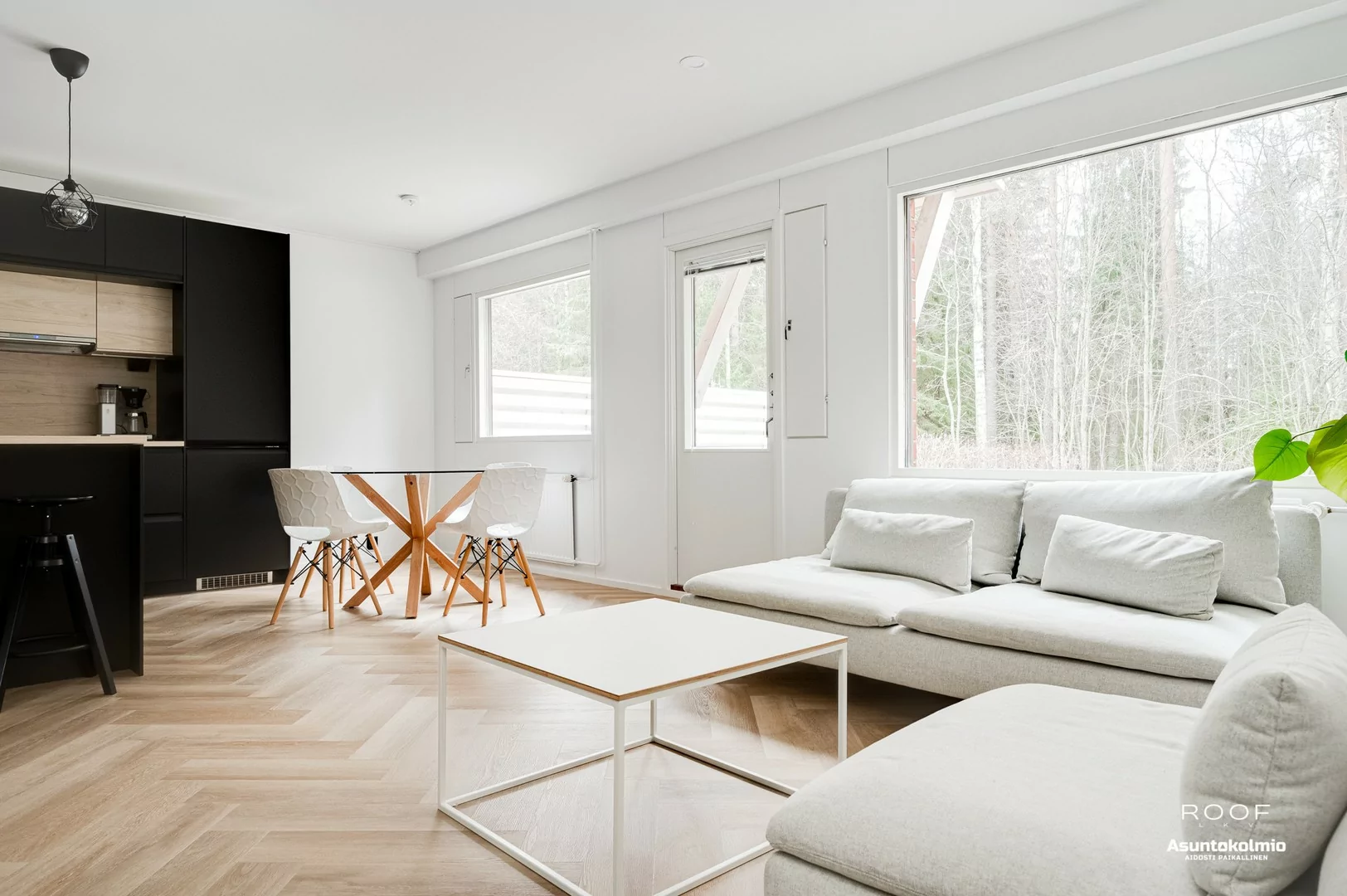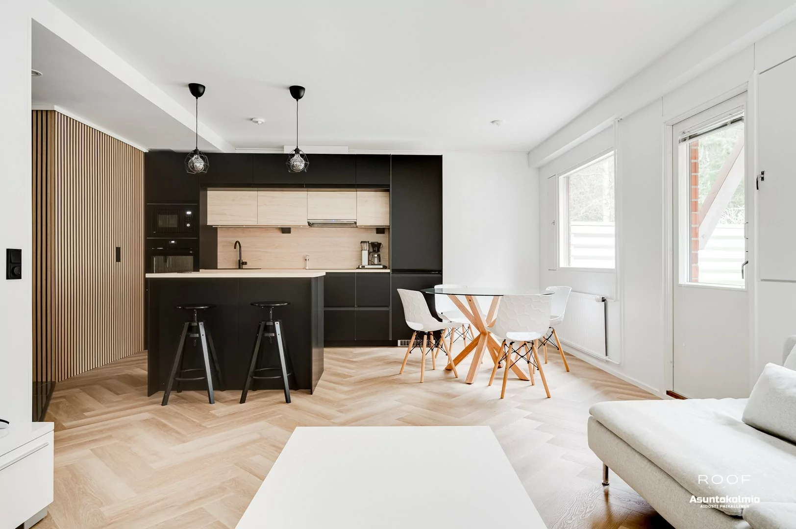 Tervetuloa Possakantielle, tähän paljon remontoituun 61,5m2 asuntoon. Upea keittiö kodinkoneineen, lattiat ja muut pinnat on uusittu 2024 ja kylpyhuone sekä sauna 2016. Upeat materiaalivalinnat, huolellinen työnjälki ja hieno kalanruoto kuvioinen vinyylilattia tekevät tästä asunnosta todella siistin. Olohuone ja keittiö ovat yhtä suurta tilaa ja makuuhuoneen yhteydessä on iso vaatehuone.