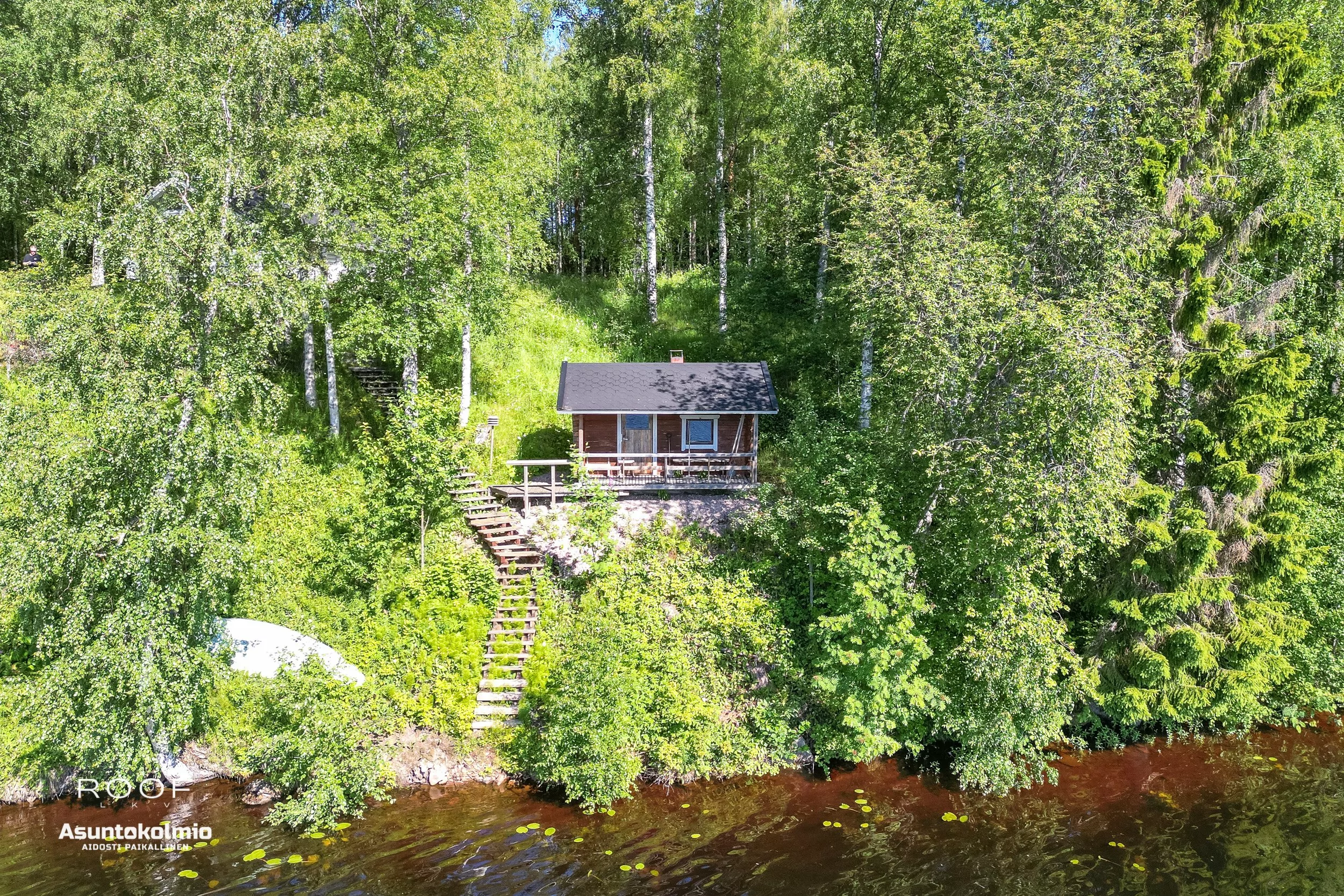 Harvoin tarjolla Oulunjoen rannasta viehättävä hirsimökki rakennuksineen!